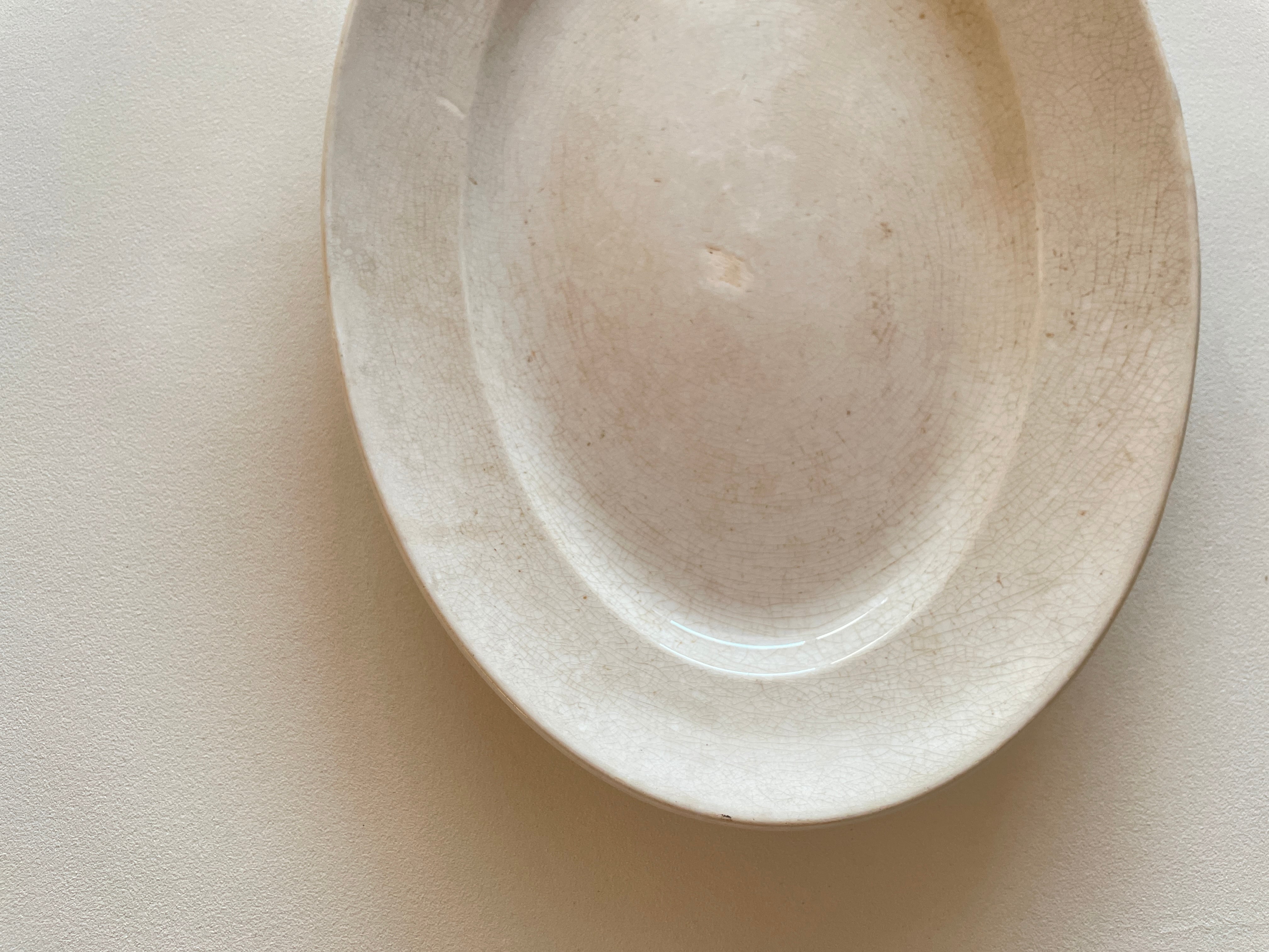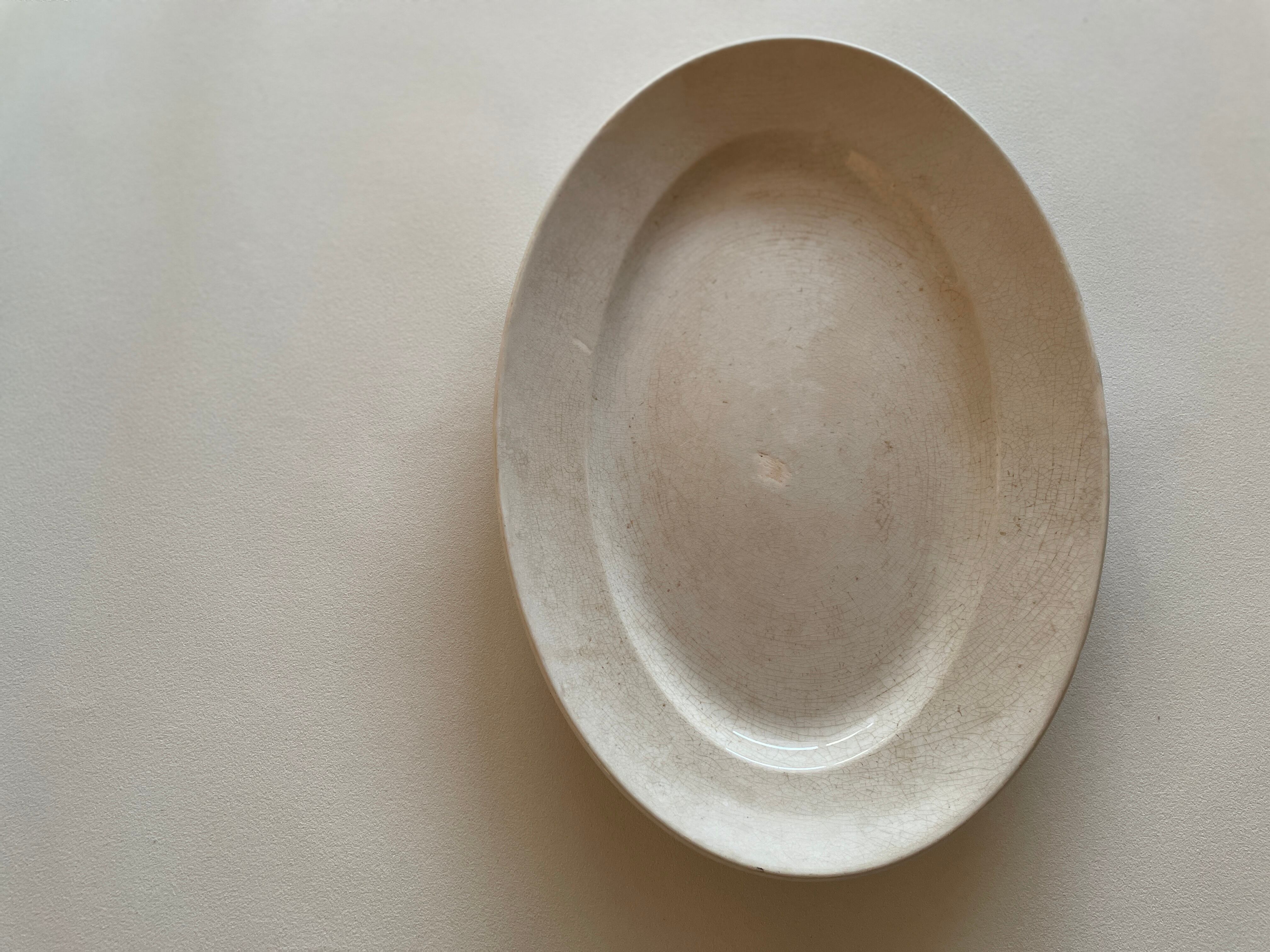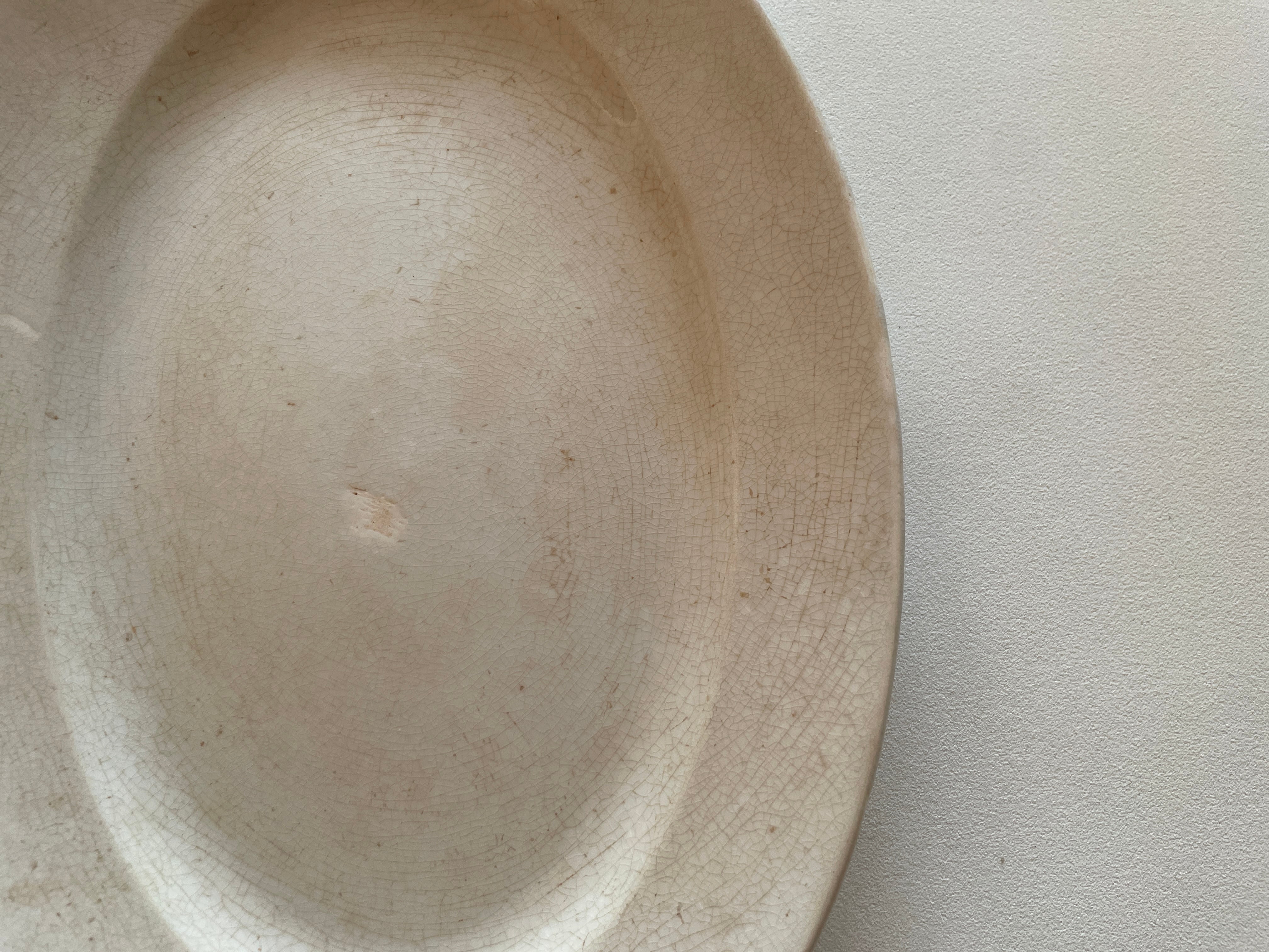 クレイユモントローの綺麗に枯れたオフホワイトのオーバルプレートです。