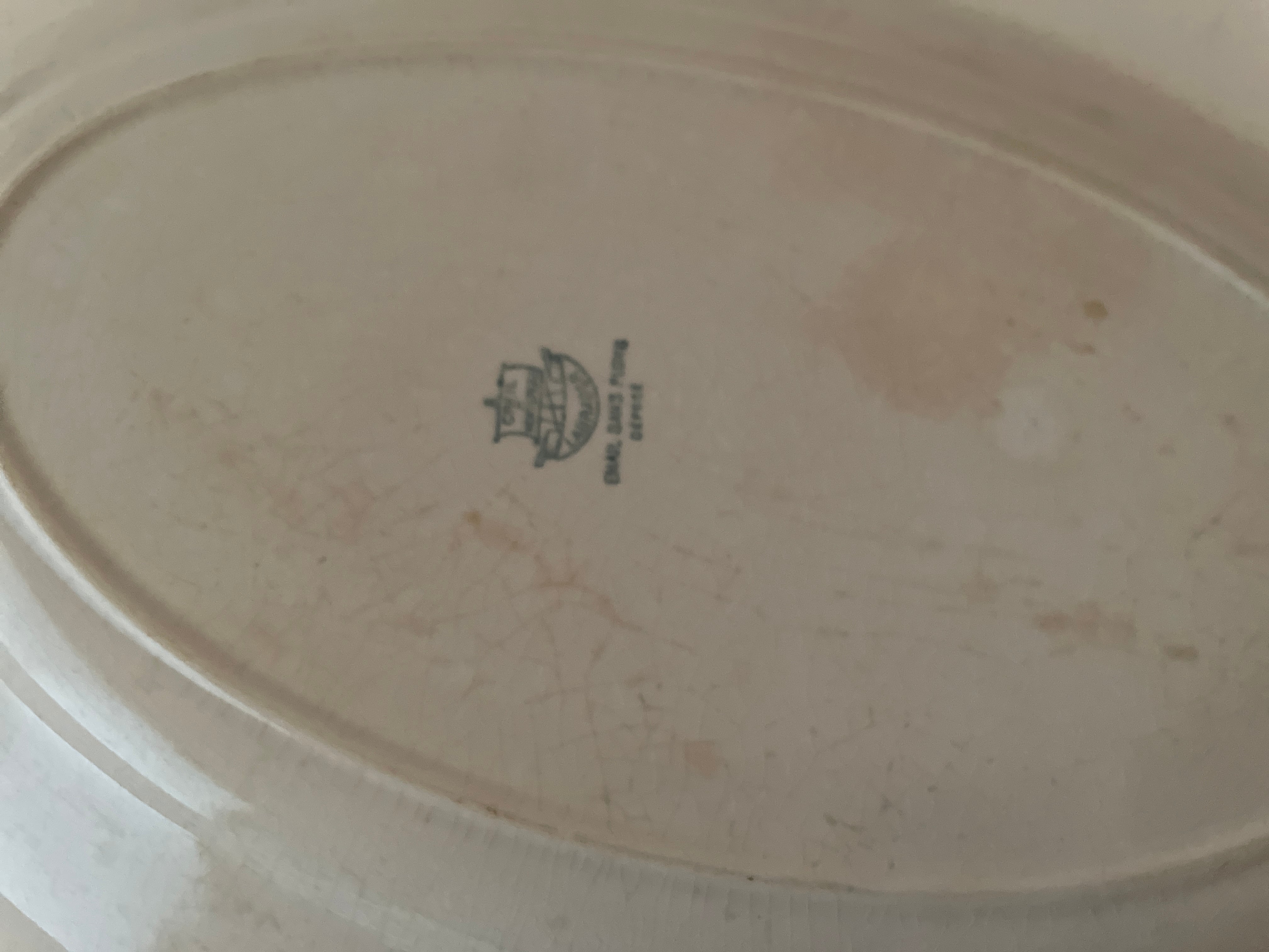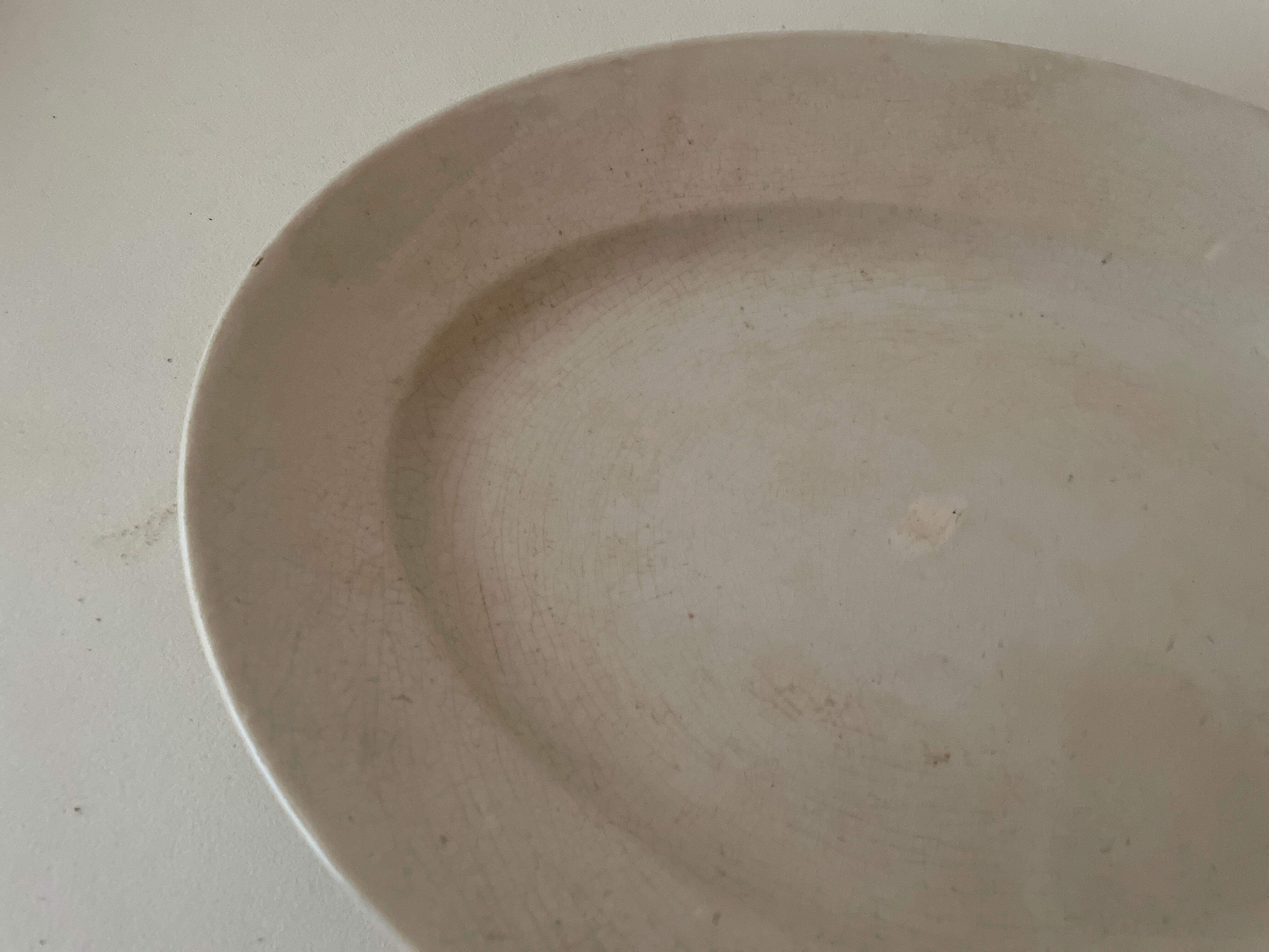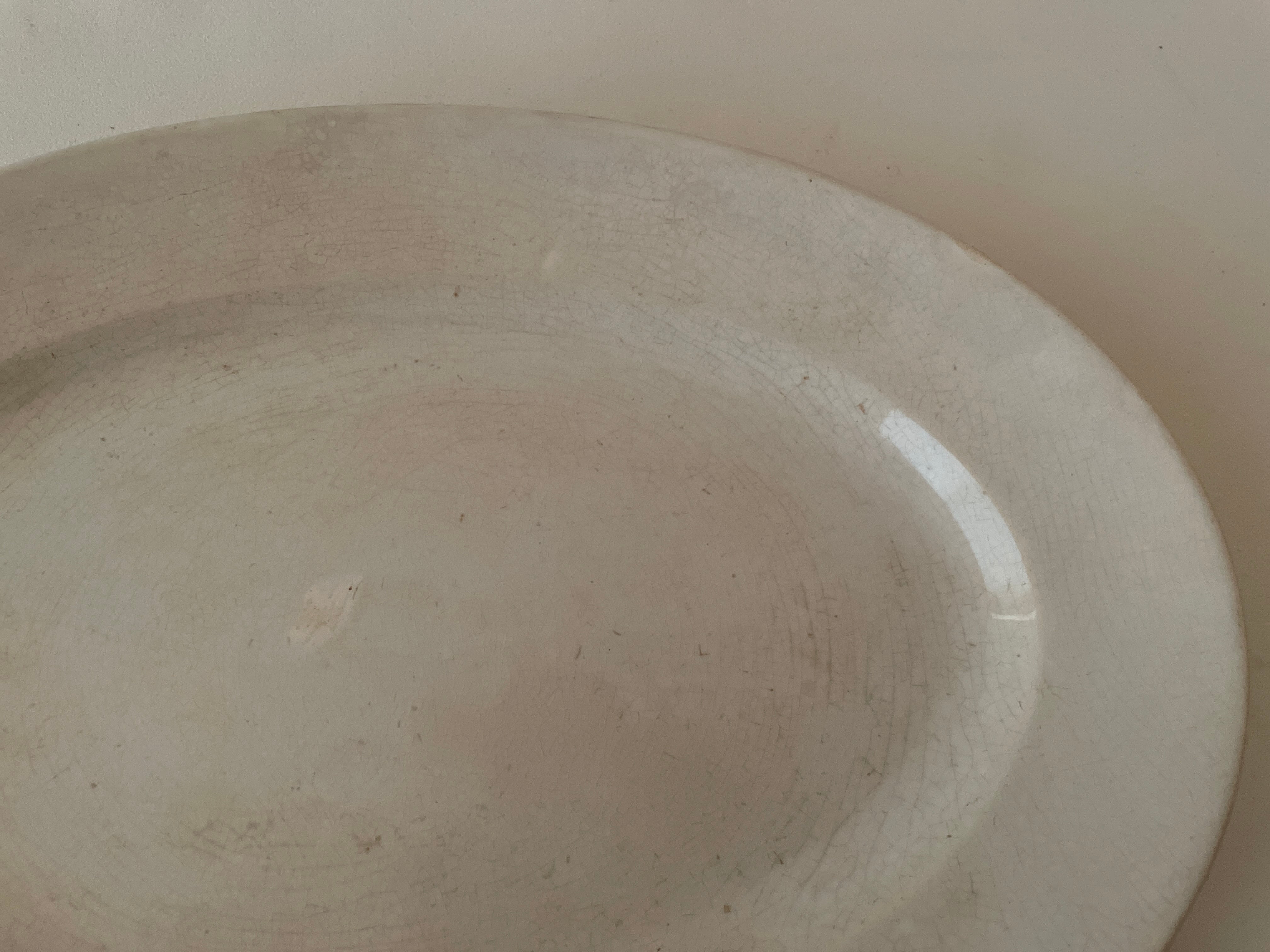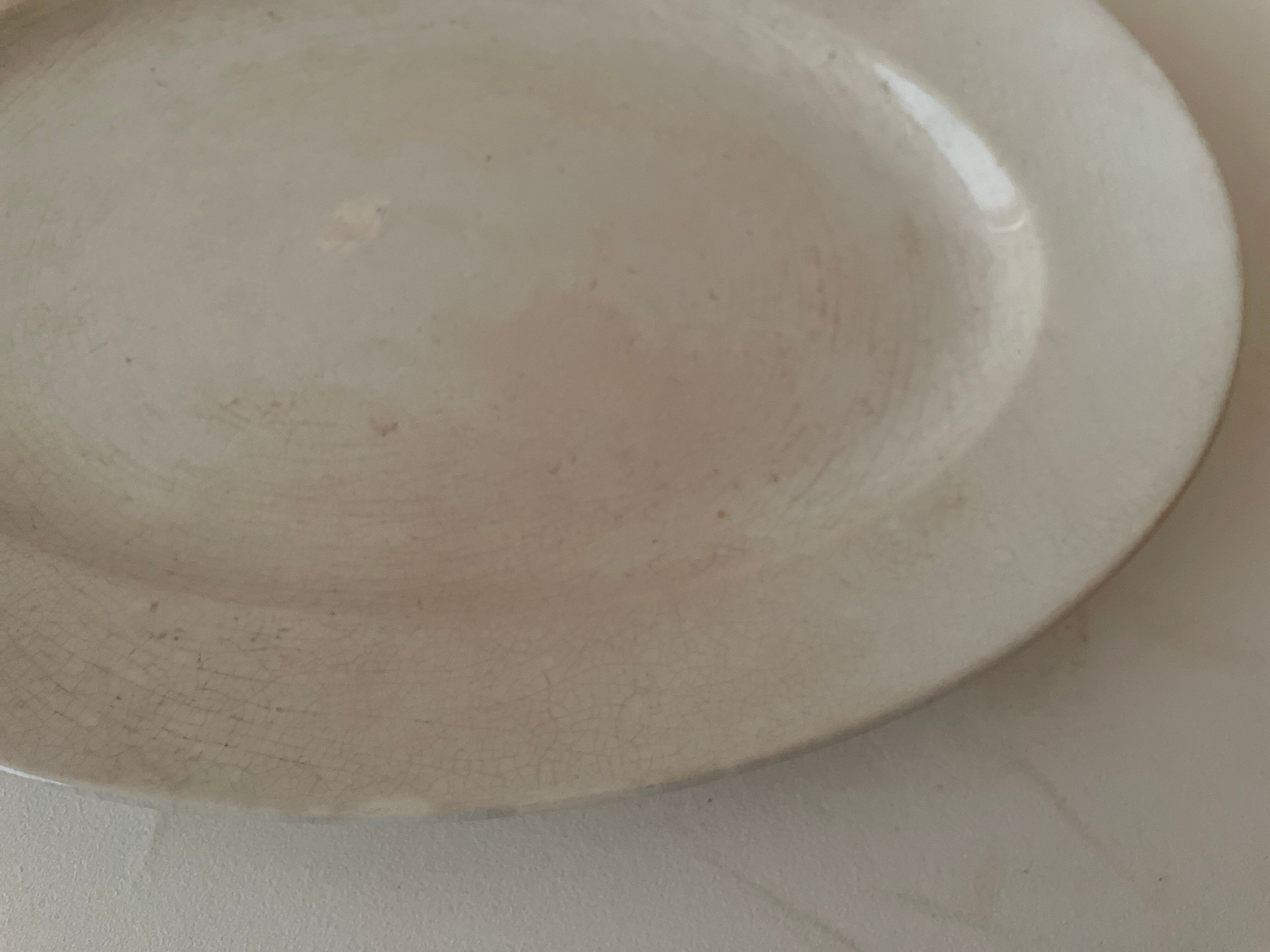クレイユモントローの綺麗に枯れたオフホワイトのオーバルプレートです。