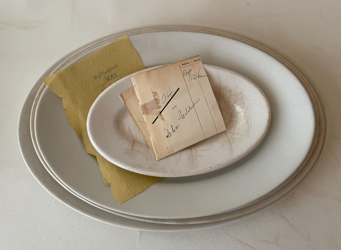 クレイユモントローのオフホワイトのミニオーバルプレート。