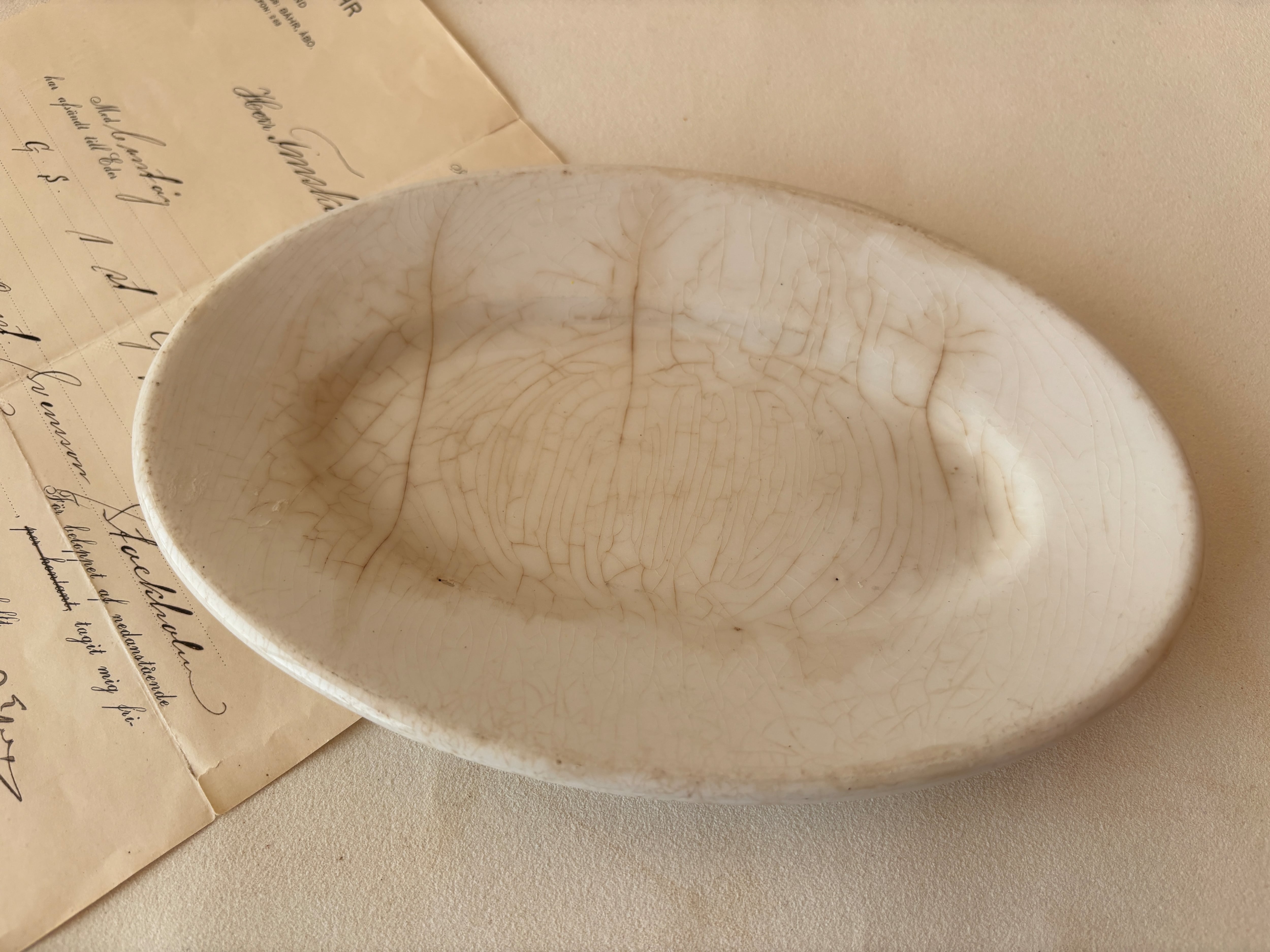 【1点のみ】Creil et montereau クレイユモントロー 貫入が色付いたミニオーバルプレート