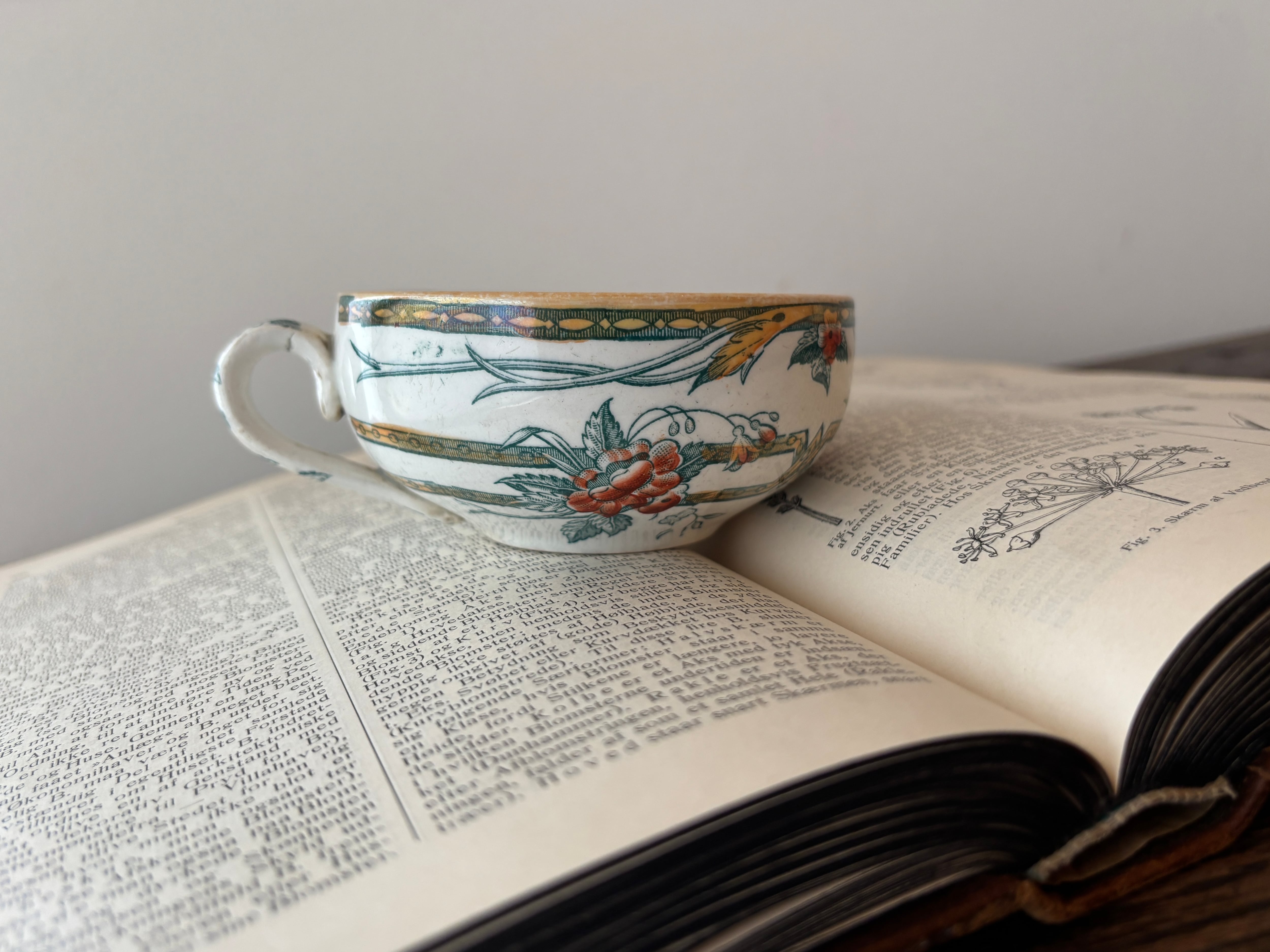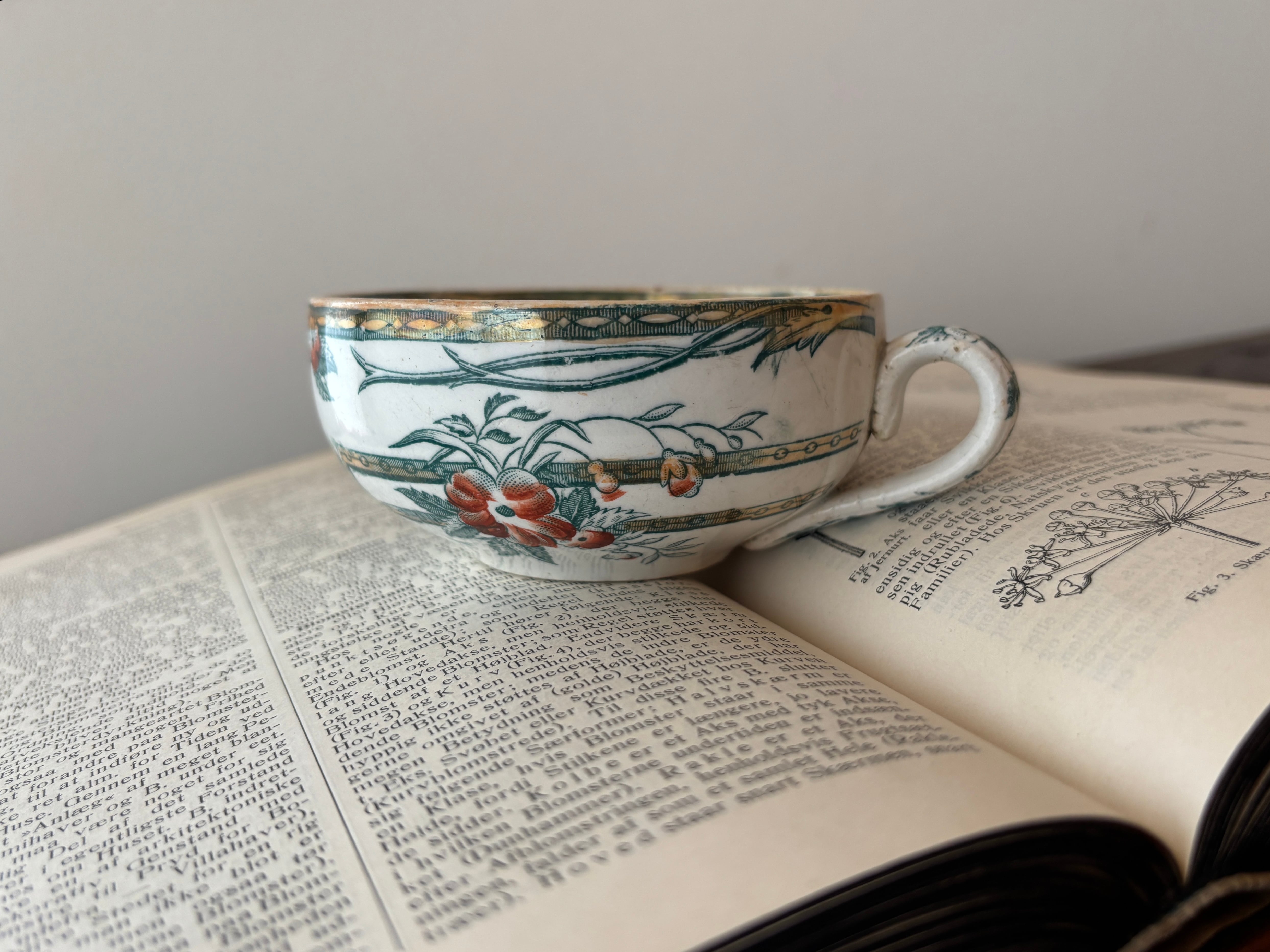 草花をモチーフにした優雅な絵柄と、繊細なゴールド装飾が美しく、