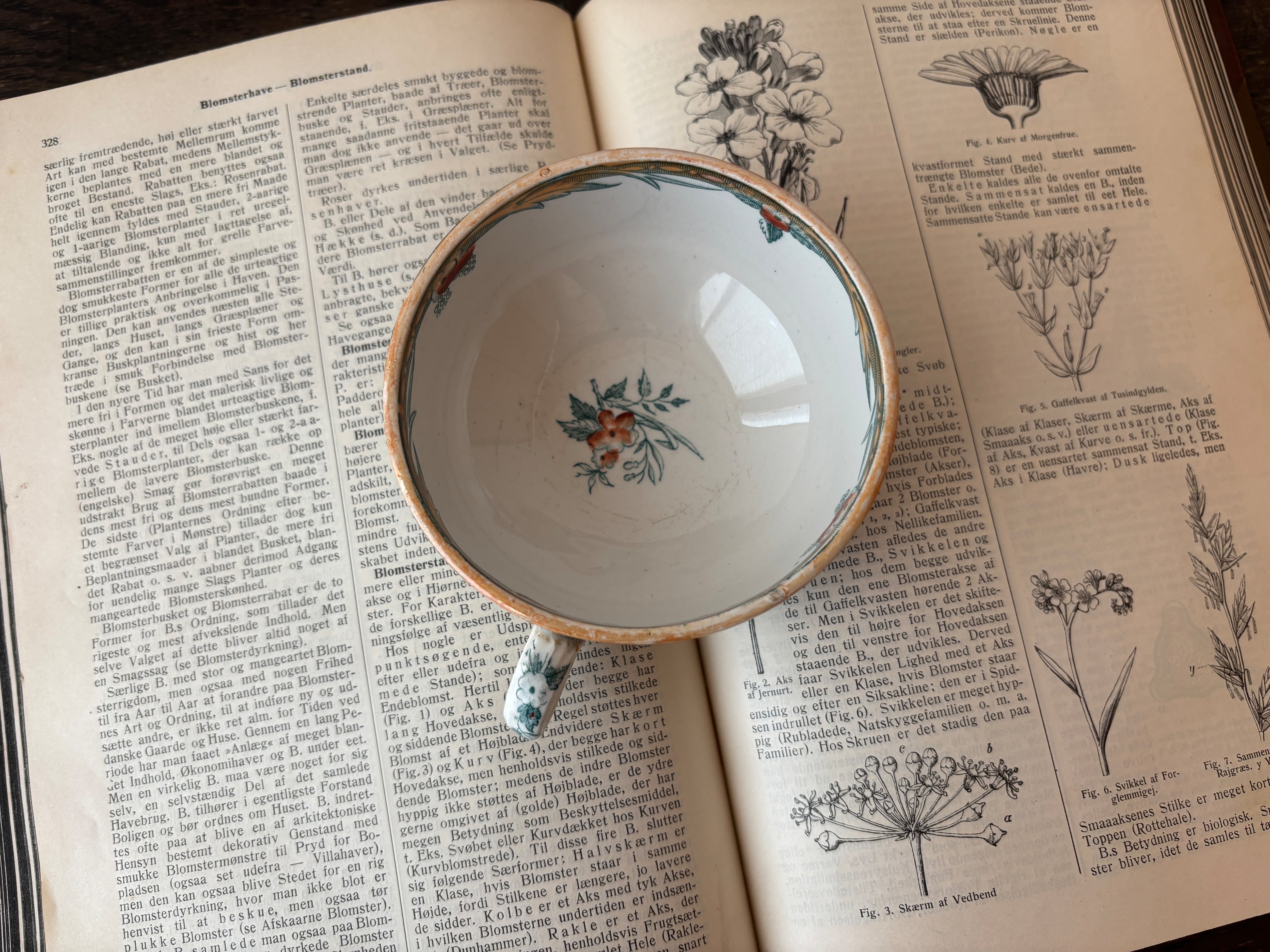 カップ内側のワンポイントの花文様や、曲線を描く持ち手のデザインも華やかで、