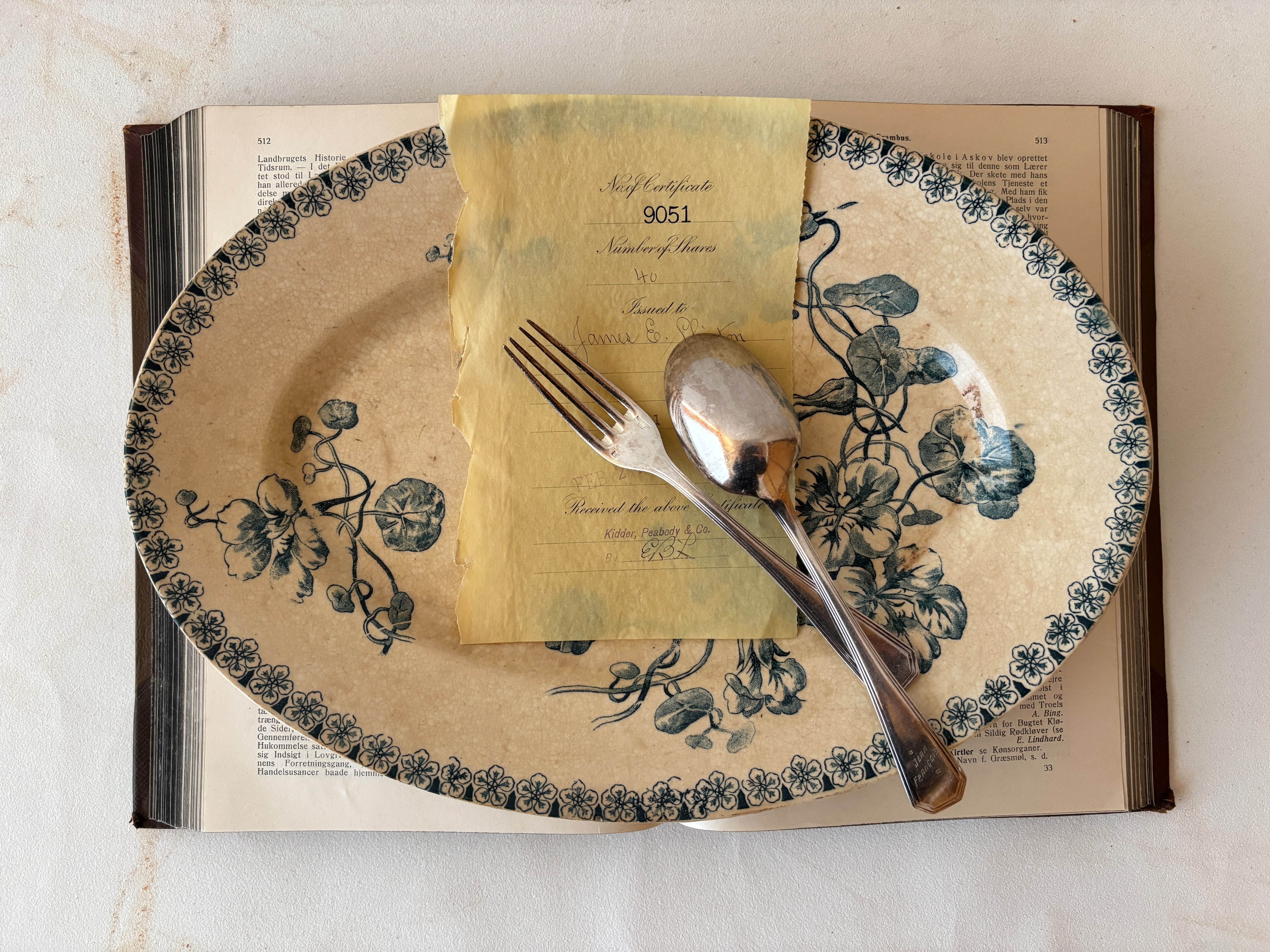 綺麗に枯れた古手のクリーム色にブルーグリーンの濃淡