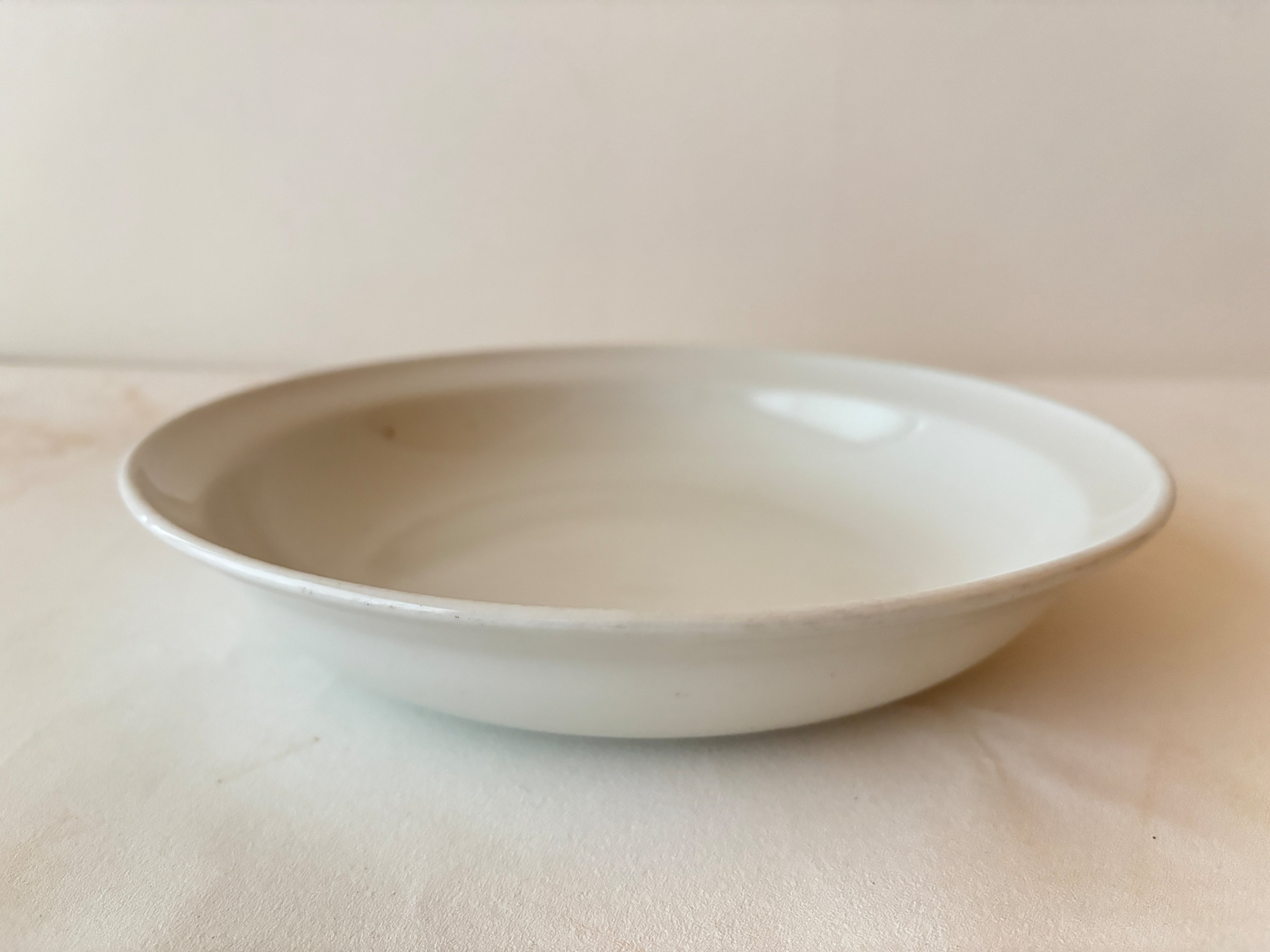 艶やかな白磁でラインやチップ、色滲み等もないコンディションの良いサラダディエがフランスから届きました。透き通るように美しい白と、丈夫で実用的な質感が魅力です。
