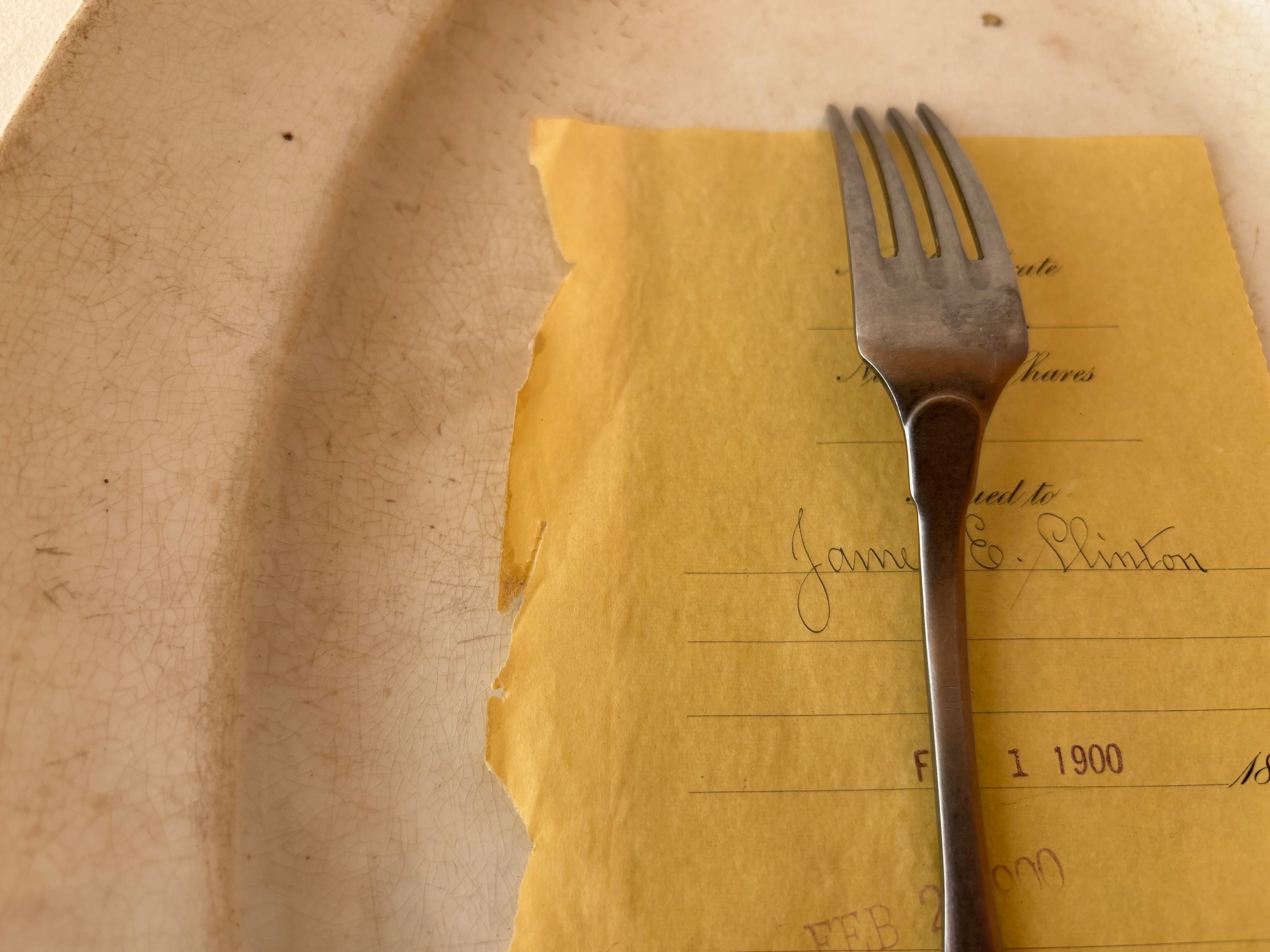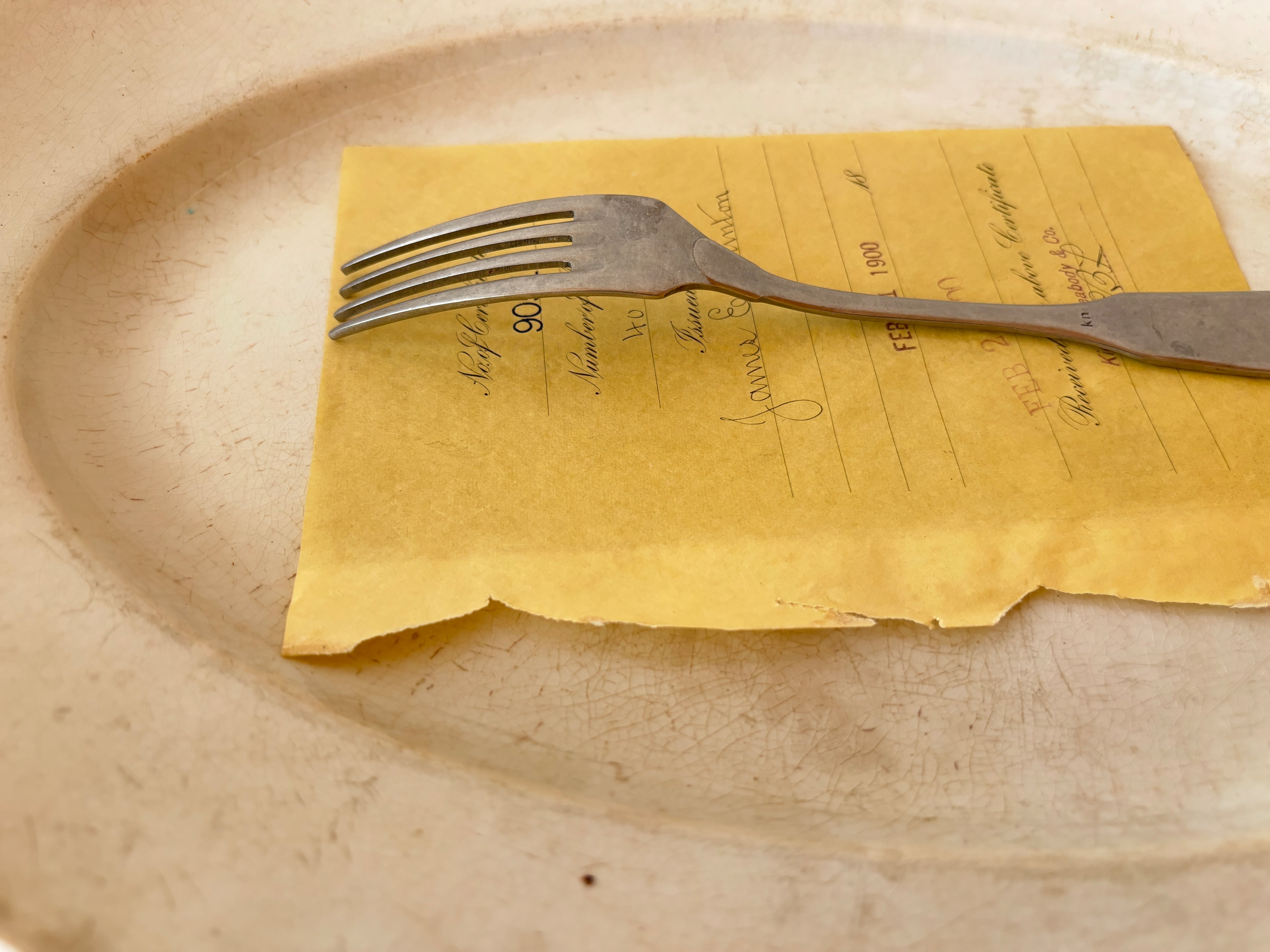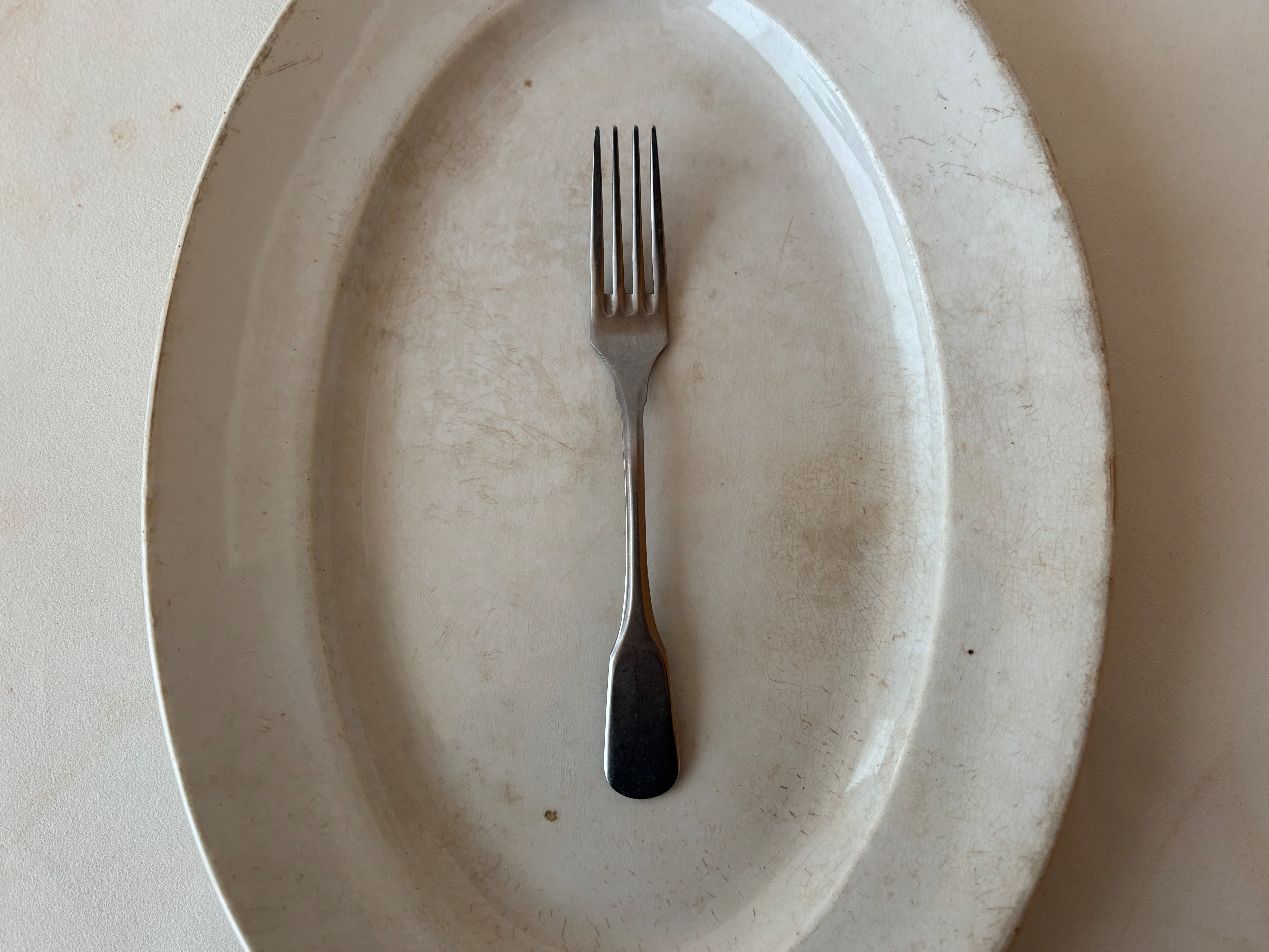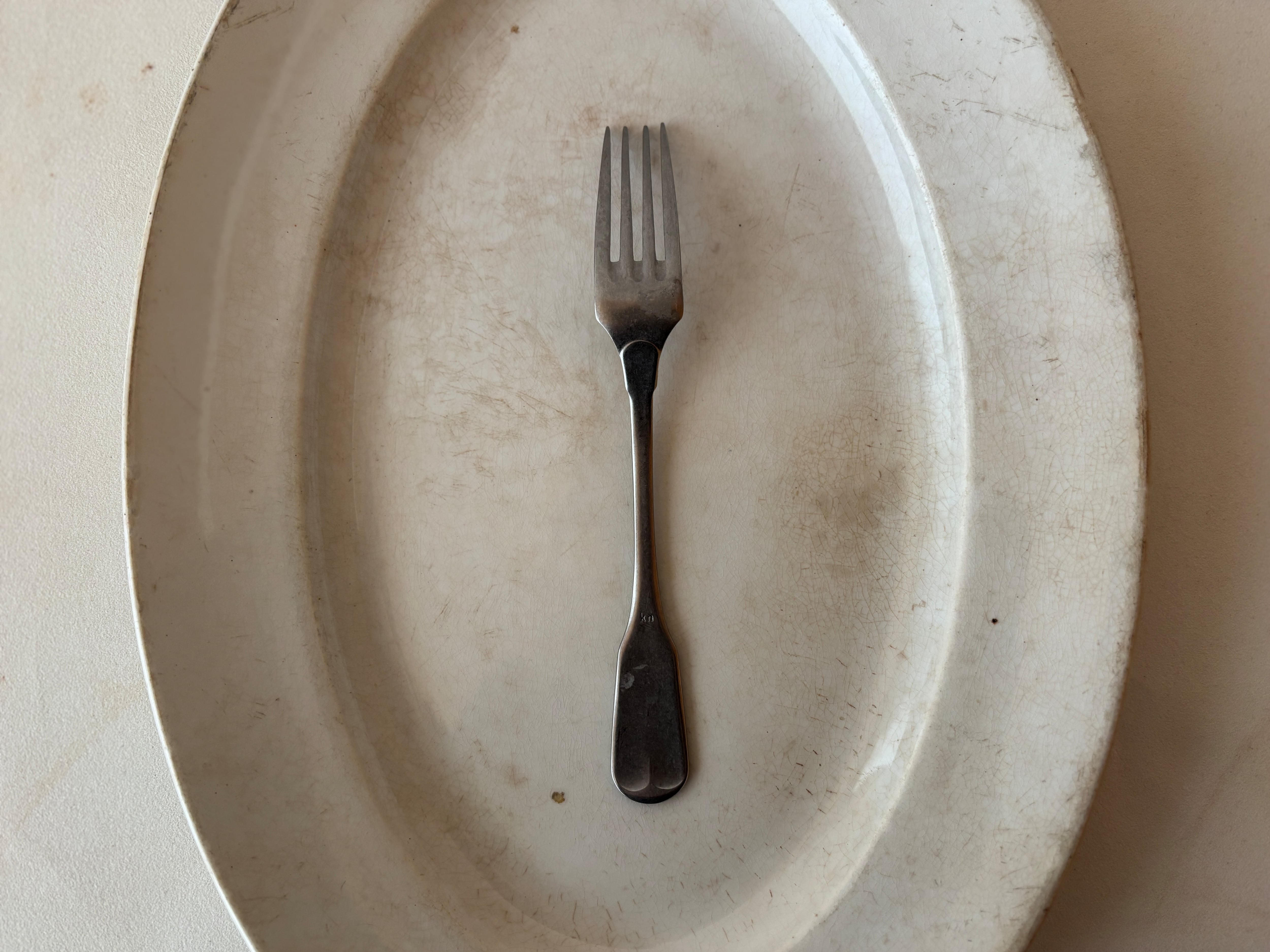 フランスからちょうど良いサイズ感のアンティークのサラダフォークが届きました。メーカーや正式な素材は不明ですがピューター系の色味のシルバープレートかと思います。