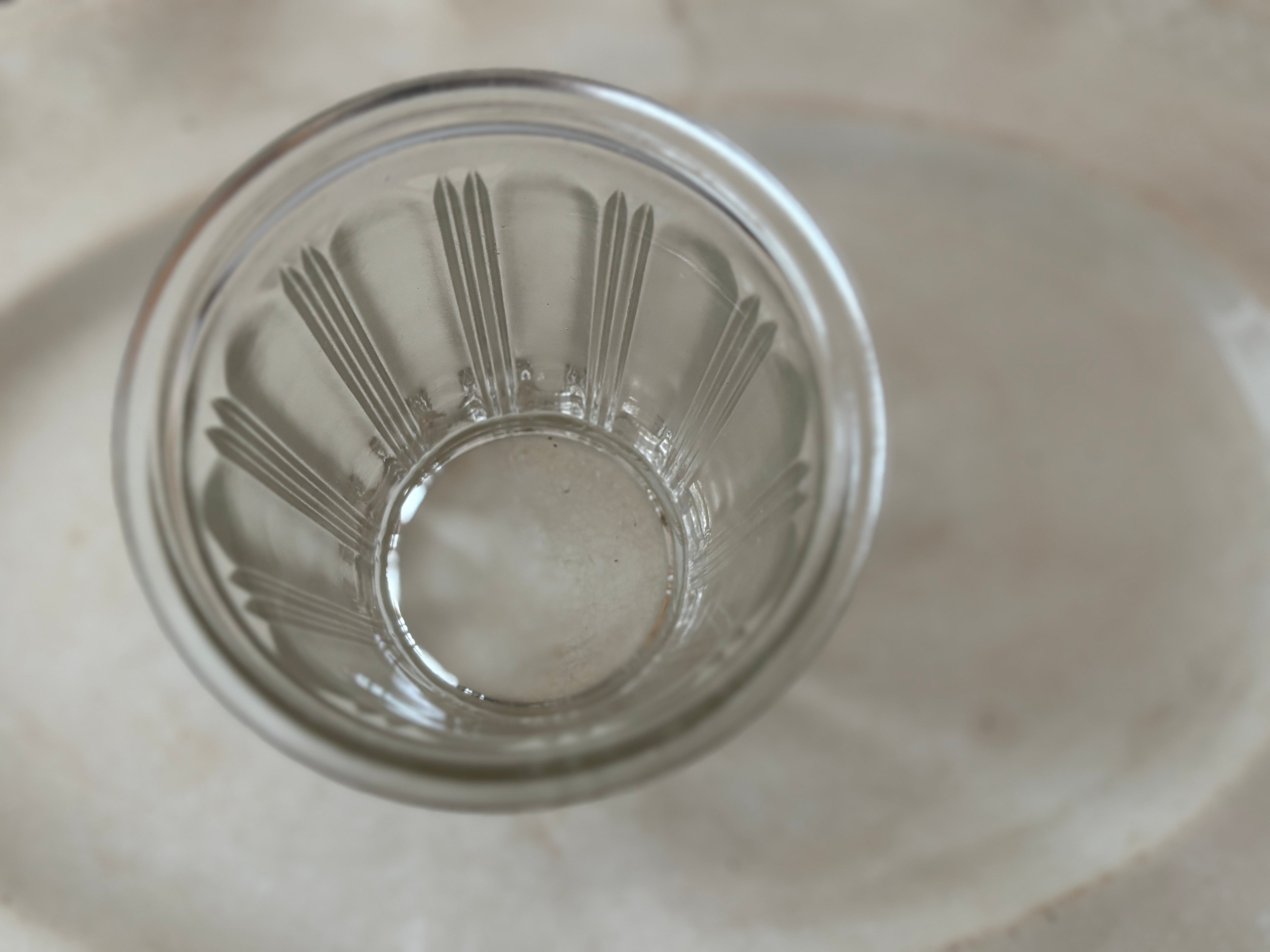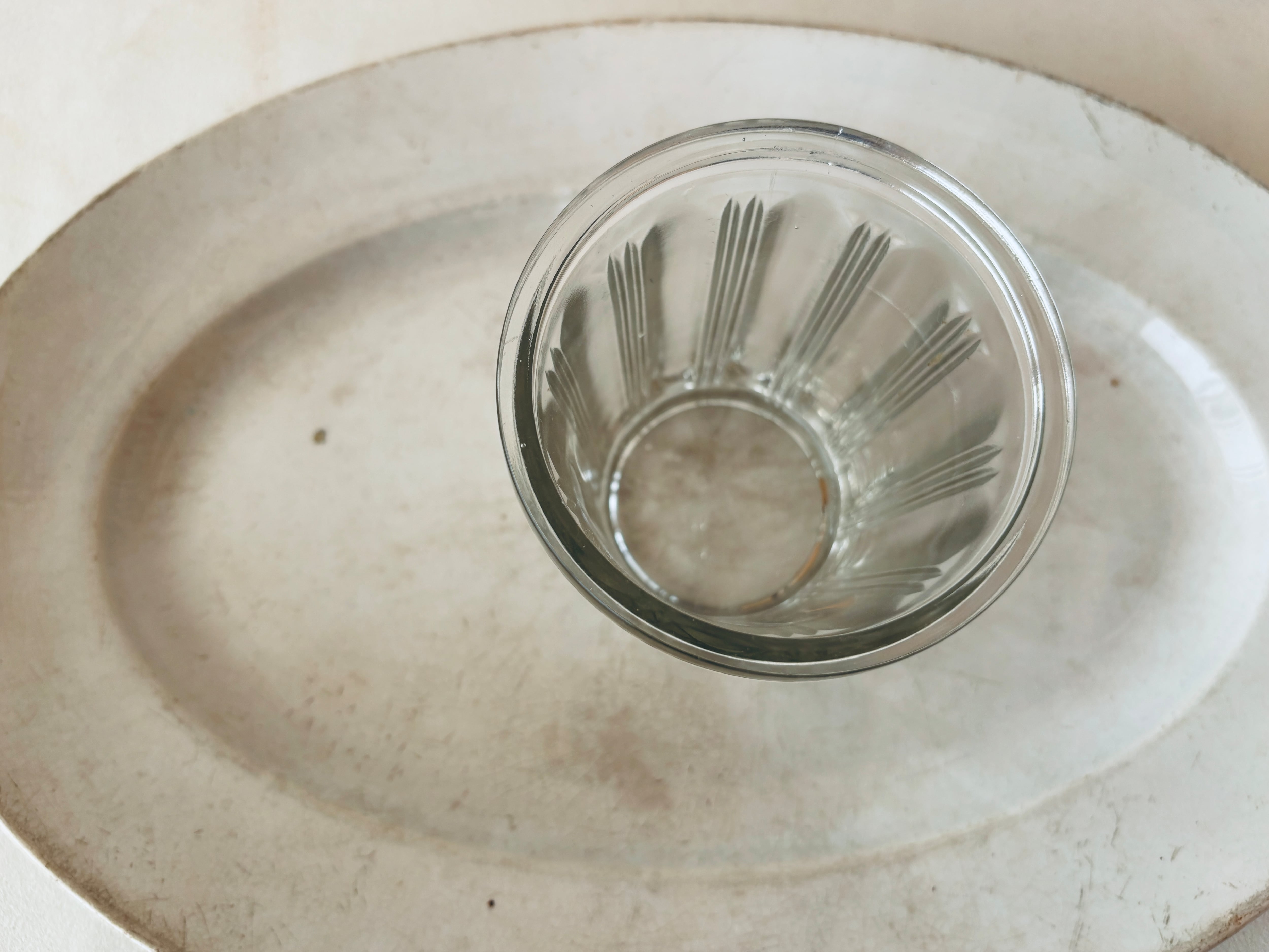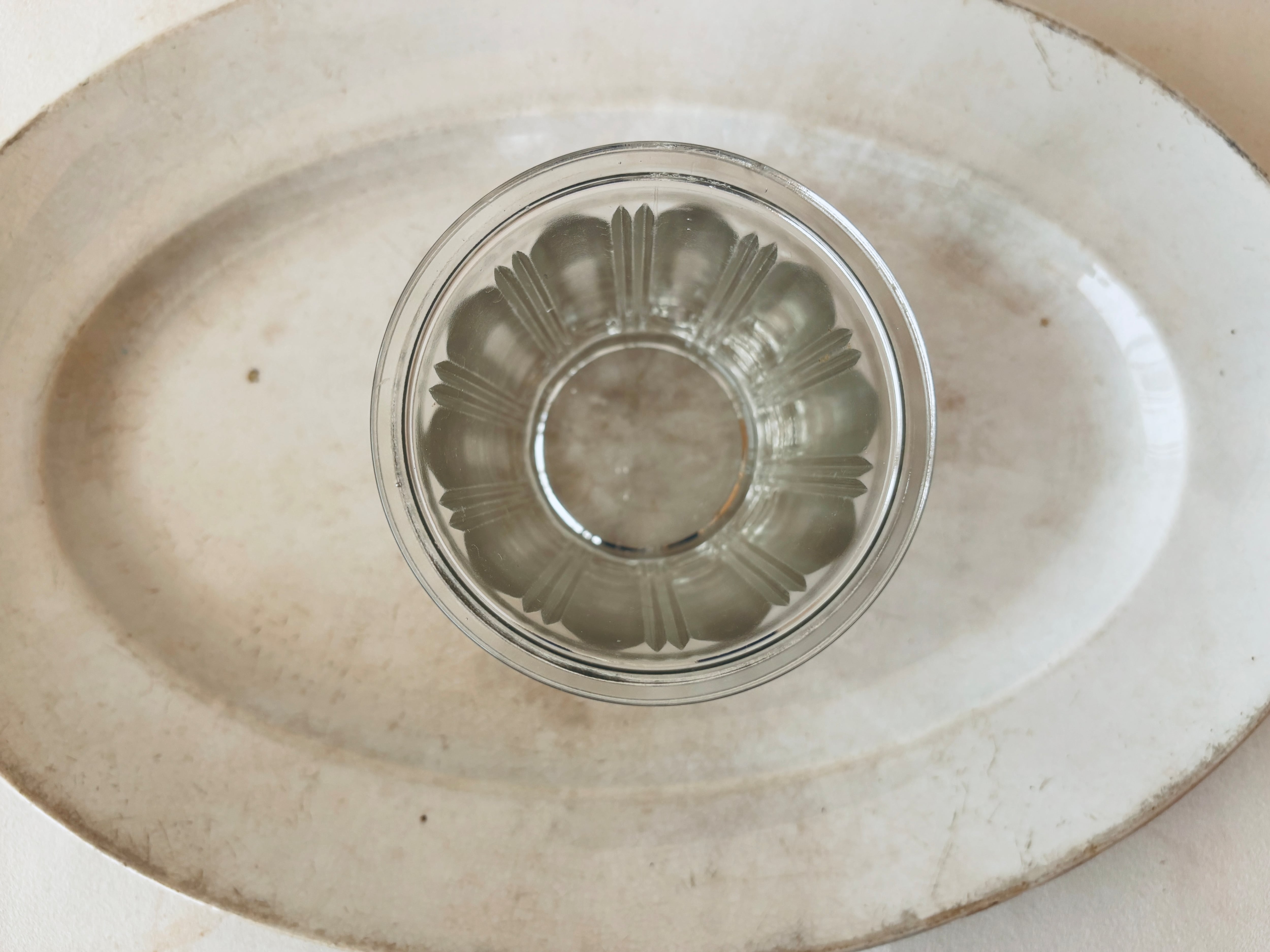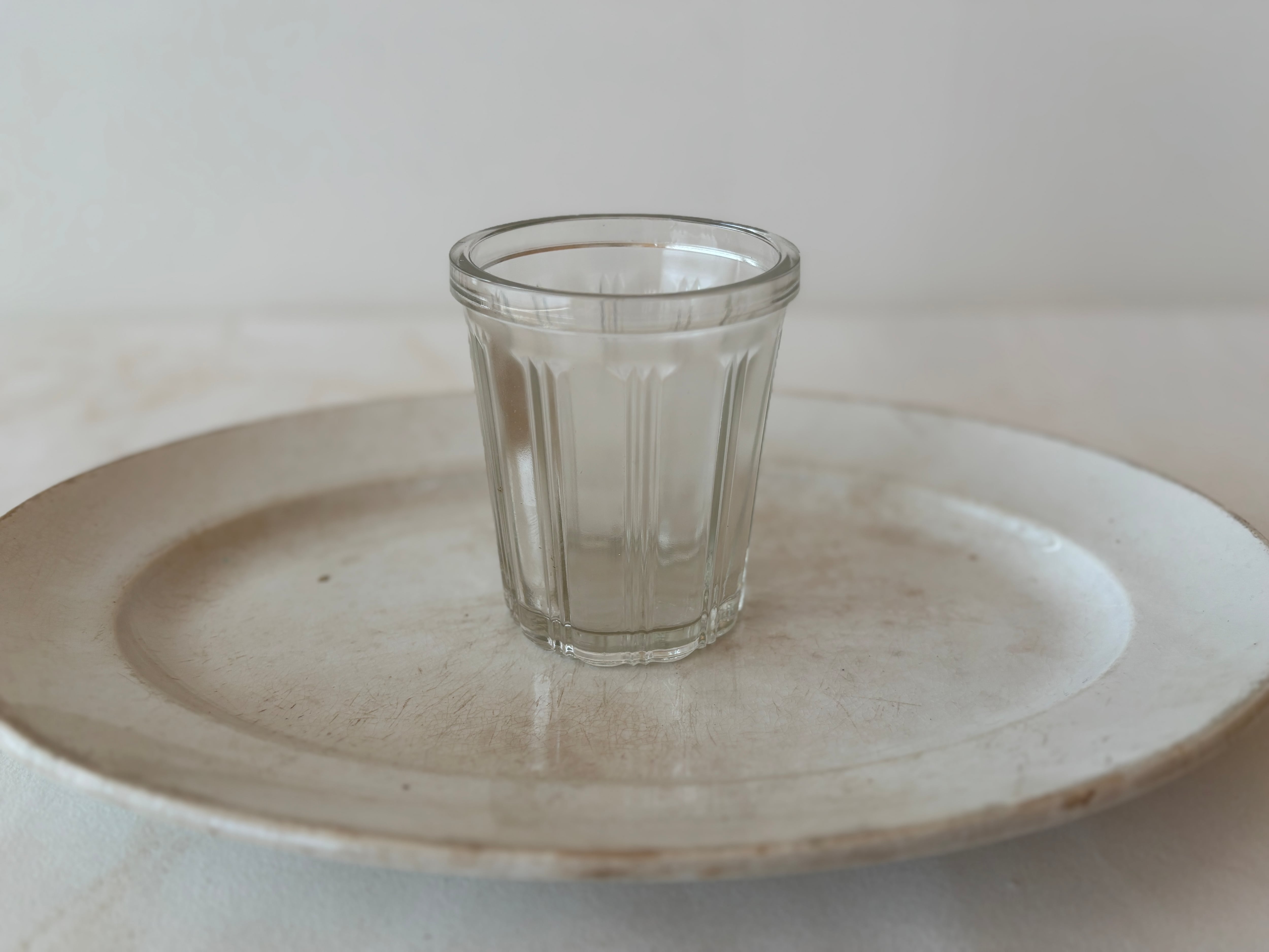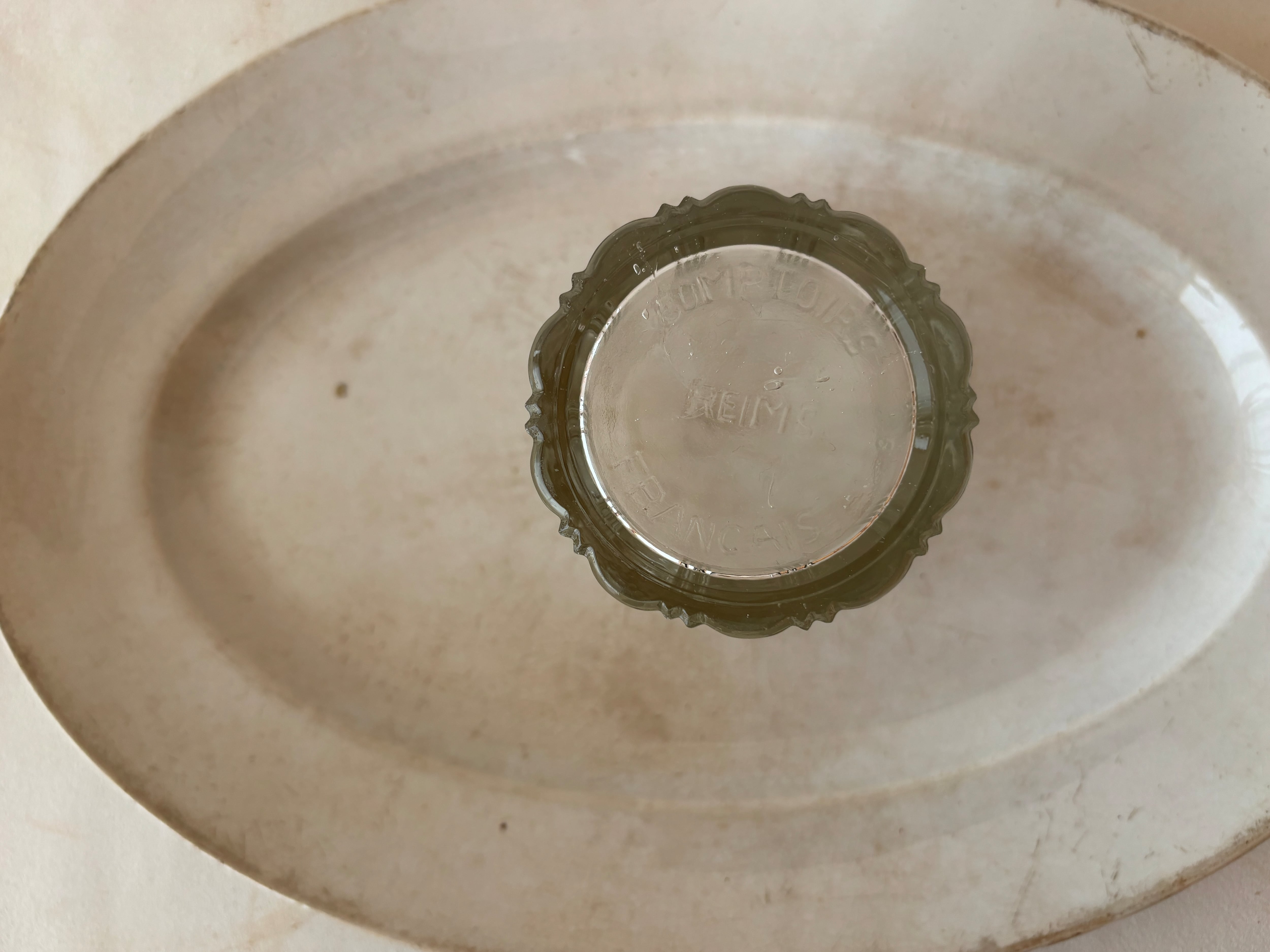 フランスでは、ジャムや保存食を家庭で保存するためのガラス瓶として親しまれてきたこちらのポットは、シンプルながら装飾的なデザインが施され、テーブルコーディネートを華やかに彩ります。特に美しい側面のカッティングは、アールヌーヴォーを思わせる優美なモチーフとなっており、その繊細な造形が魅力です。(個人的に、こちらのそこめんはたまらなく好きな造形です)