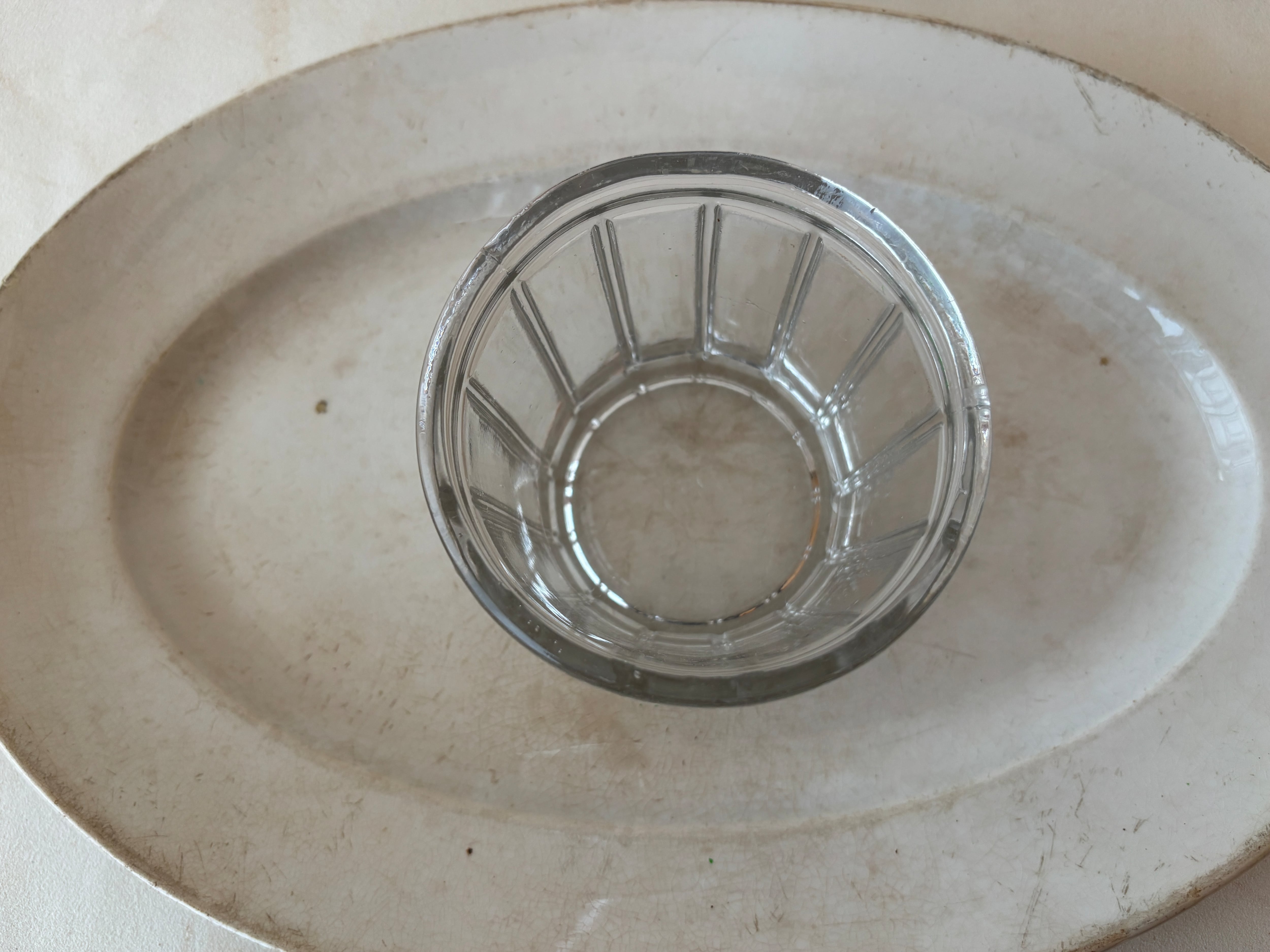 フランスでは、ジャムや保存食を家庭で保存するためのガラス瓶として親しまれてきたこちらのポットは、シンプルながら装飾的なデザインが施され、テーブルコーディネートを華やかに彩ります。特に美しい側面のカッティングは、アールヌーヴォーを思わせる優美なモチーフとなっており、その繊細な造形が魅力です。