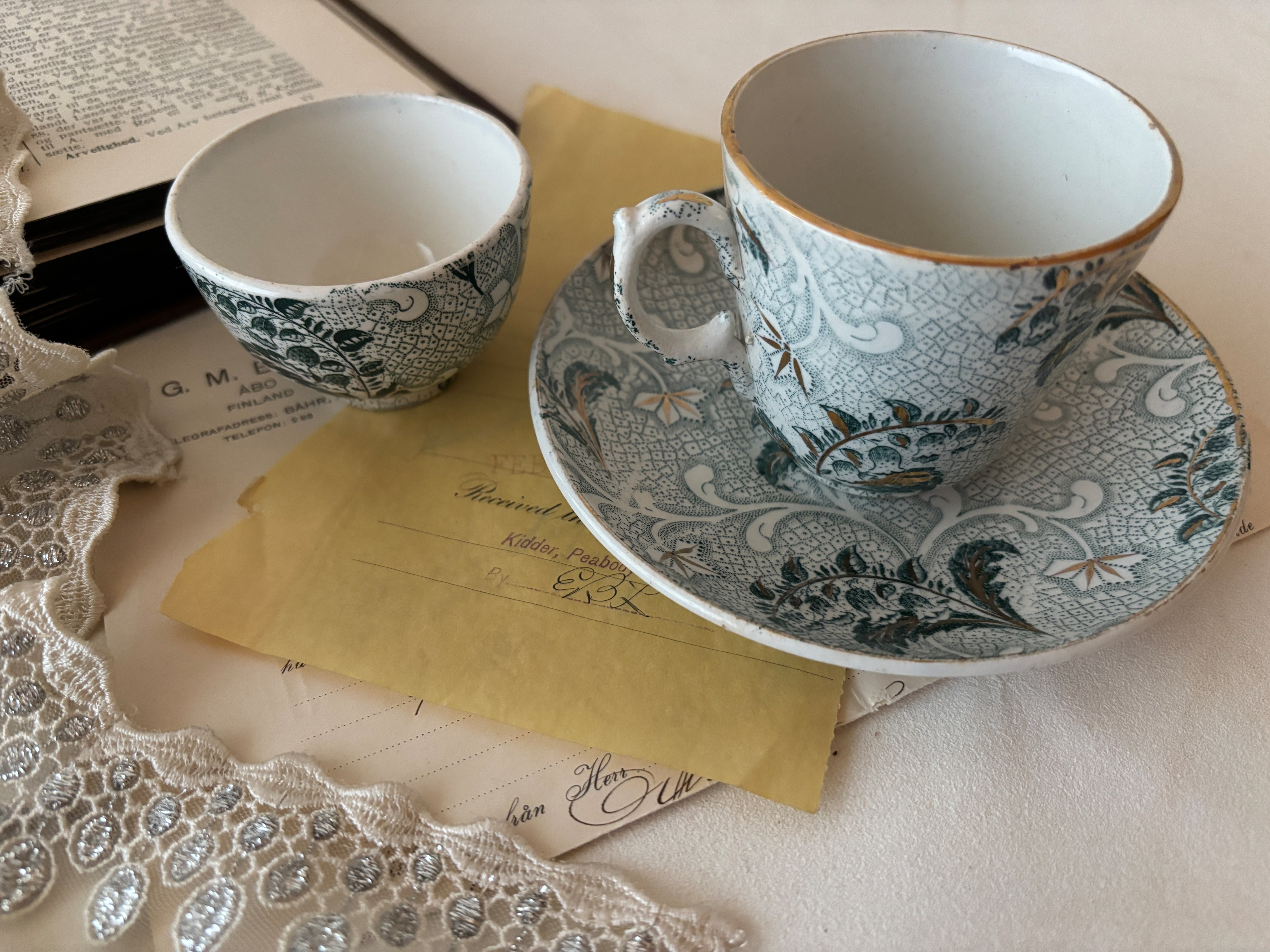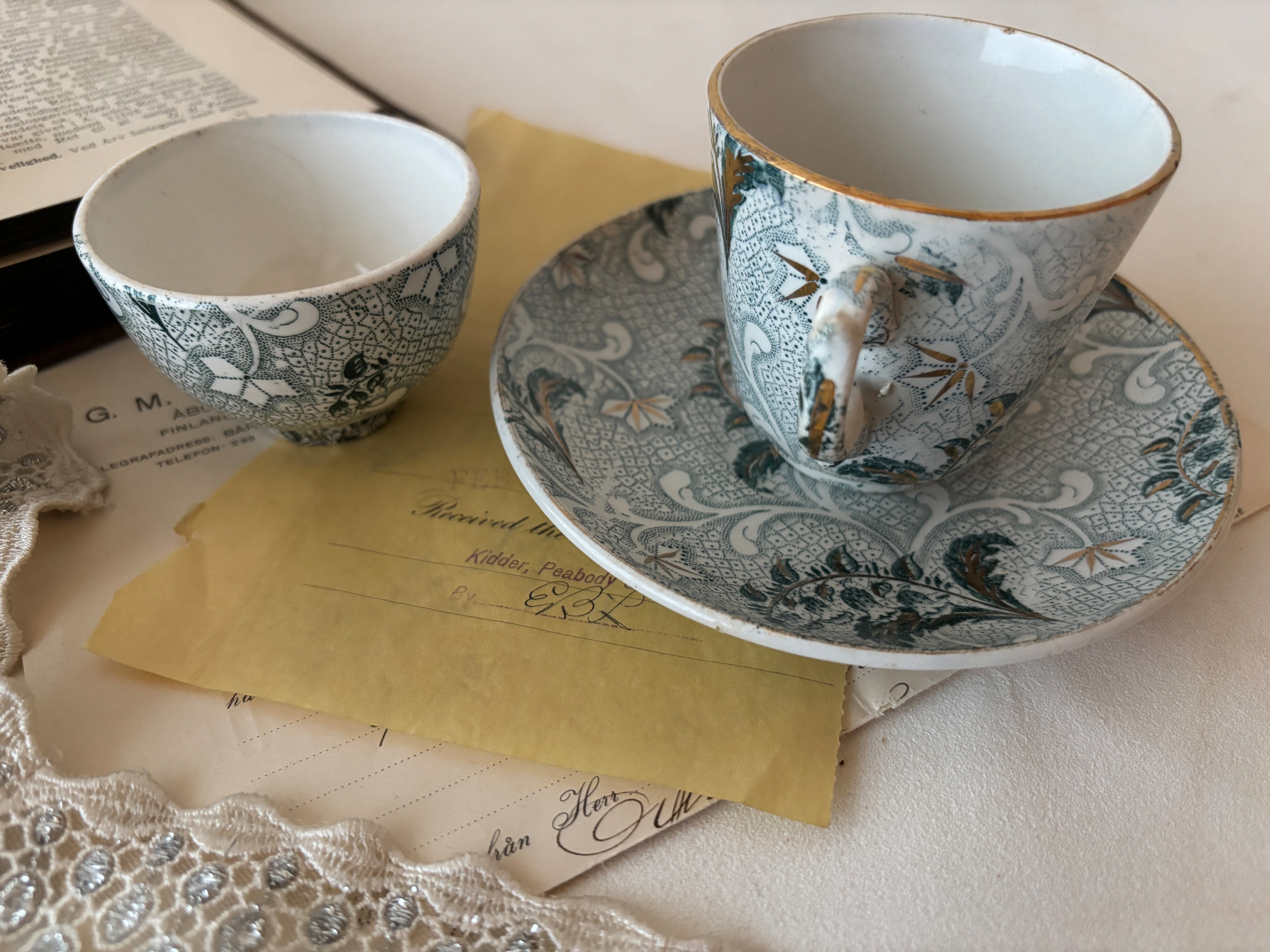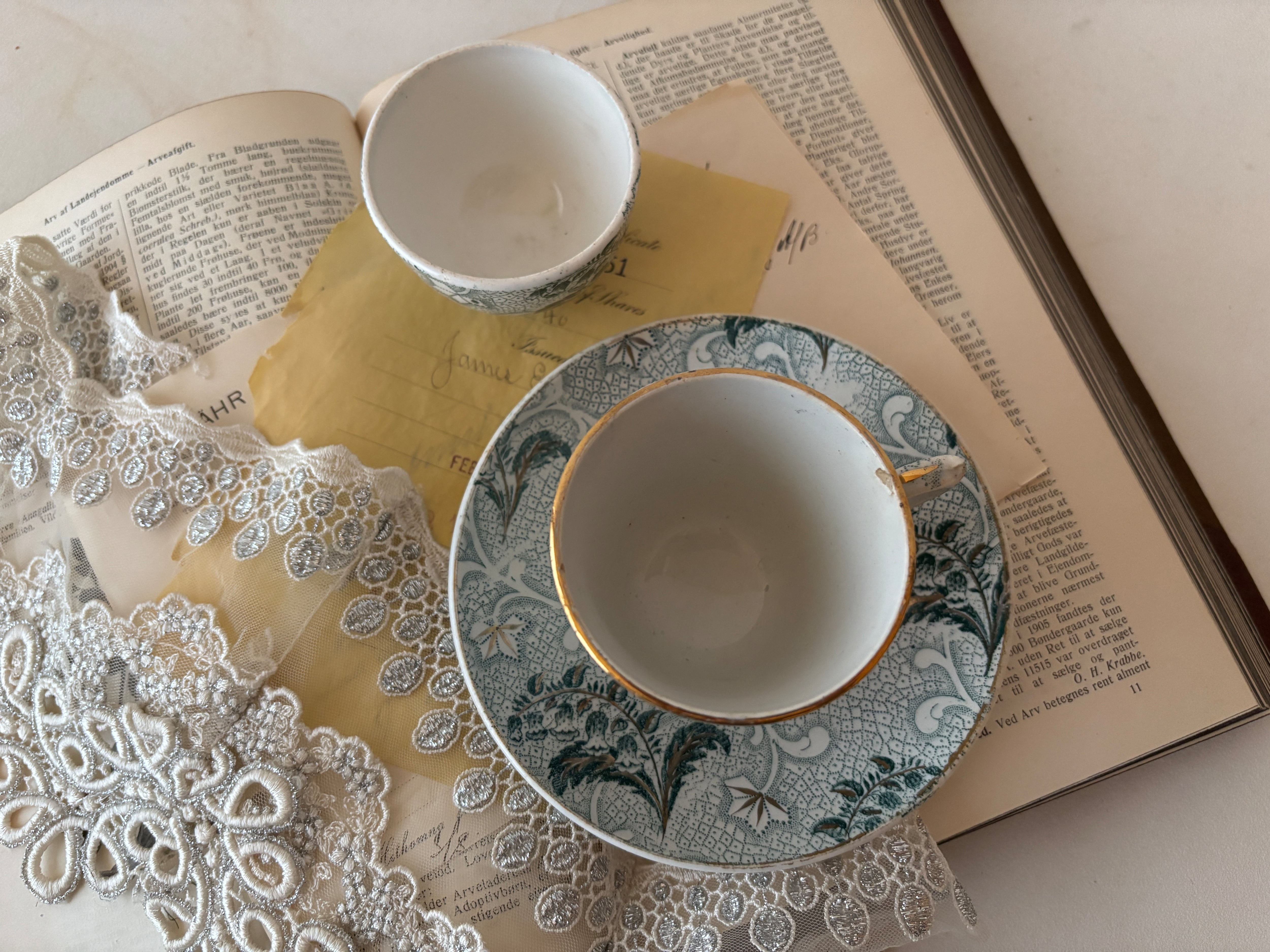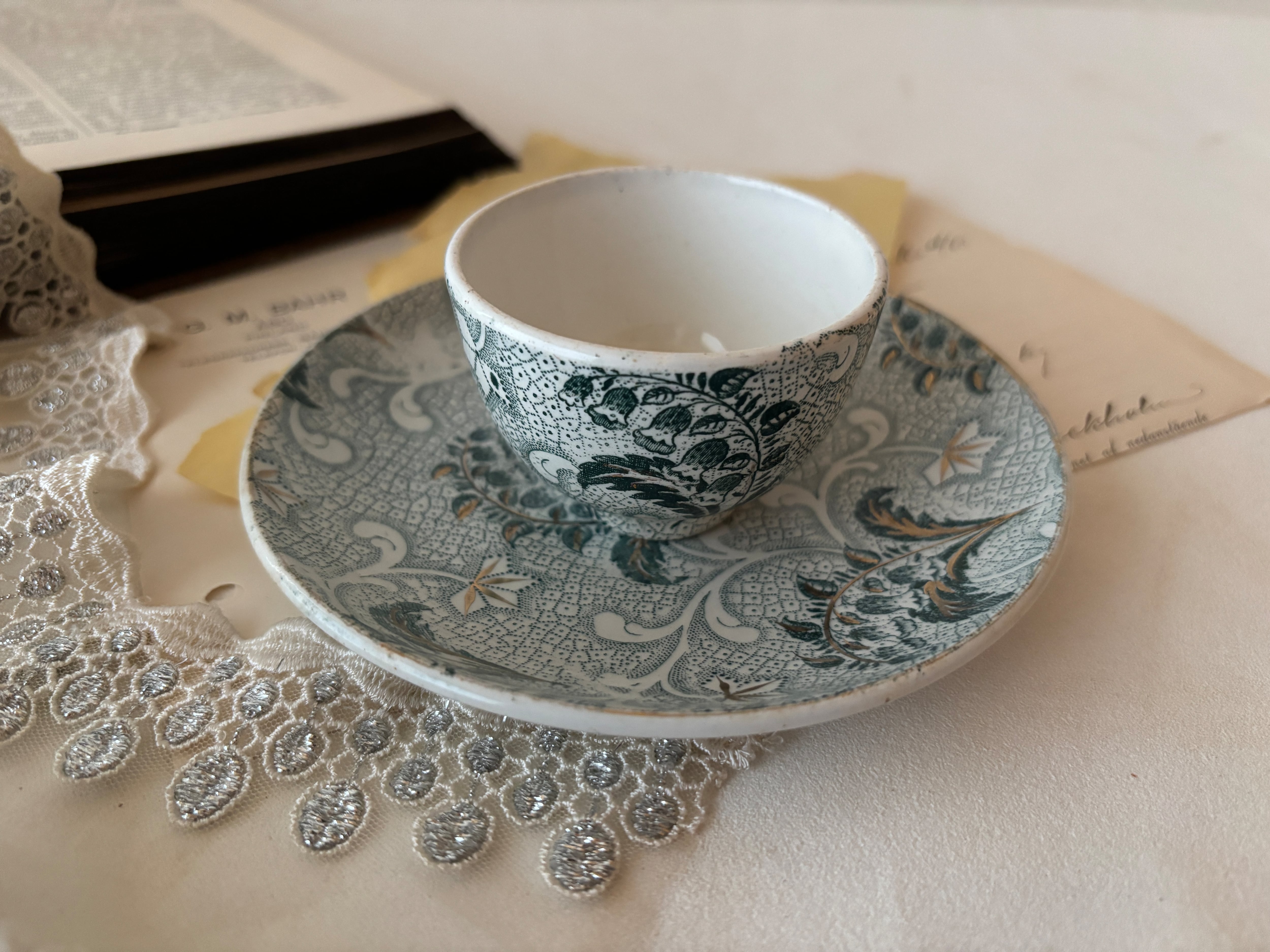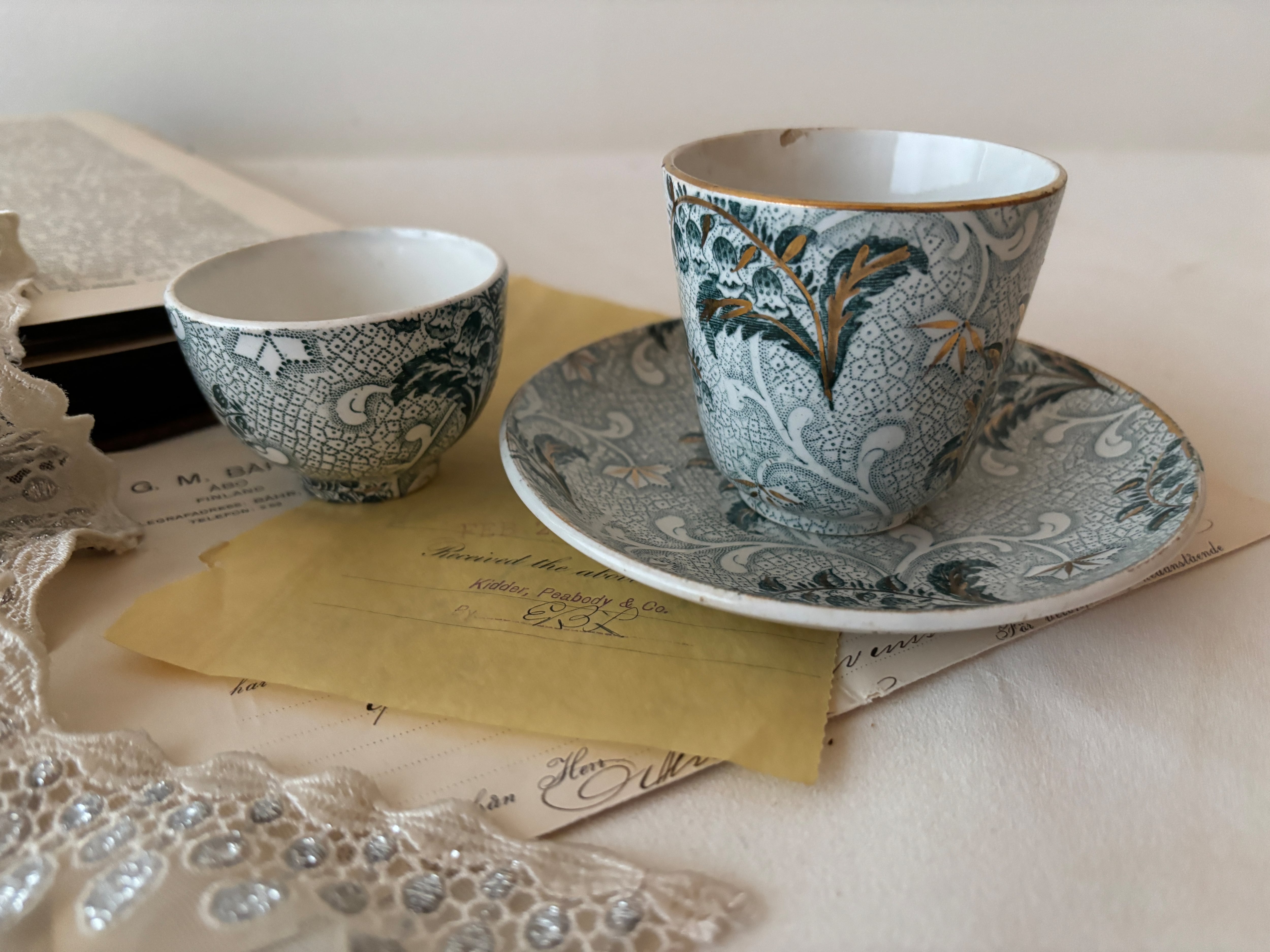 クレイユモントローの中でも最も希少とされ、“幻のアンティーク”と呼ばれるミュゲ(すずらん)シリーズのデミタスカップ&ソーサーとミニカップのセットがフランスより届きました。