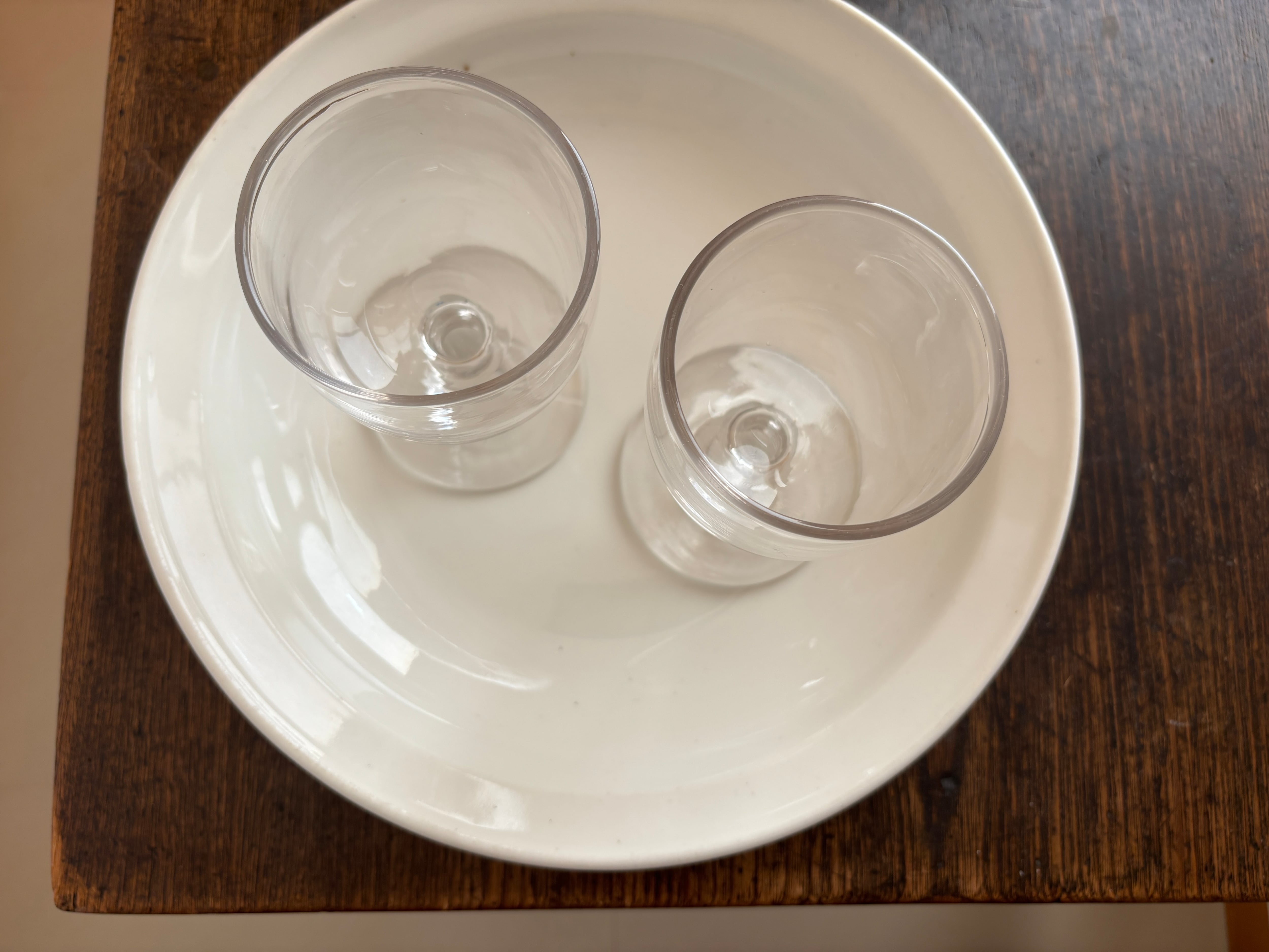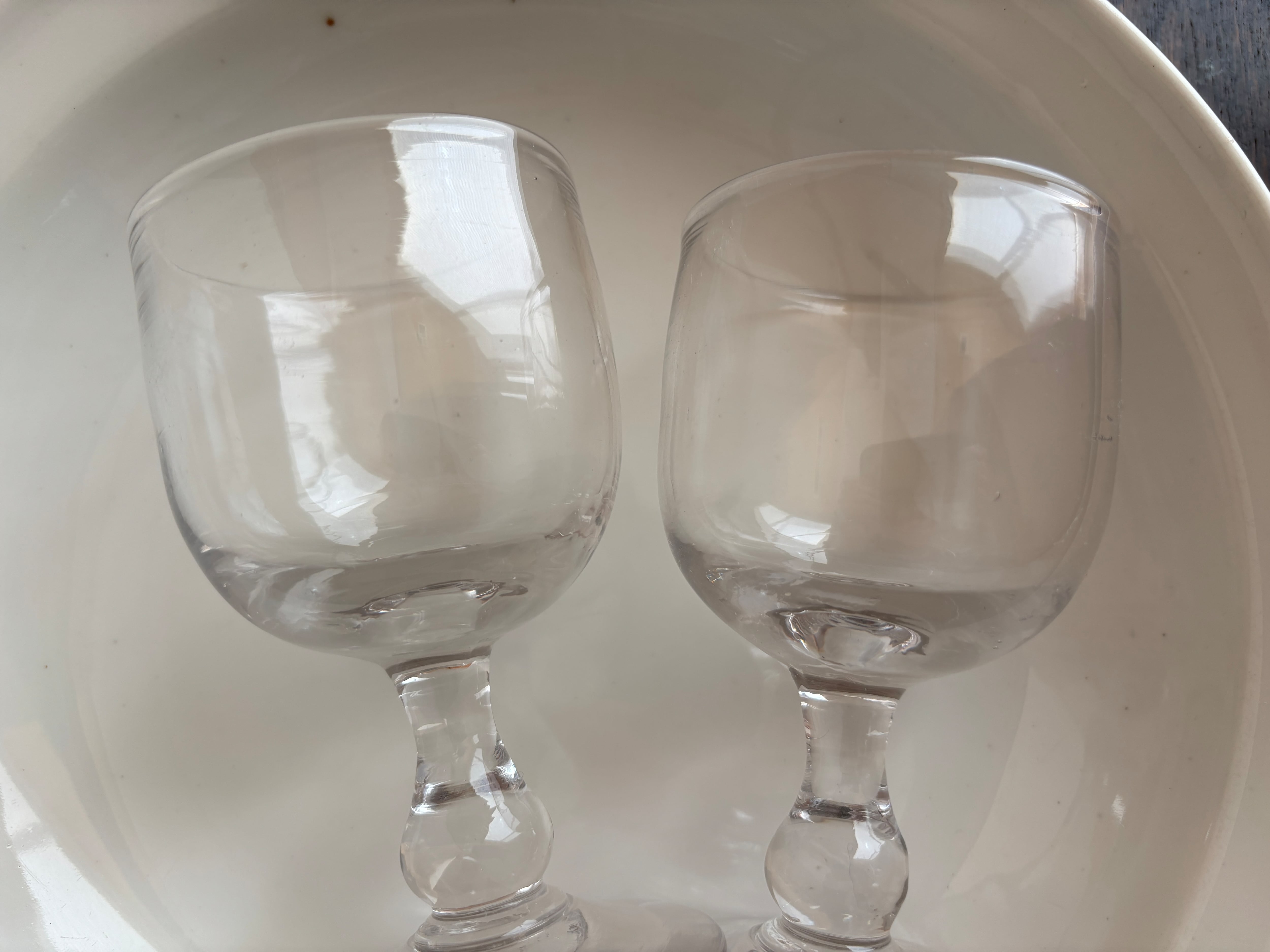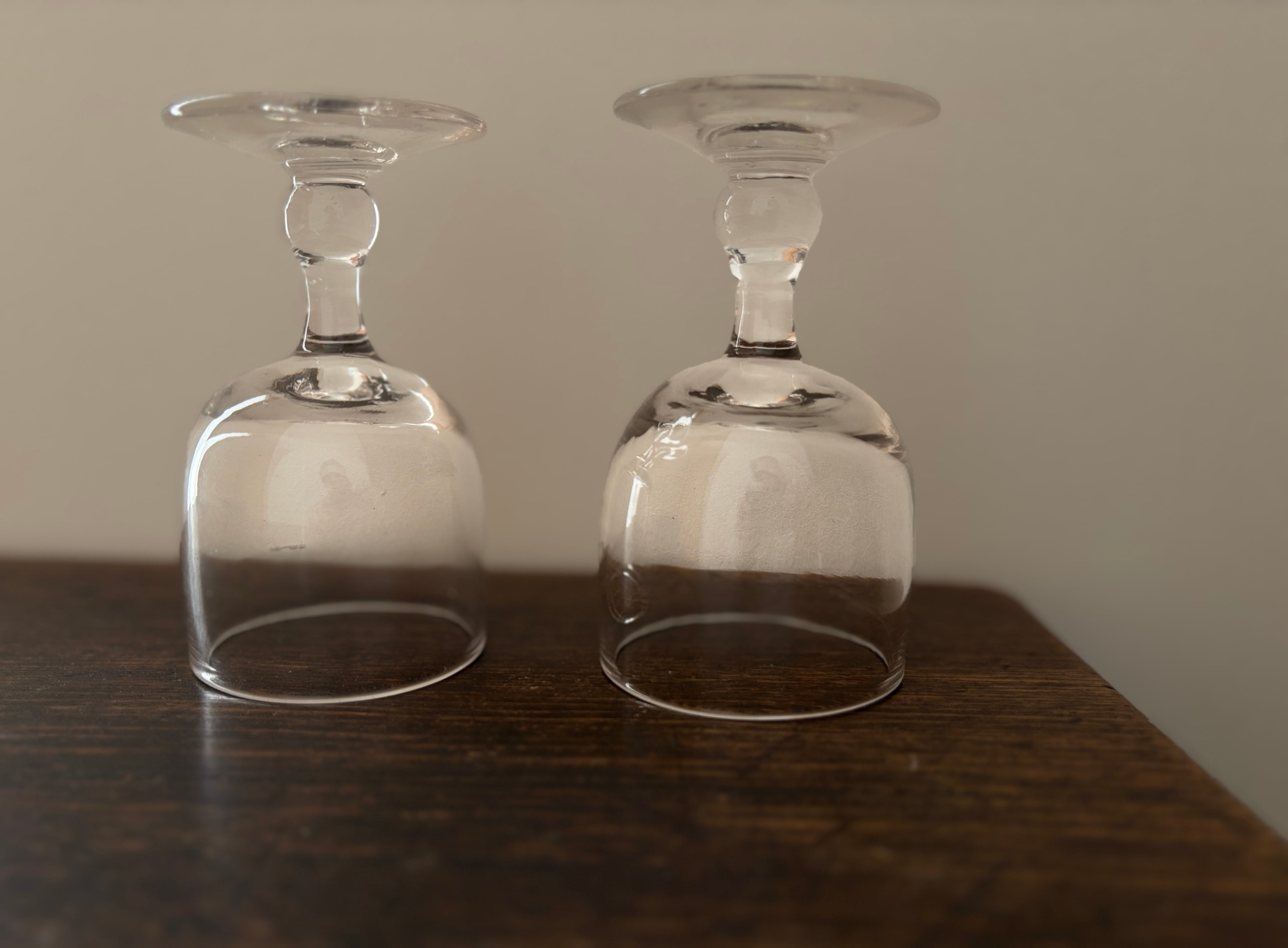 【ペア】フランスアンティーク 手吹きワイングラス 装飾ステム付きコブレット
