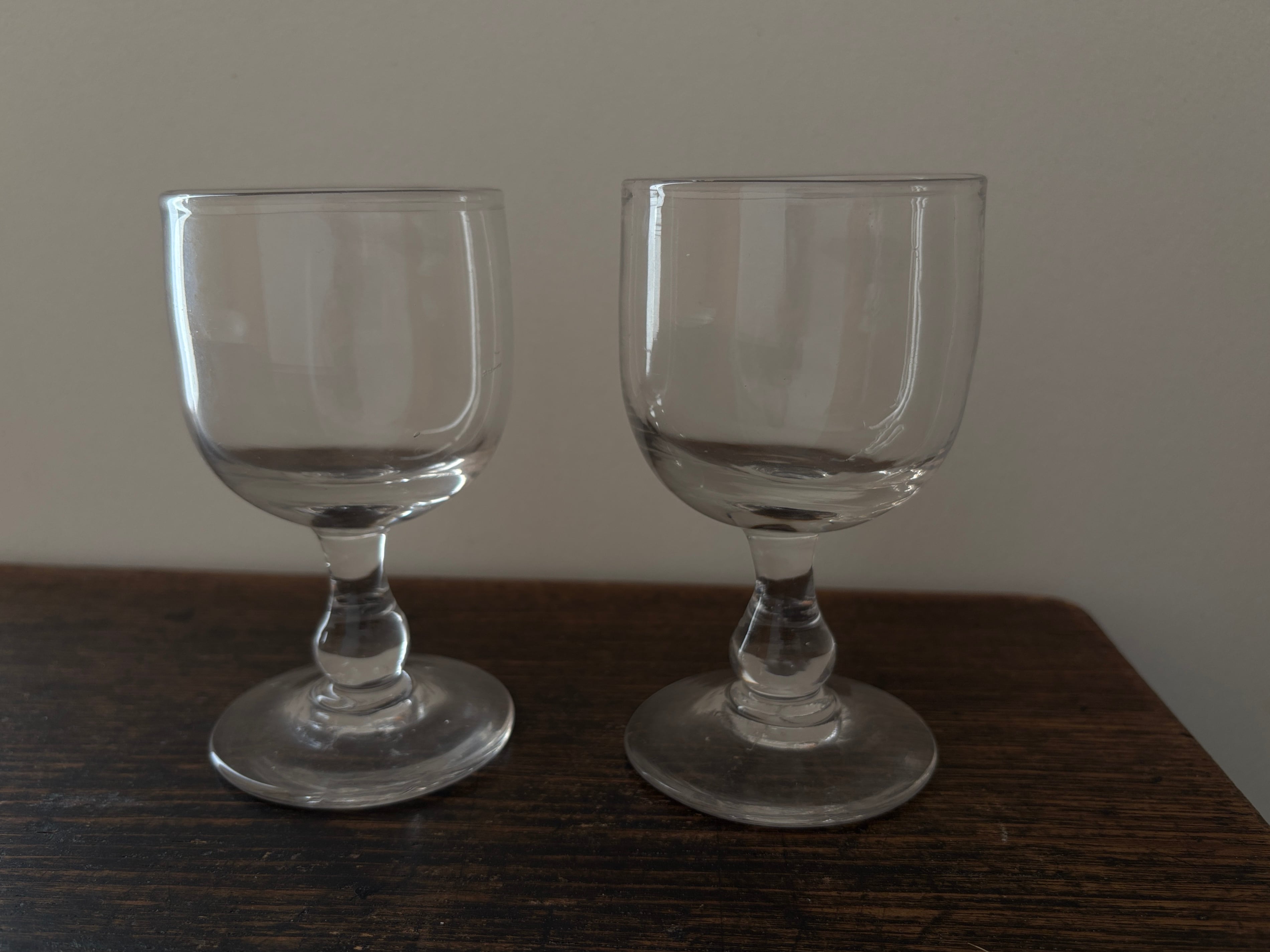 フランスアンティークの手吹きワイングラス。脚の中央下に装飾ステム付きのデザイン。