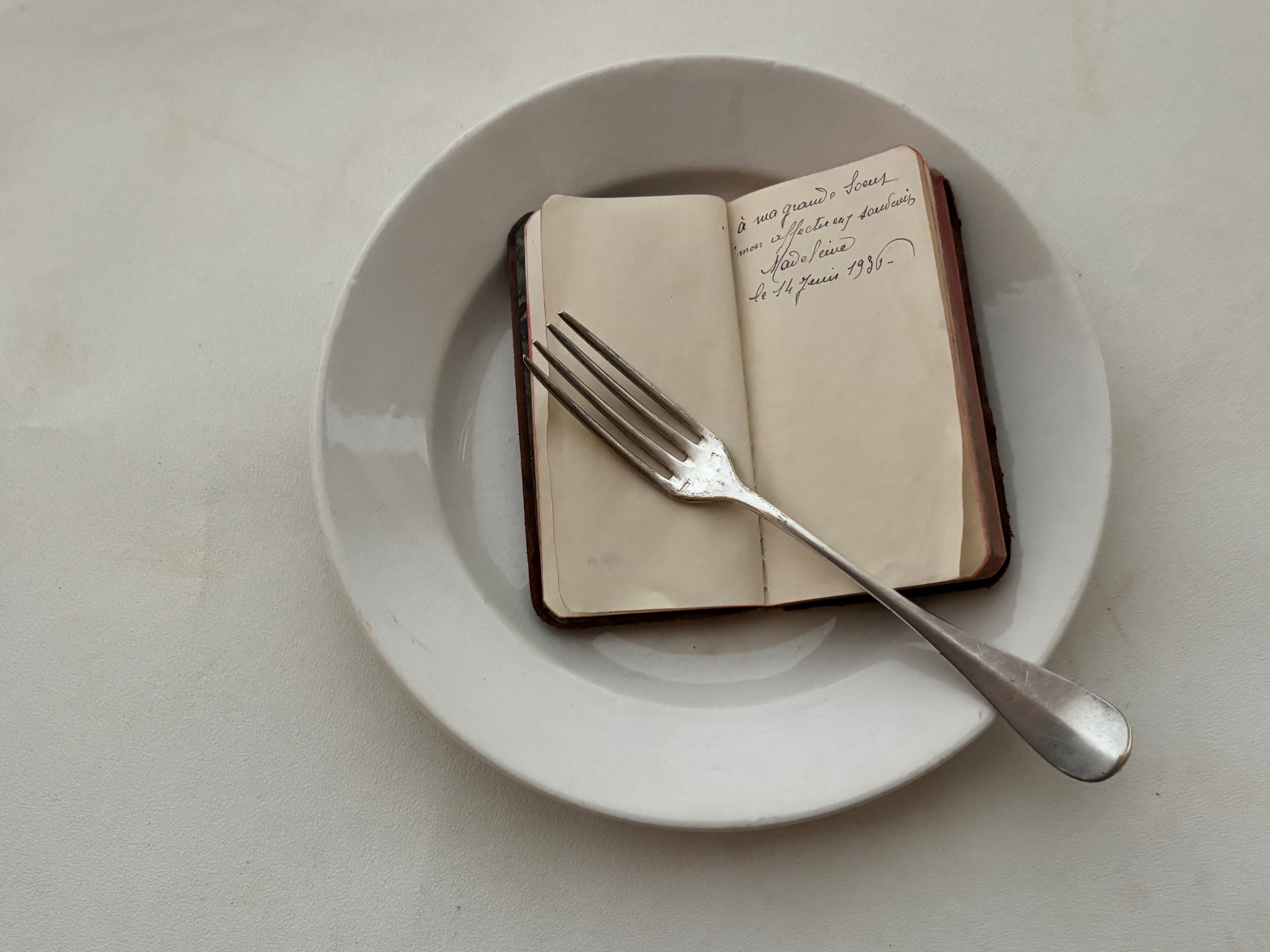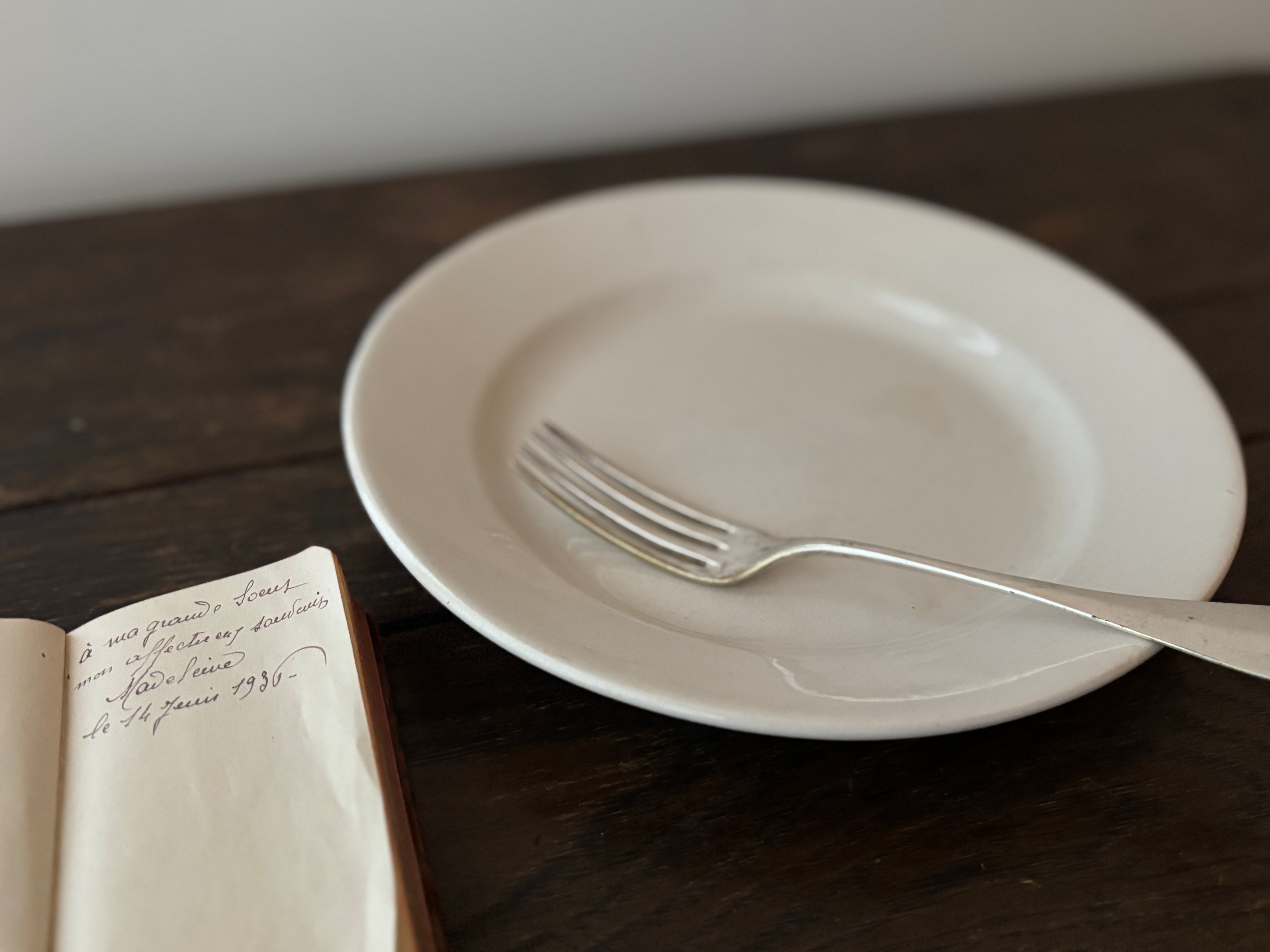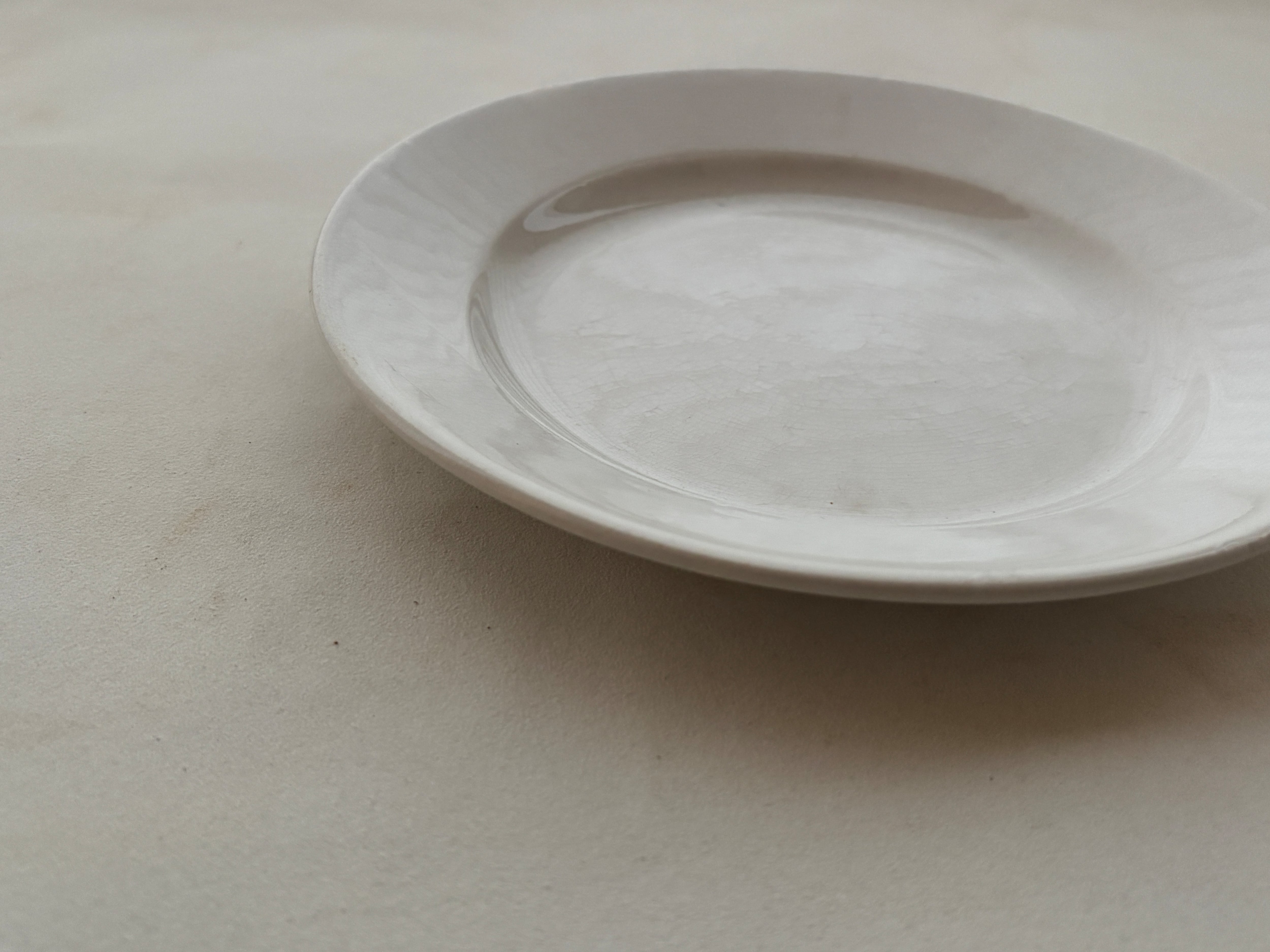オフホワイト無地の少し大きめのシンプルなデザートプレート。