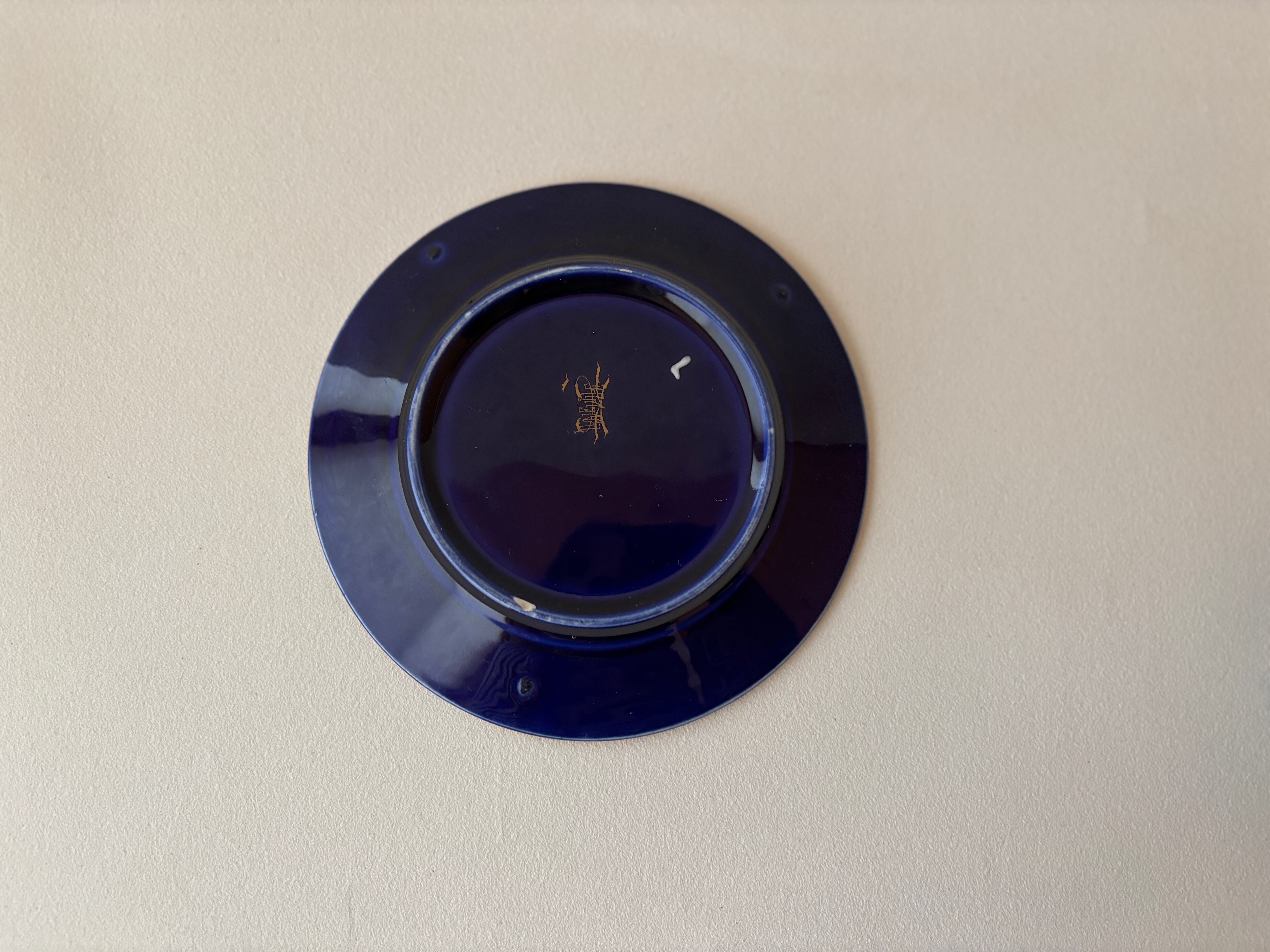 鮮やかなコバルトブルーの釉薬に金彩が映え、