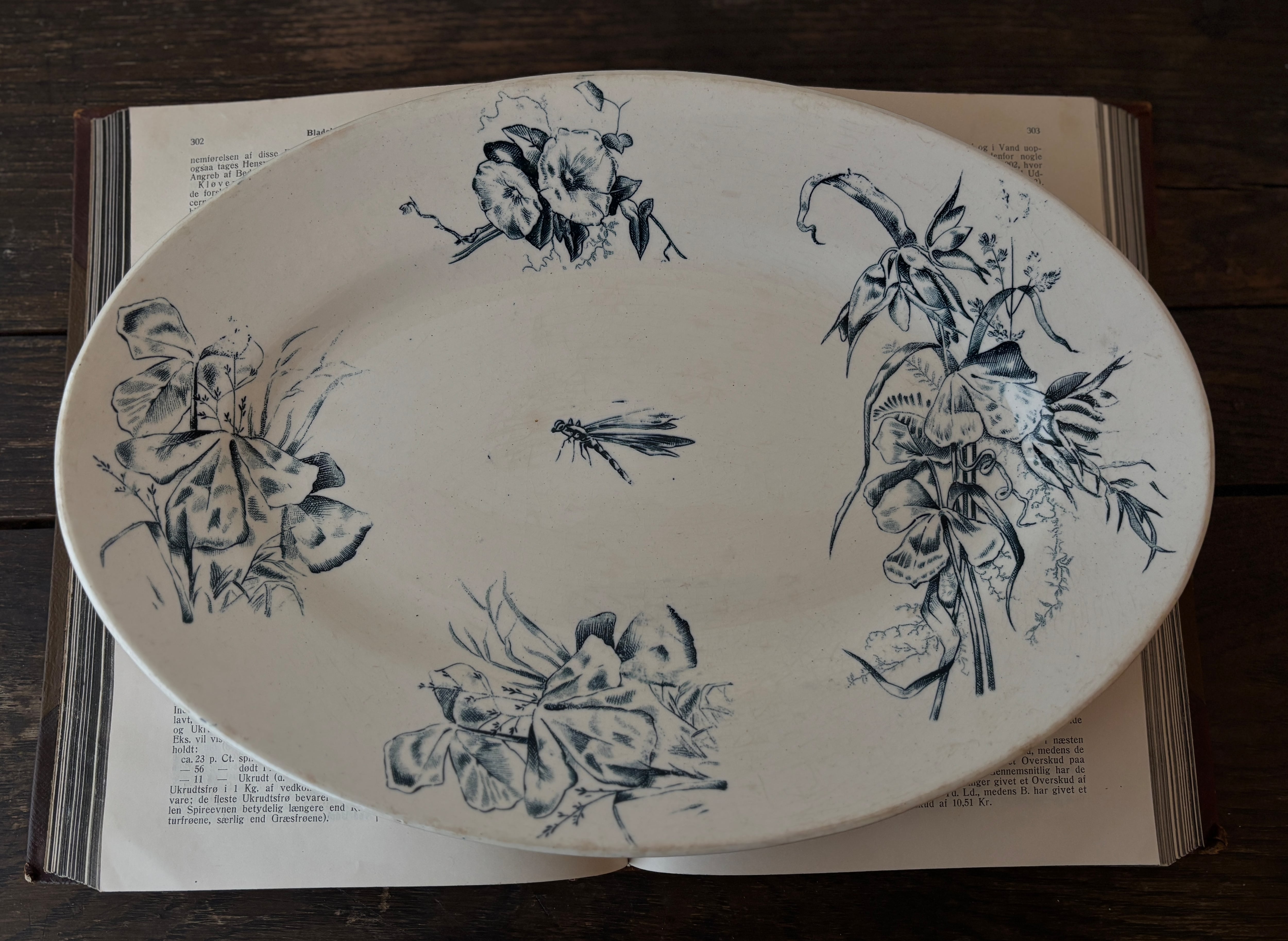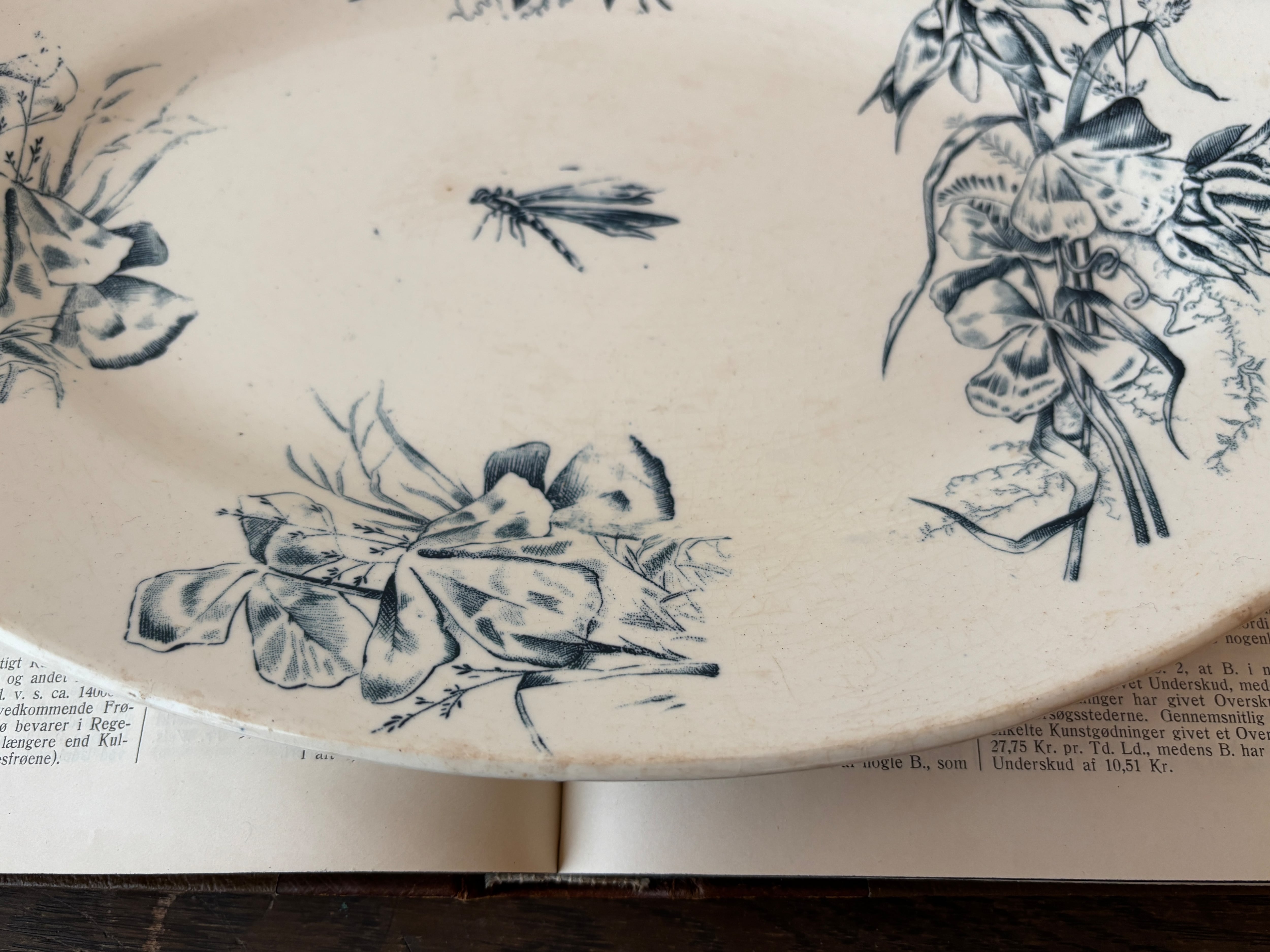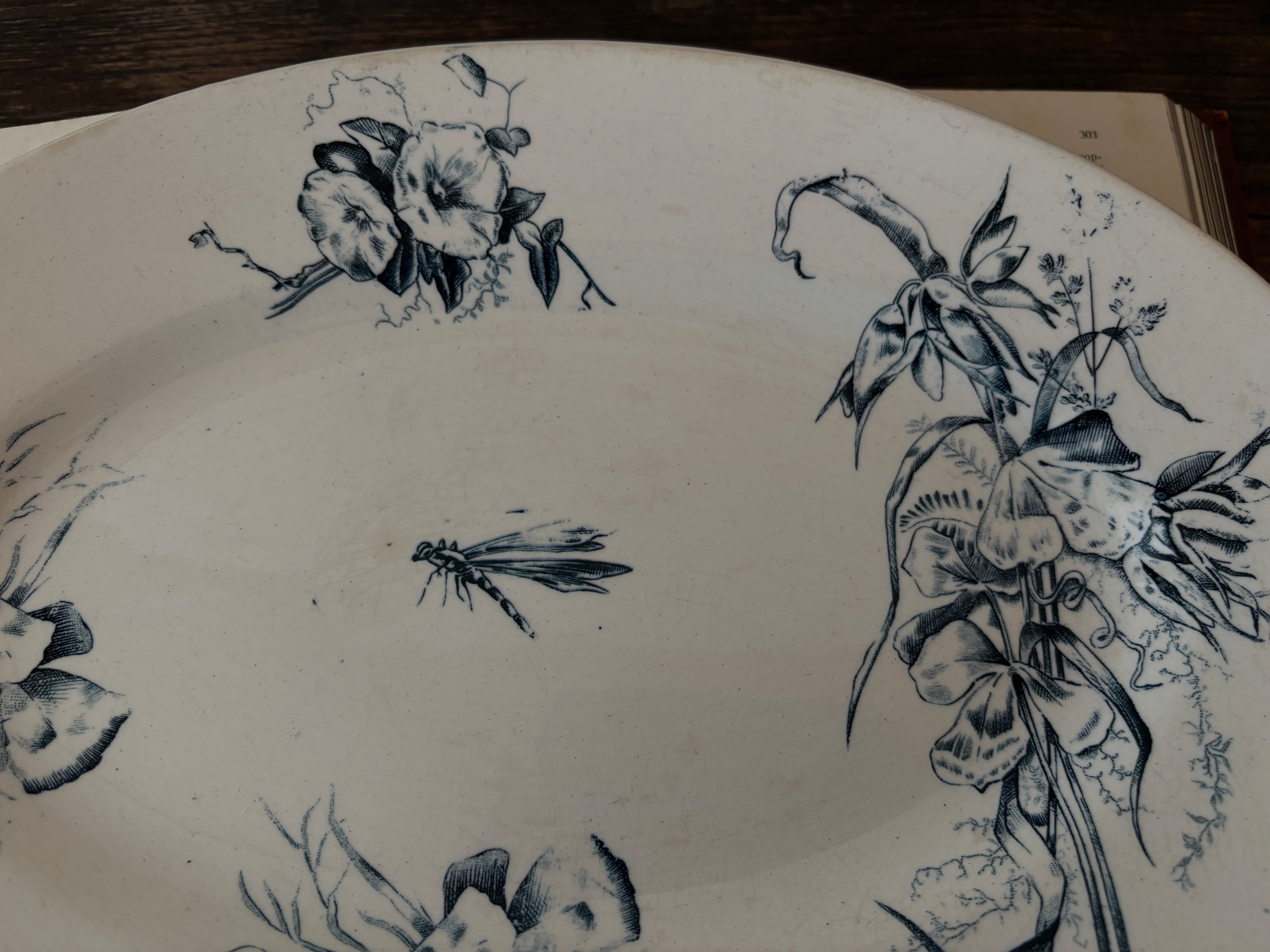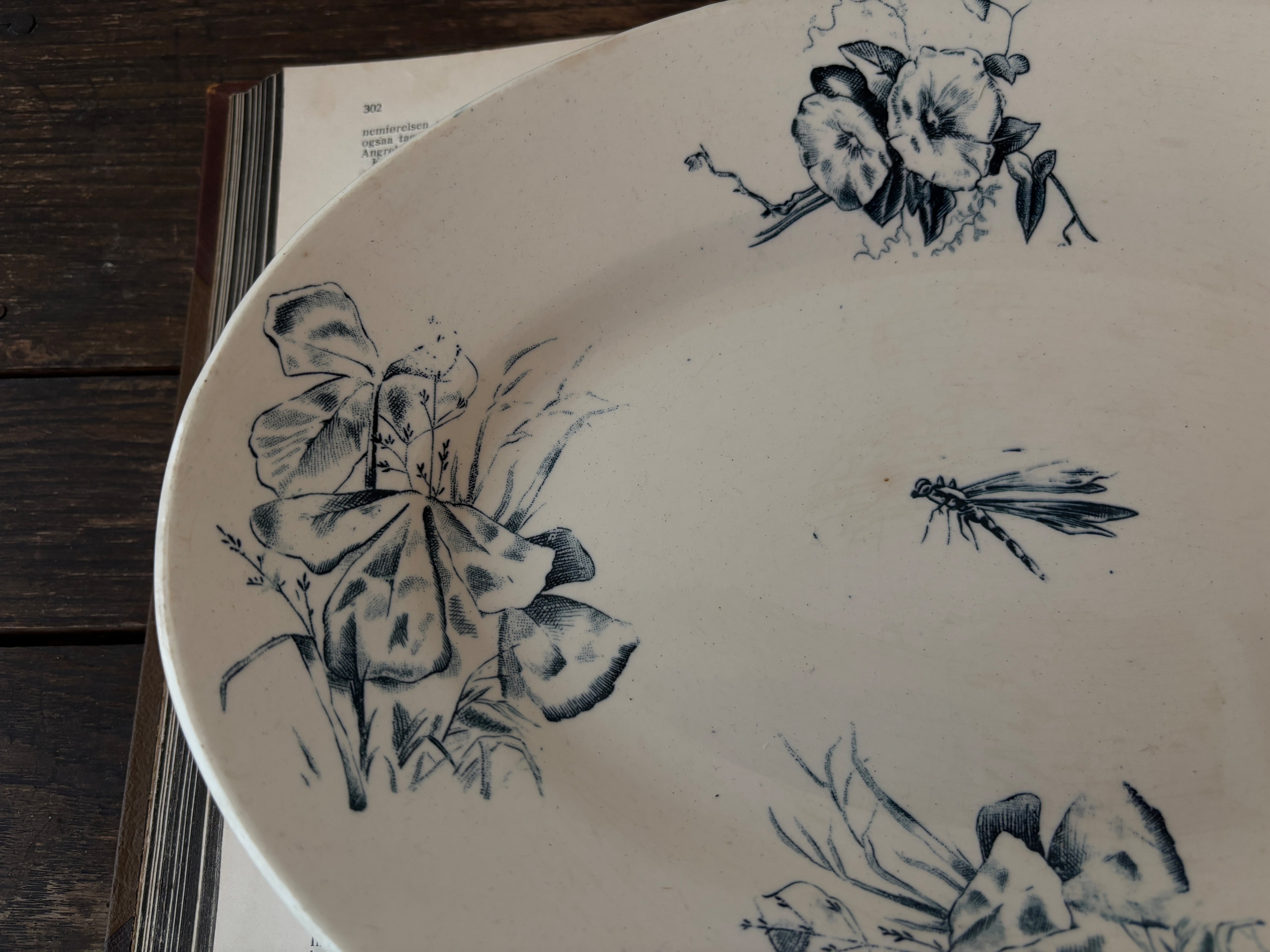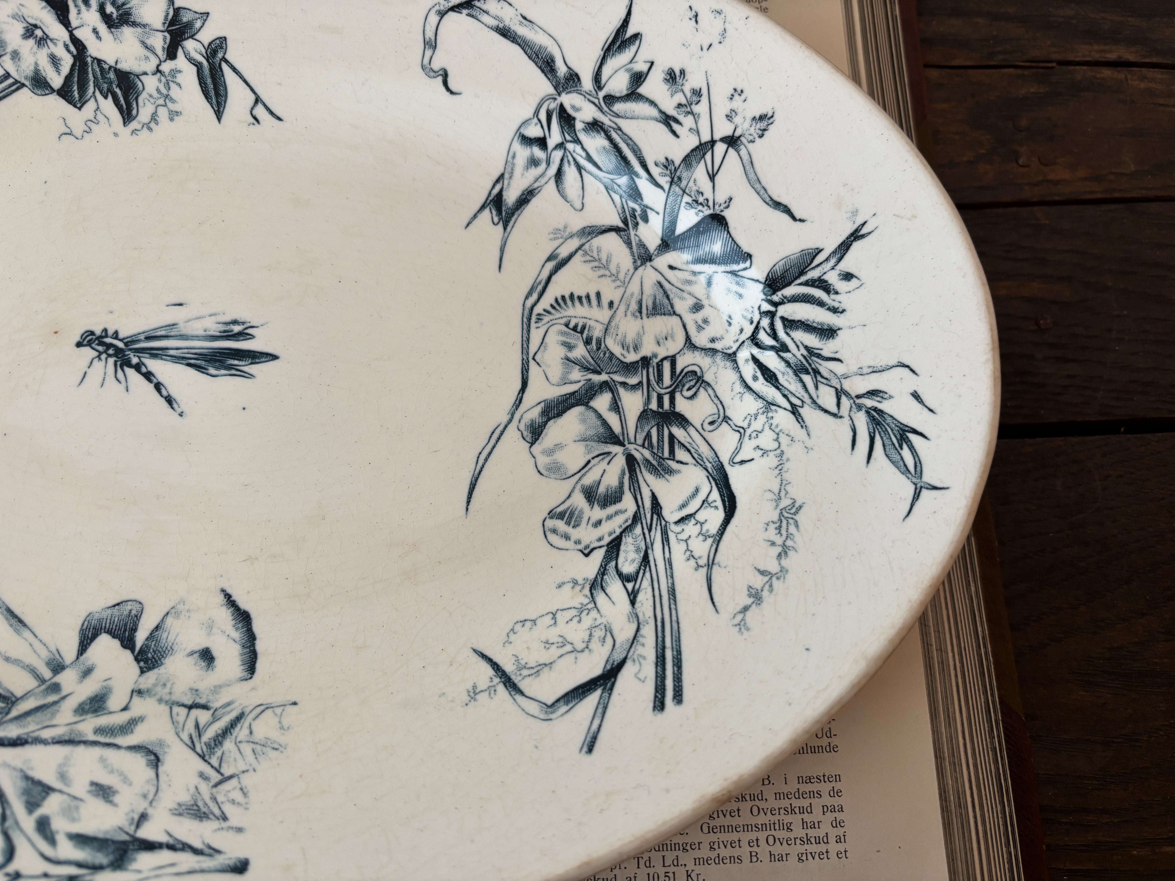 【1点のみ】美品 フランスアンティークオーバルプレート トンボとブーケ柄