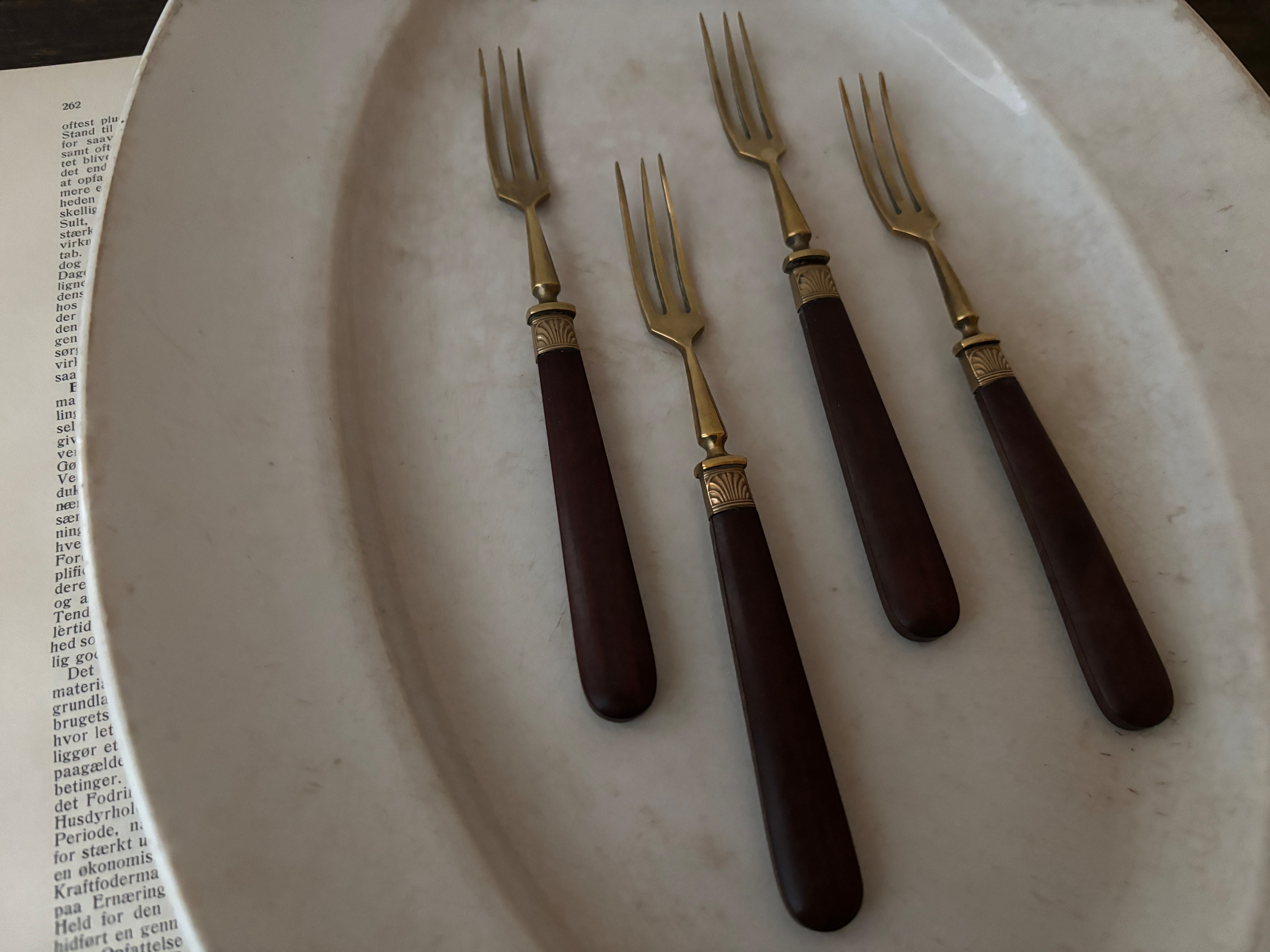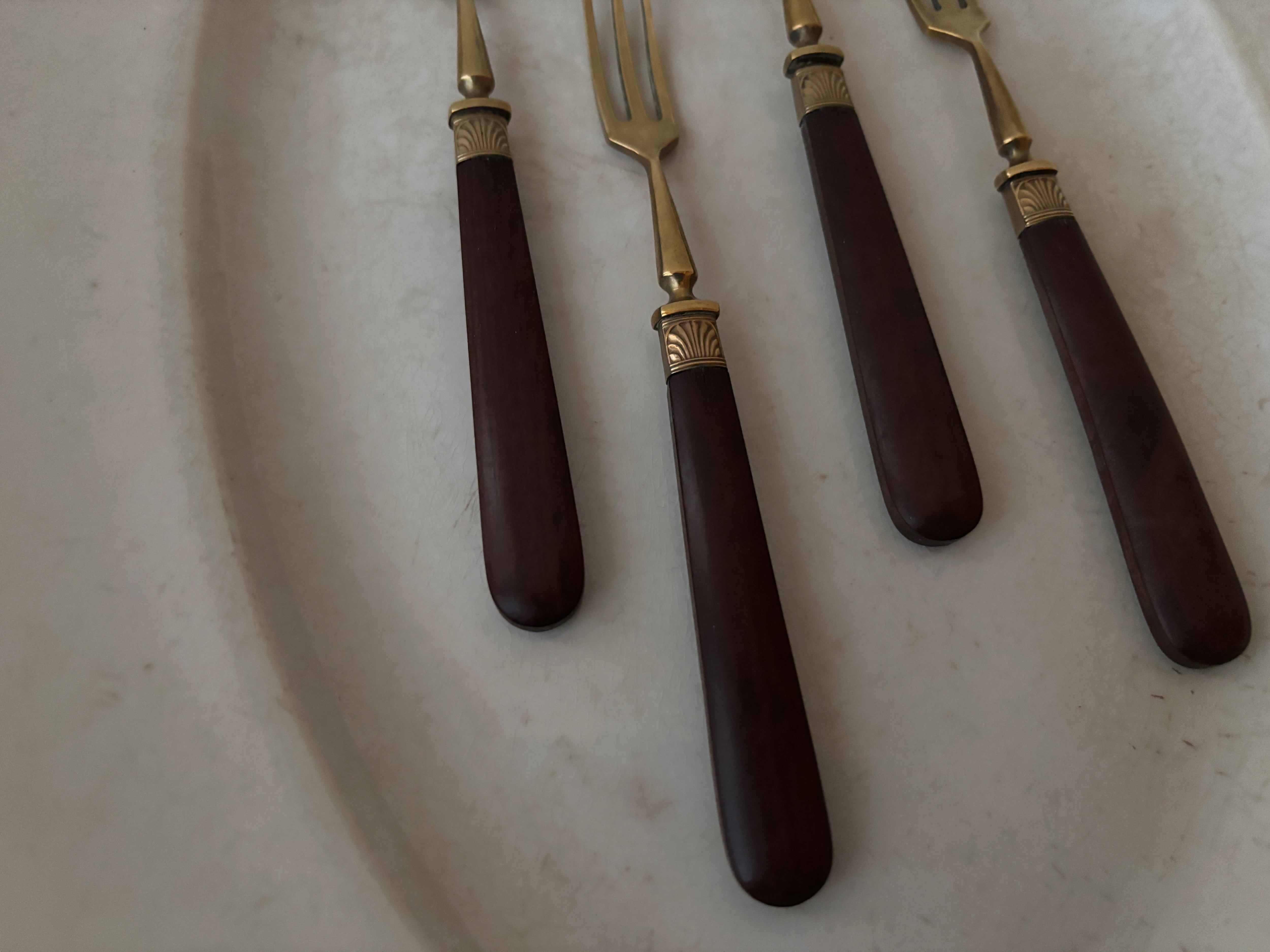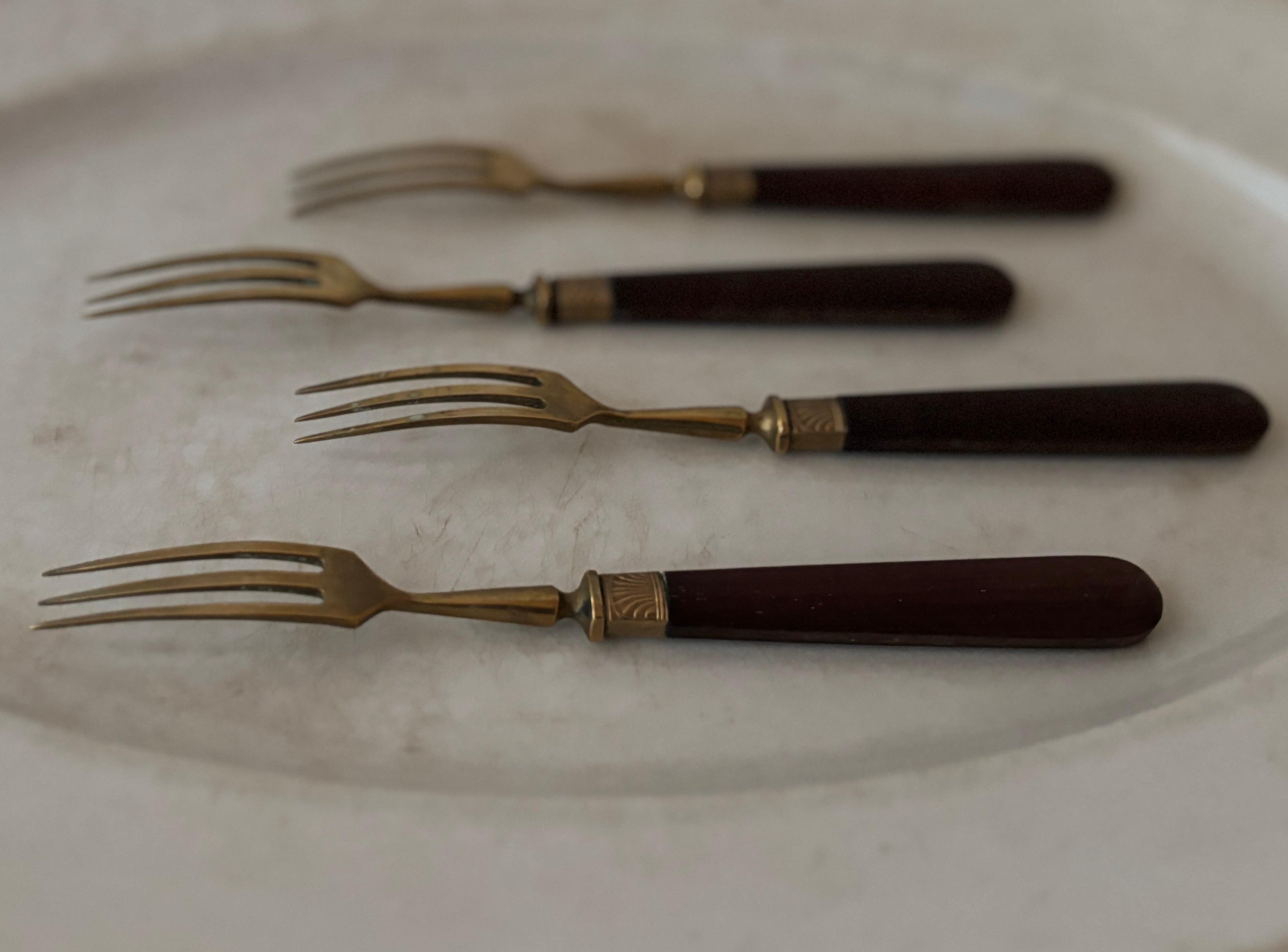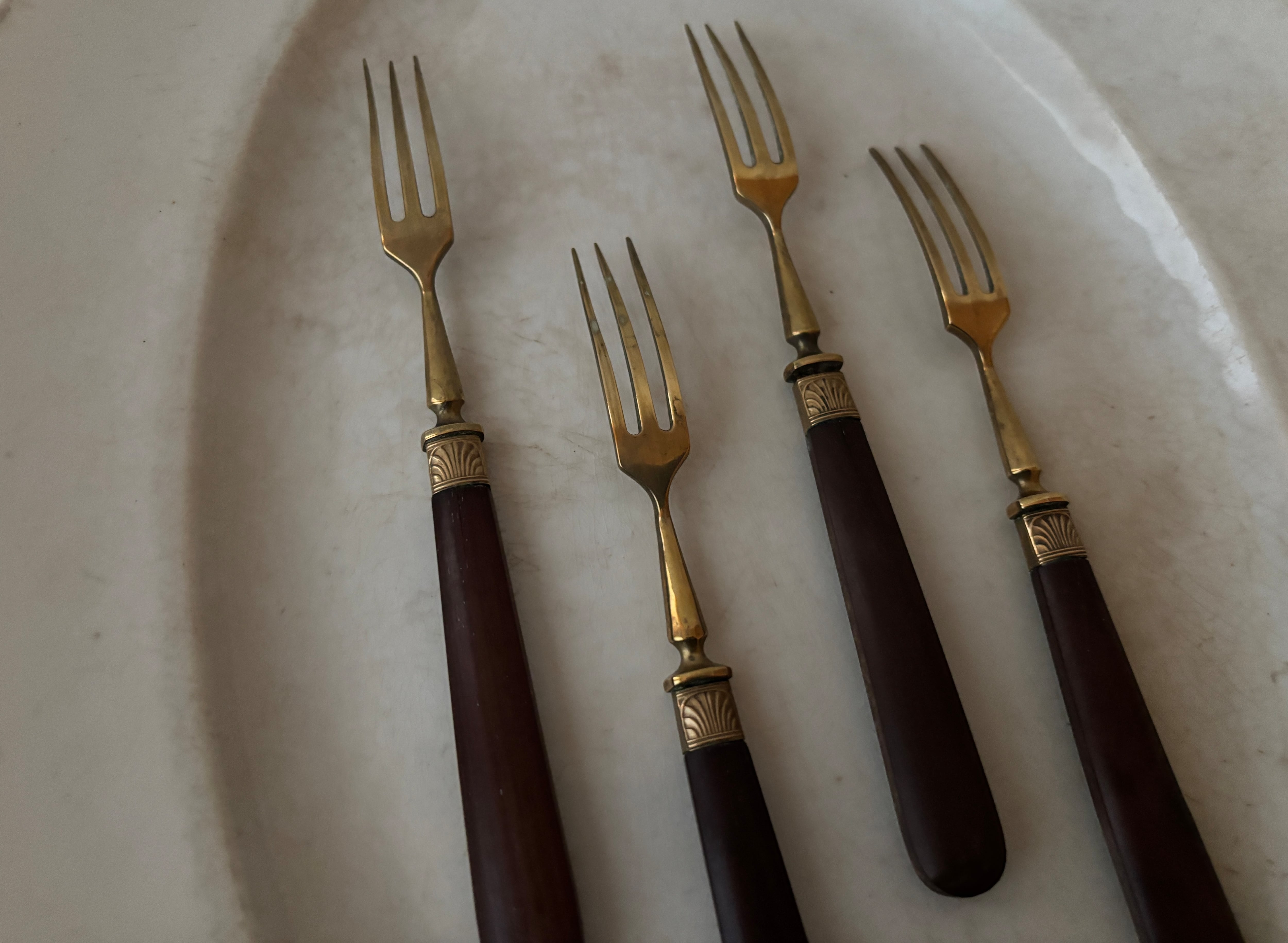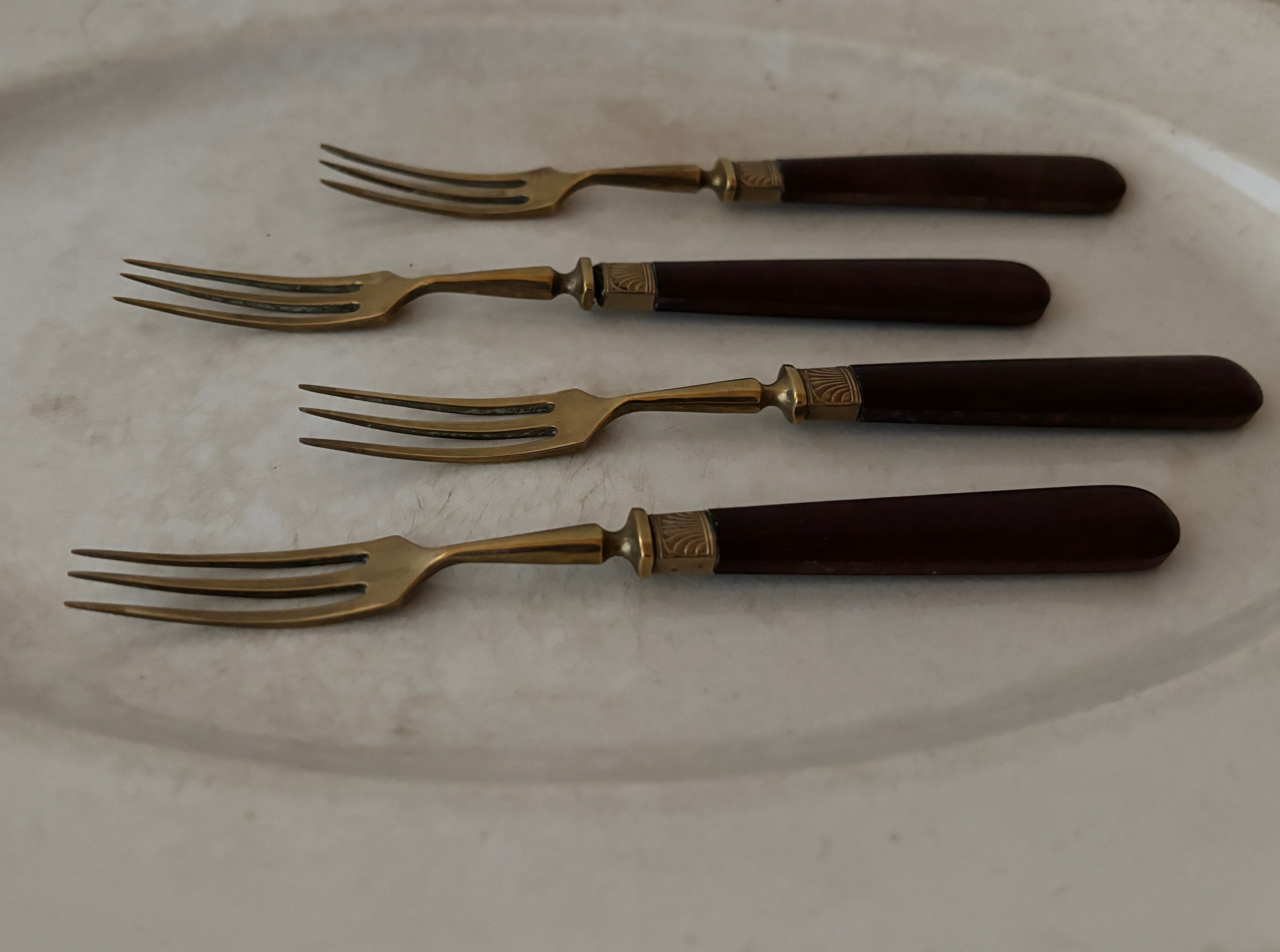 【1本価格】フランスアンティーク 真鍮と木製ハンドルのデザートフォーク