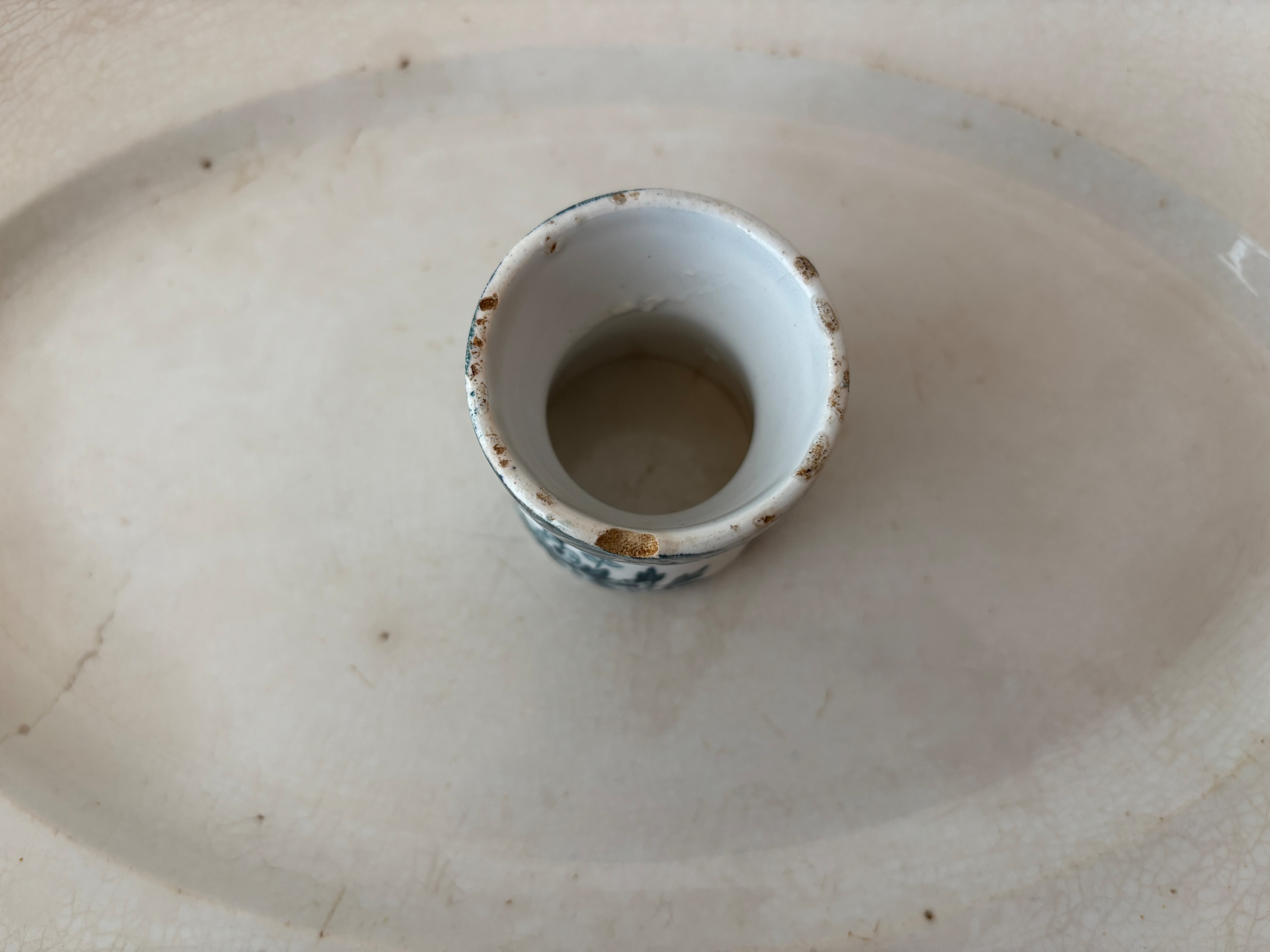 0.5㎝ほどの小さなチップと内側の一部に色滲み有り。その他コンディション良好です。