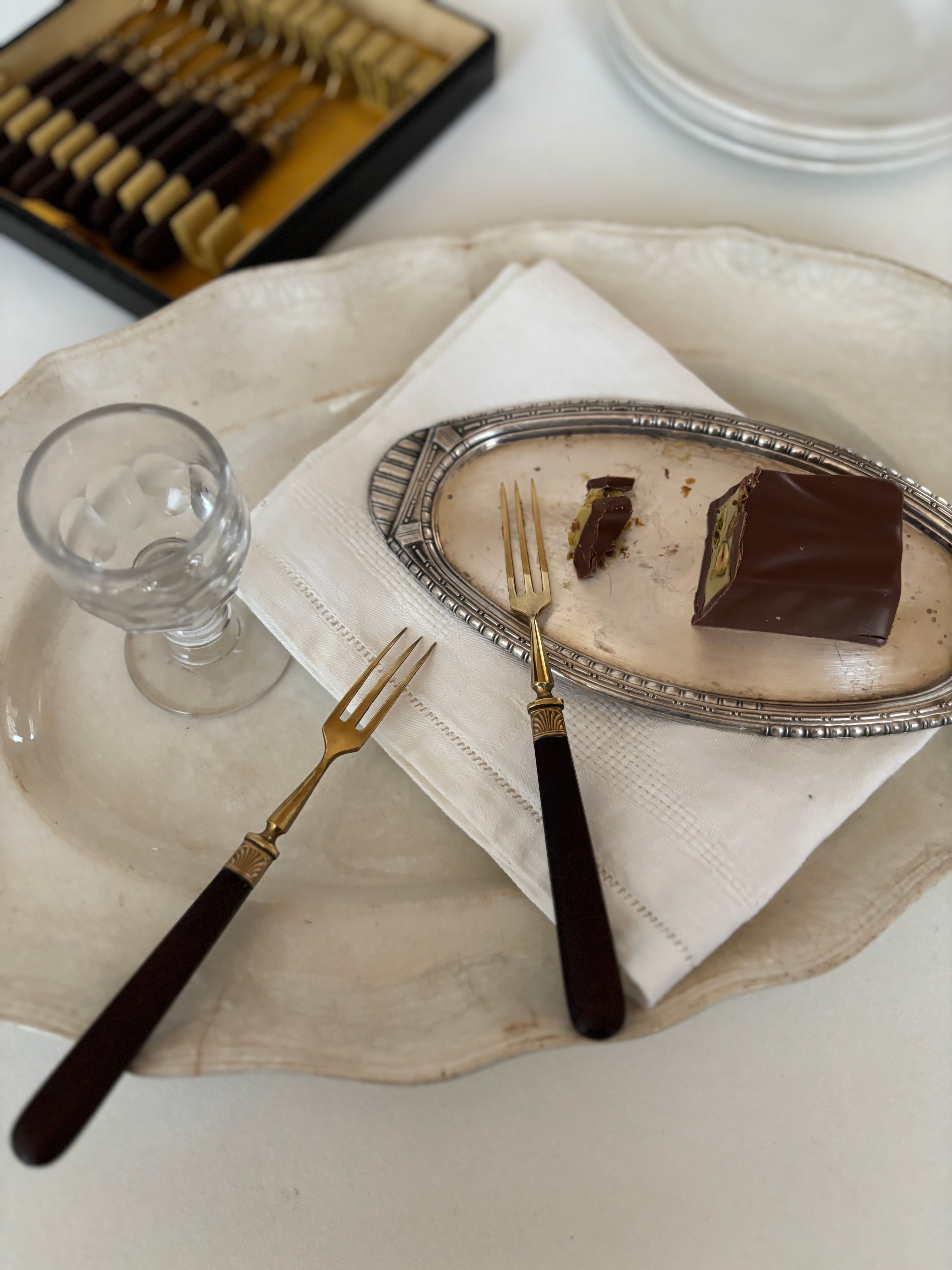 フランスから届いた、真鍮×木製ハンドルのデザートフォーク。