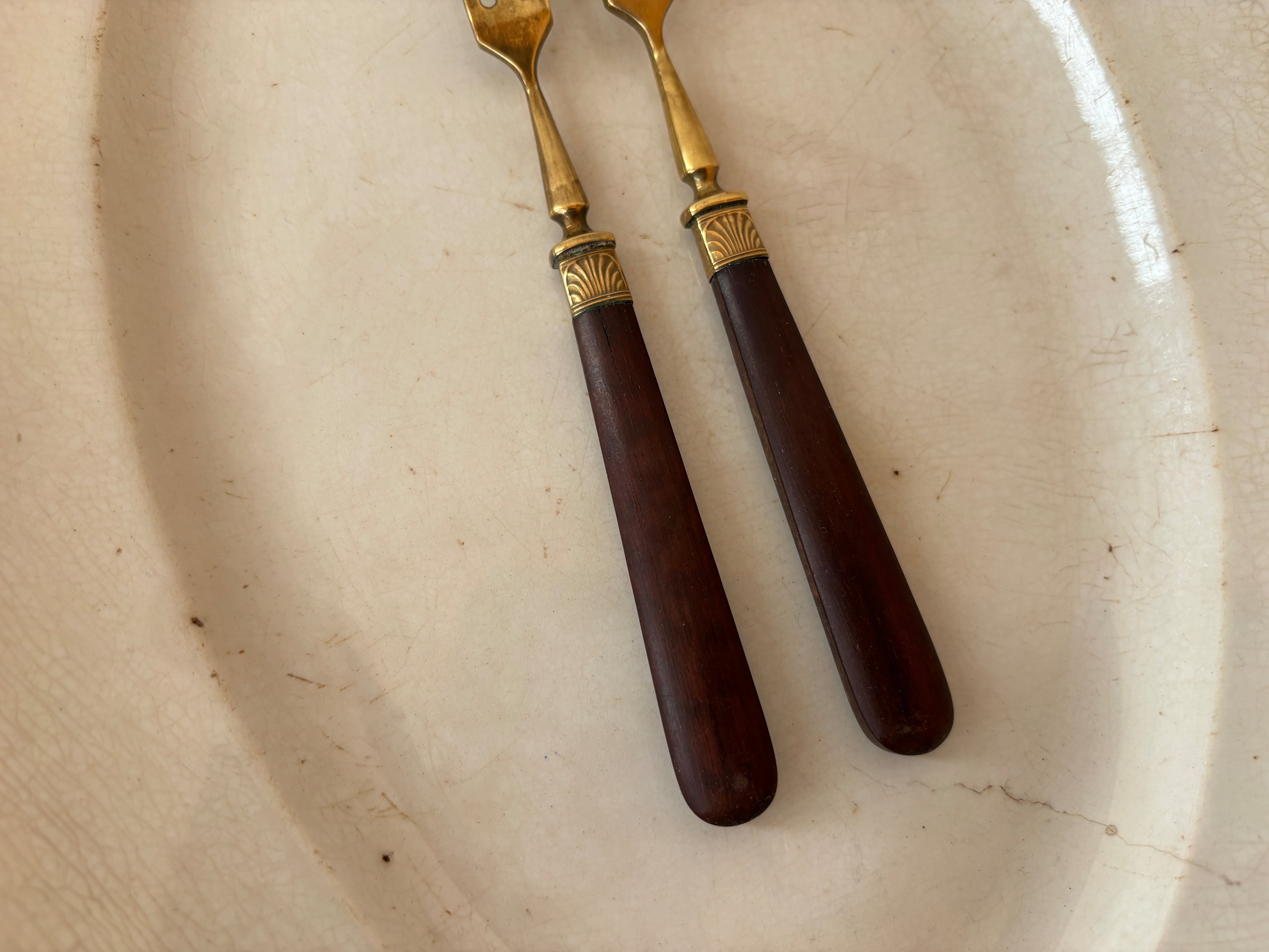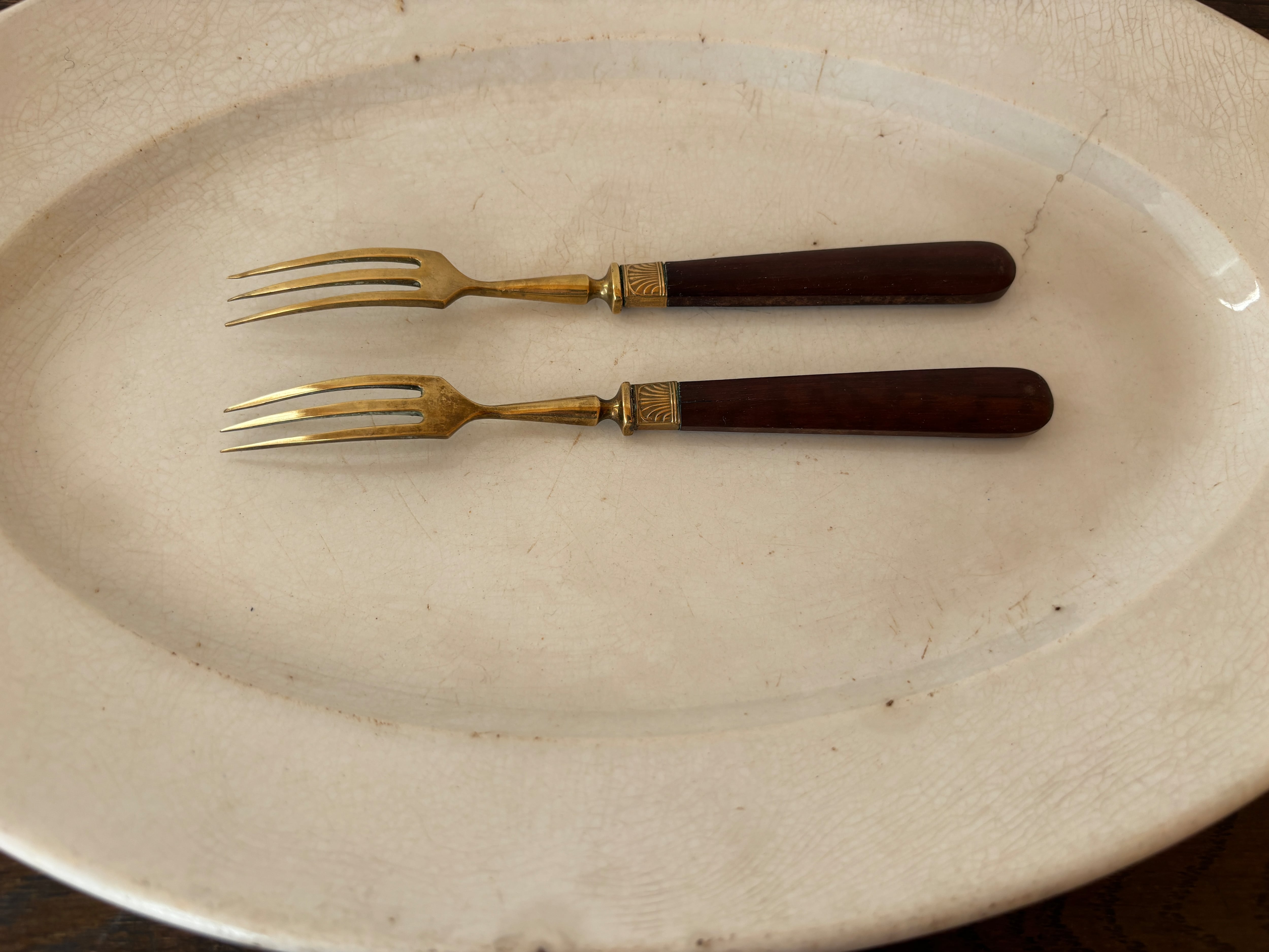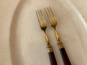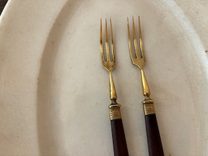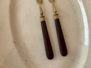 【2本set価格】フランスアンティーク 真鍮と木製ハンドルのデザートフォーク