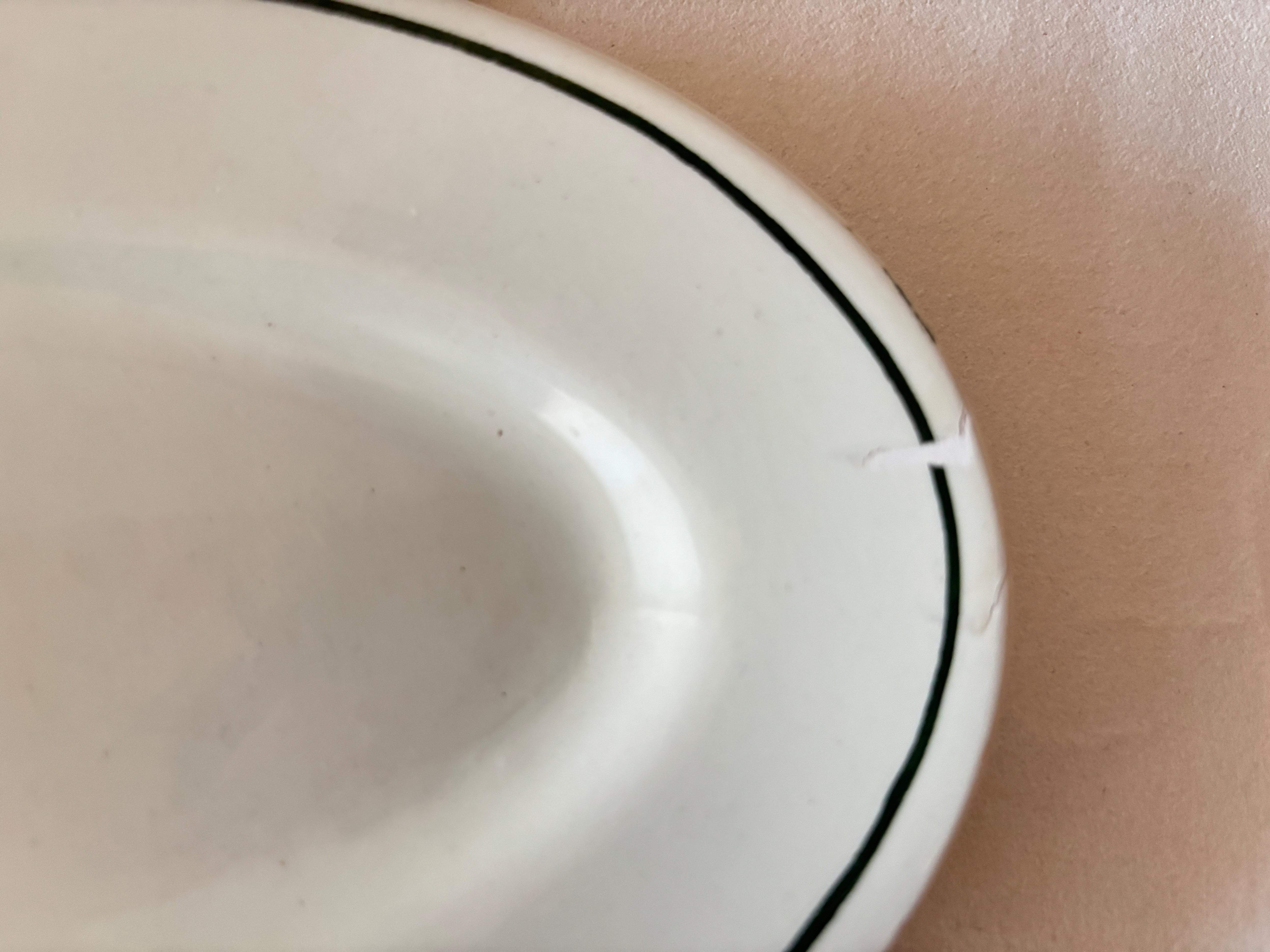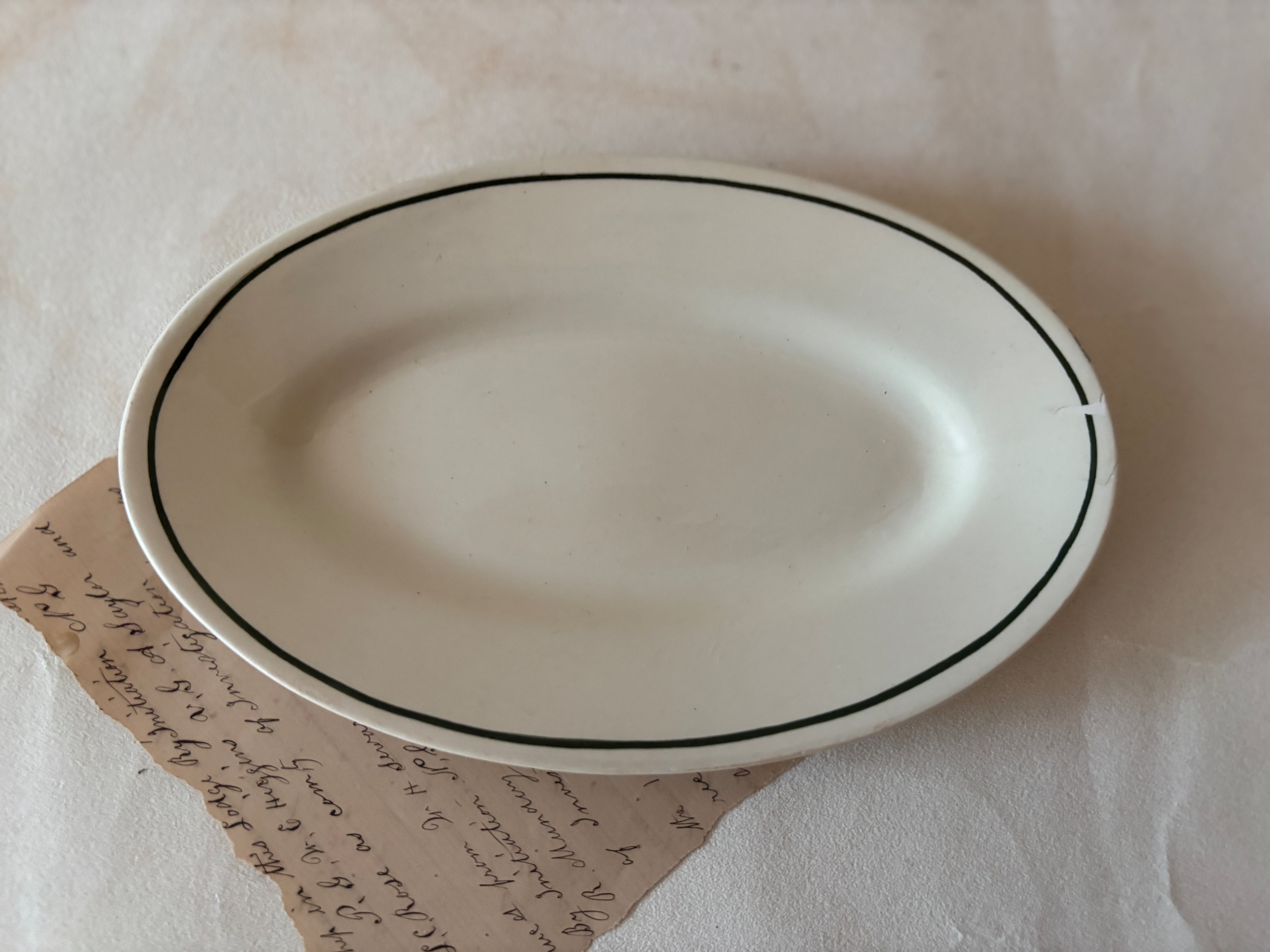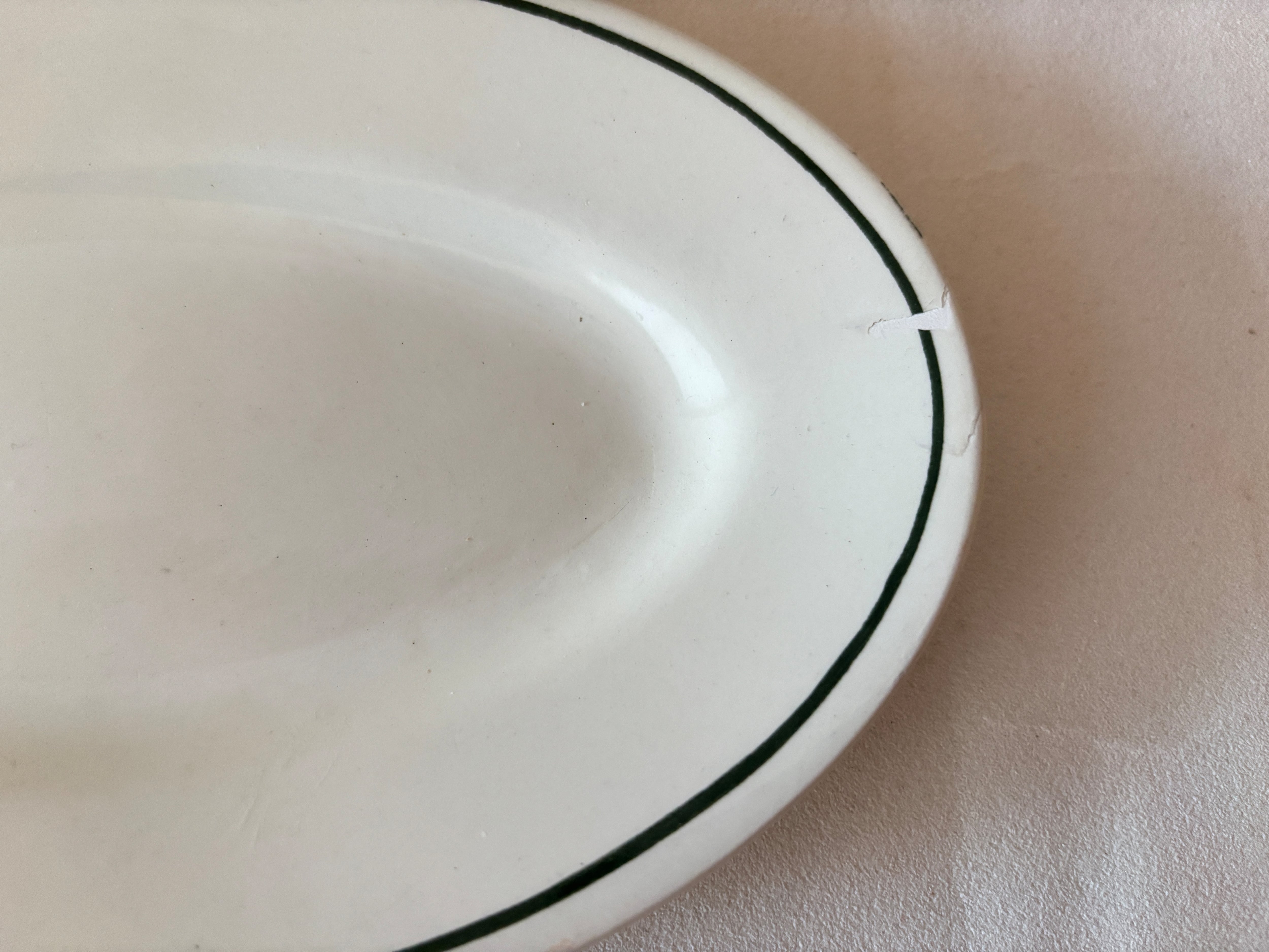 フランスの名窯、クレイユモントロー(HBCM)のアイボリーにグリーンのラインが入った