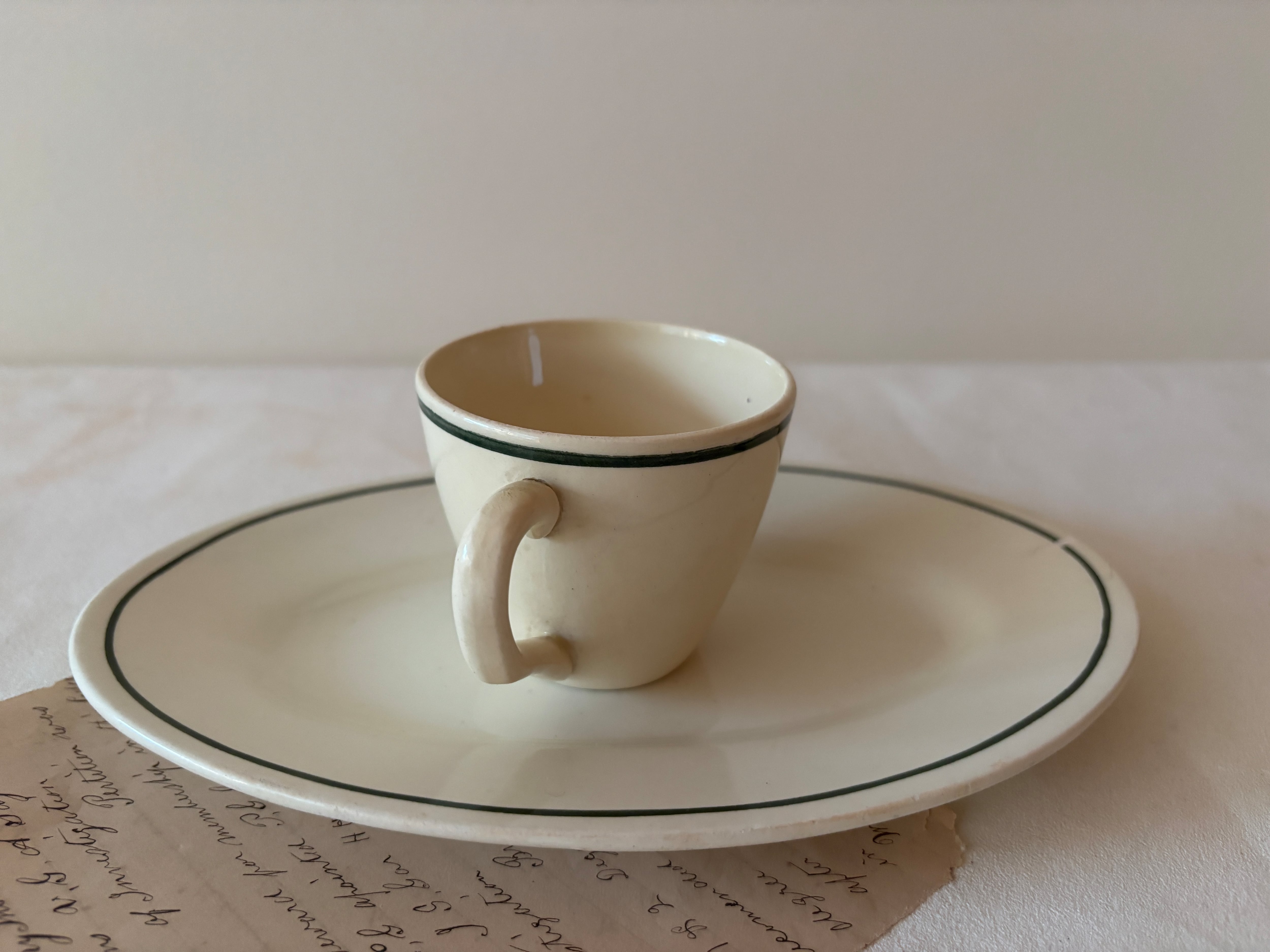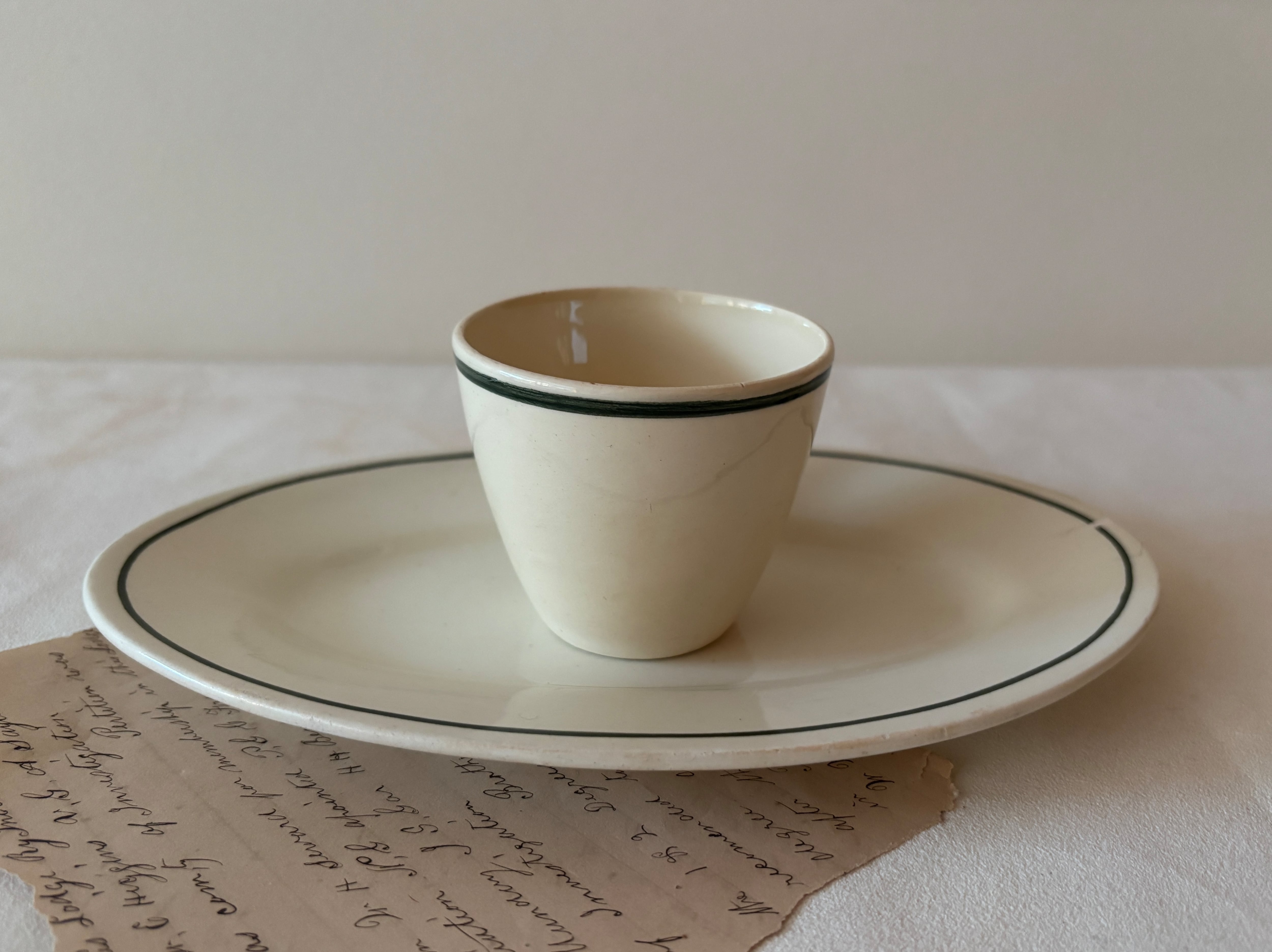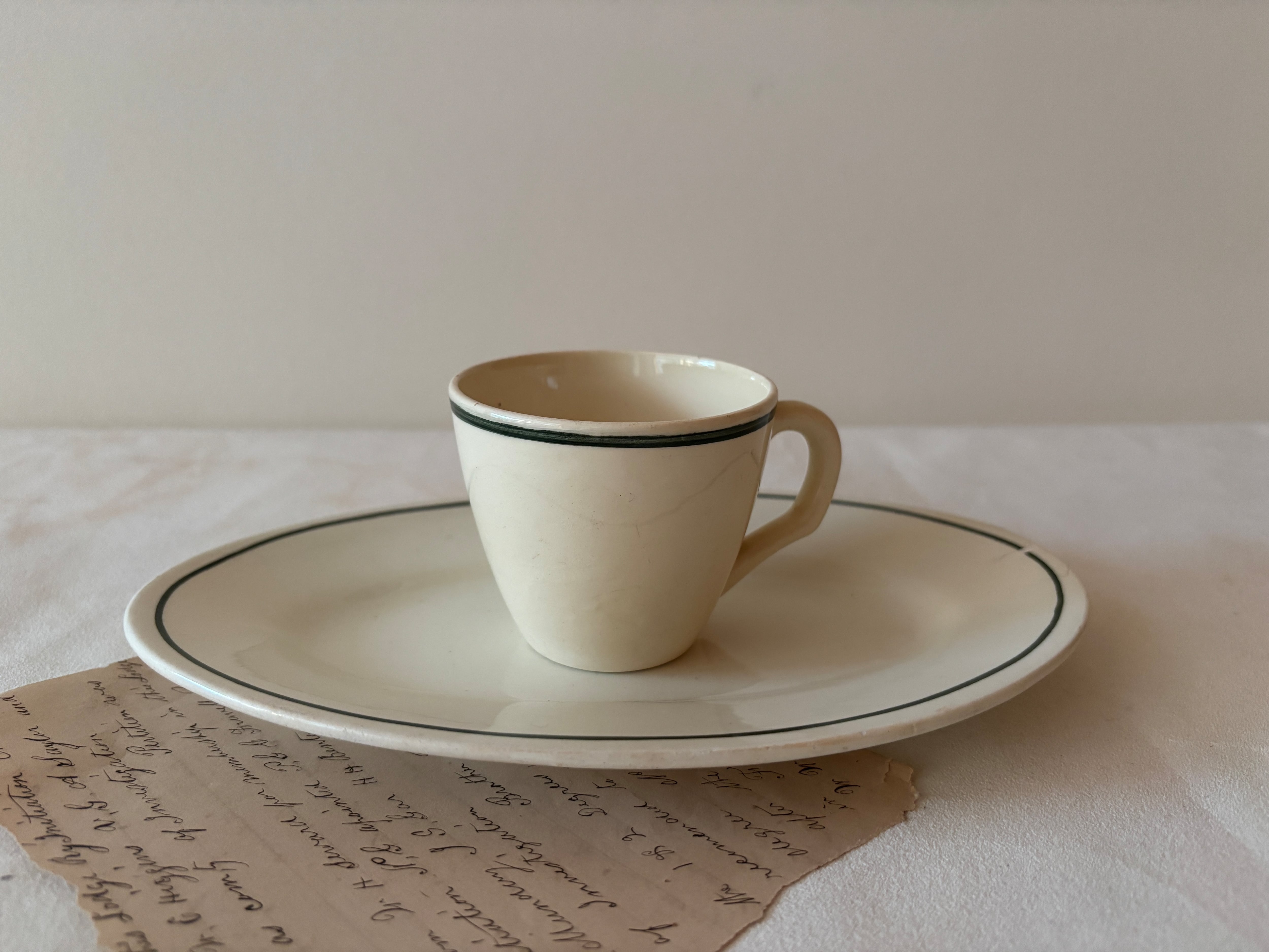 別々の場所で見つけたデミタスカップとラヴィエですが、同じシリーズだからこそ生まれる、どこか凛とした一体感が魅力です。