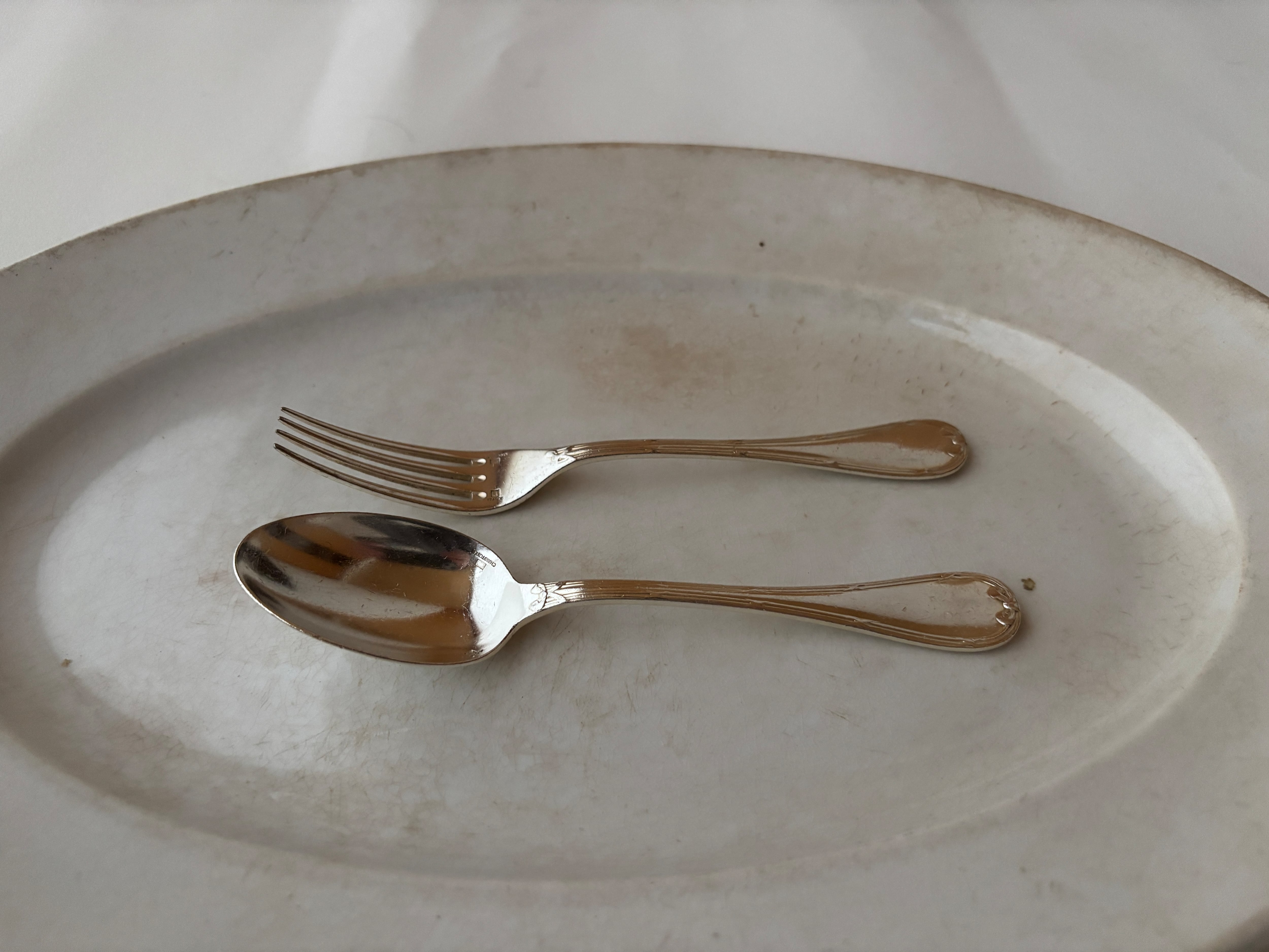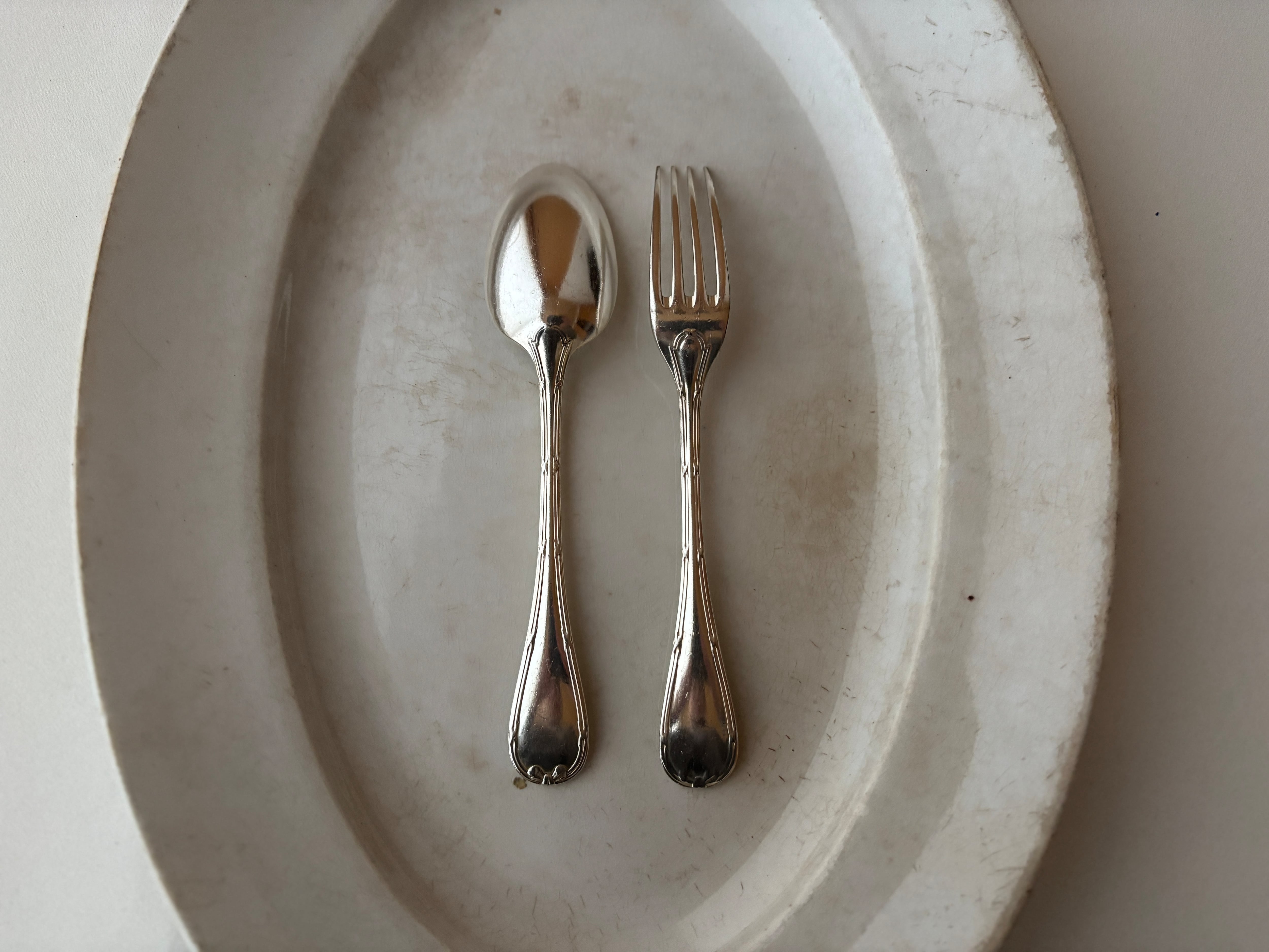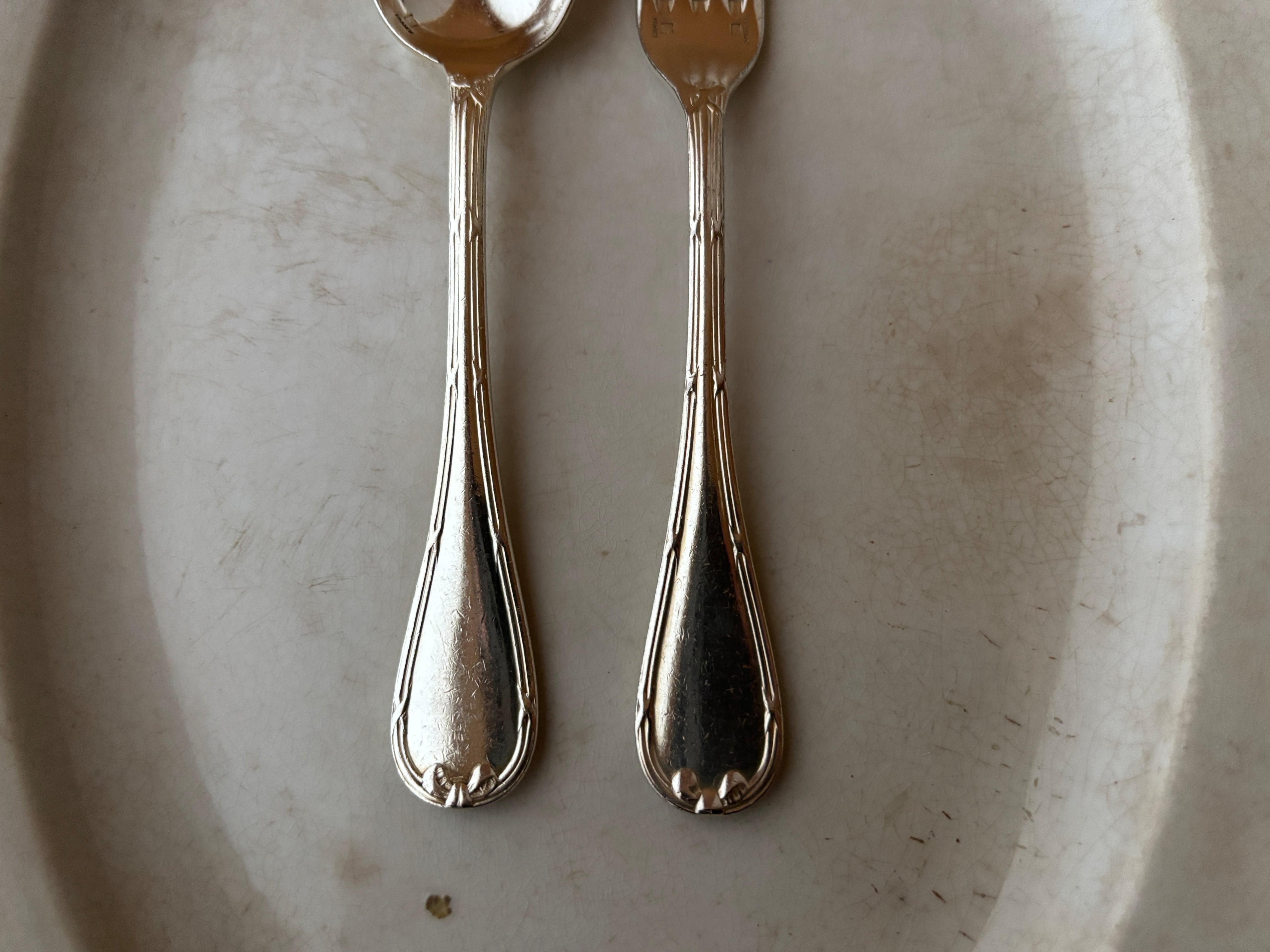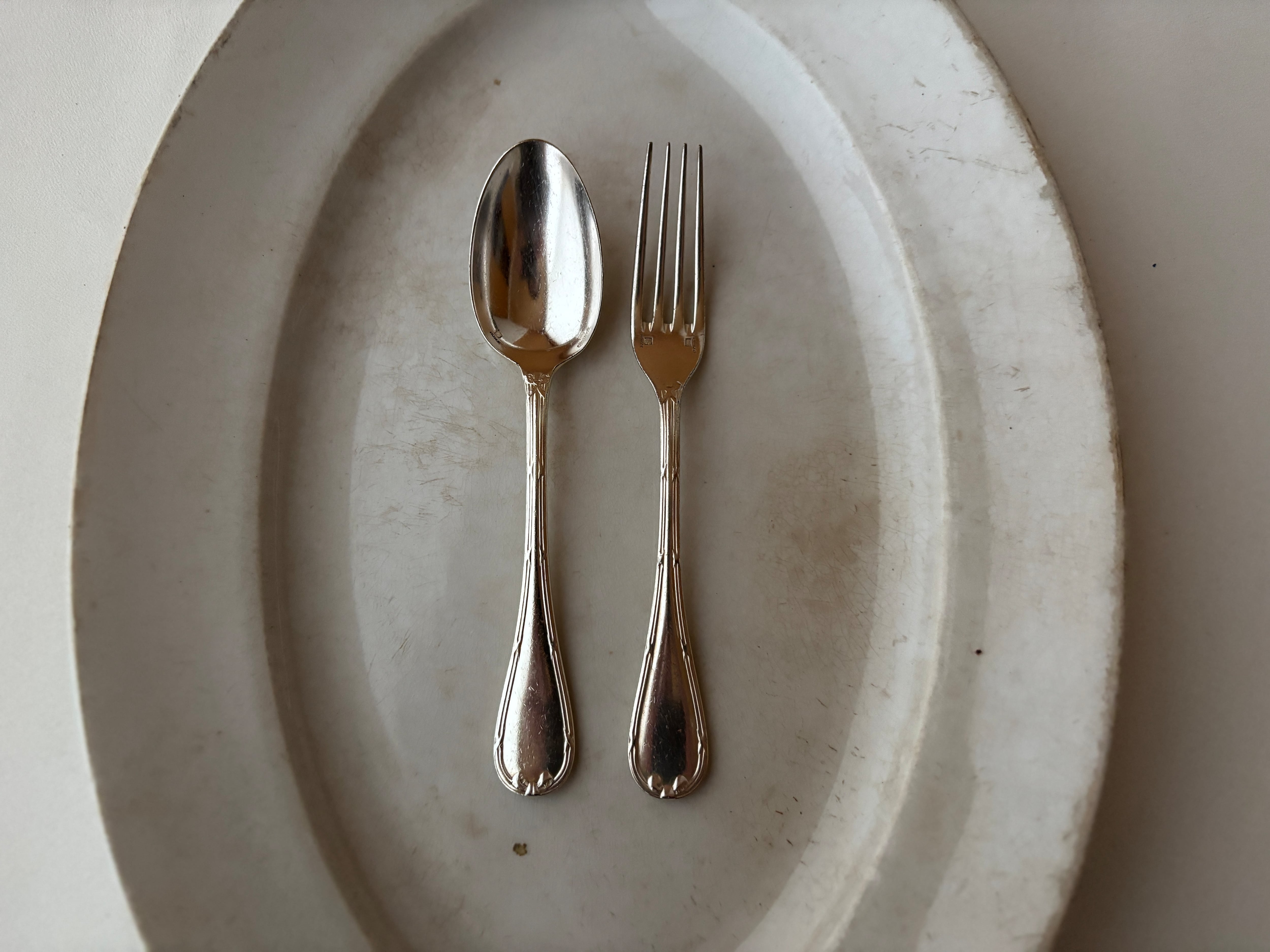 高級銀食器メーカー製の日常使いにぴったりのフォーク&スプーン、デザートスプーンの3本セットがフランスから届きました。