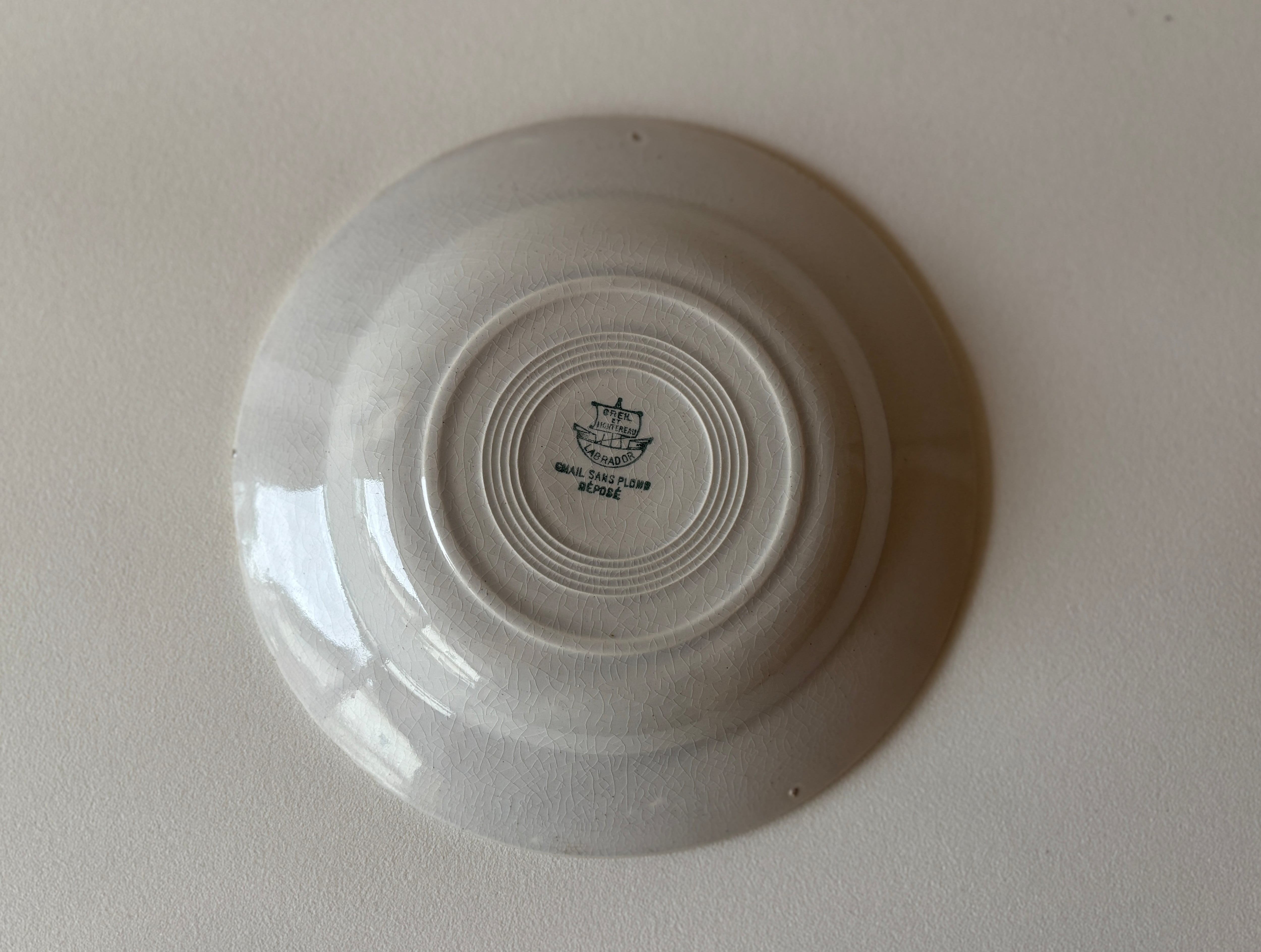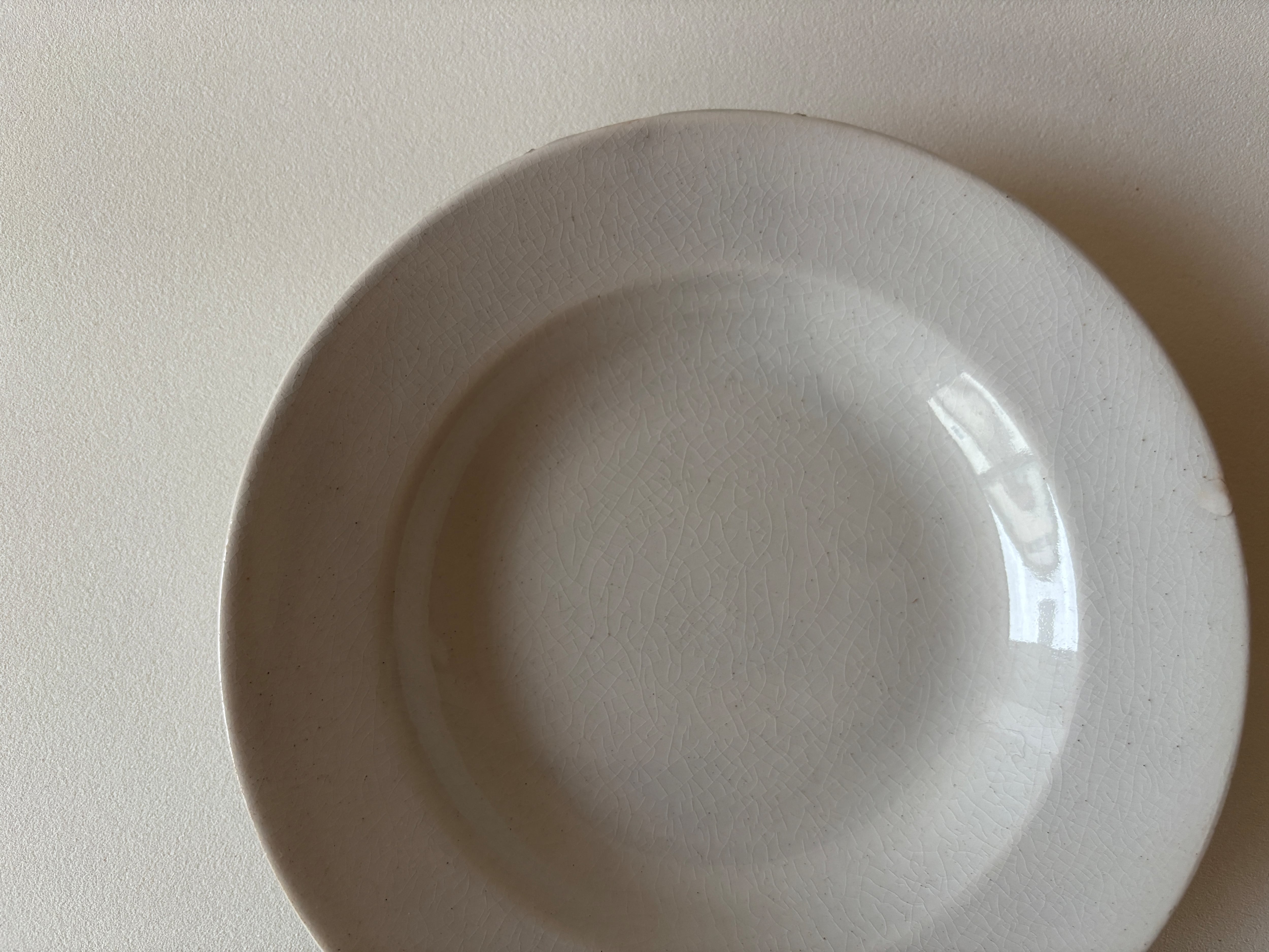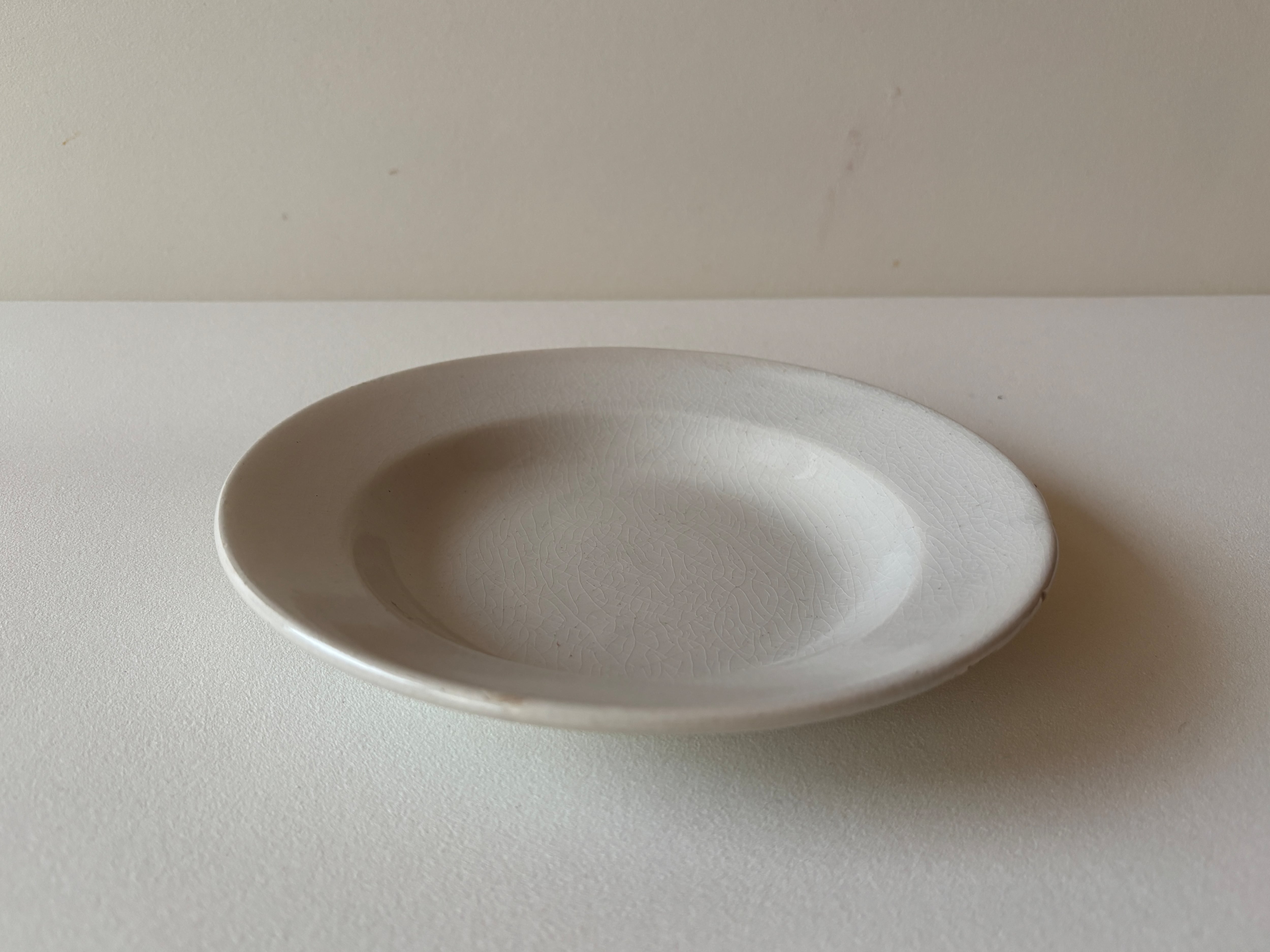 名窯、クレイユモントローより、経年変化を感じる風合いの白プレート(深皿)が届きました。