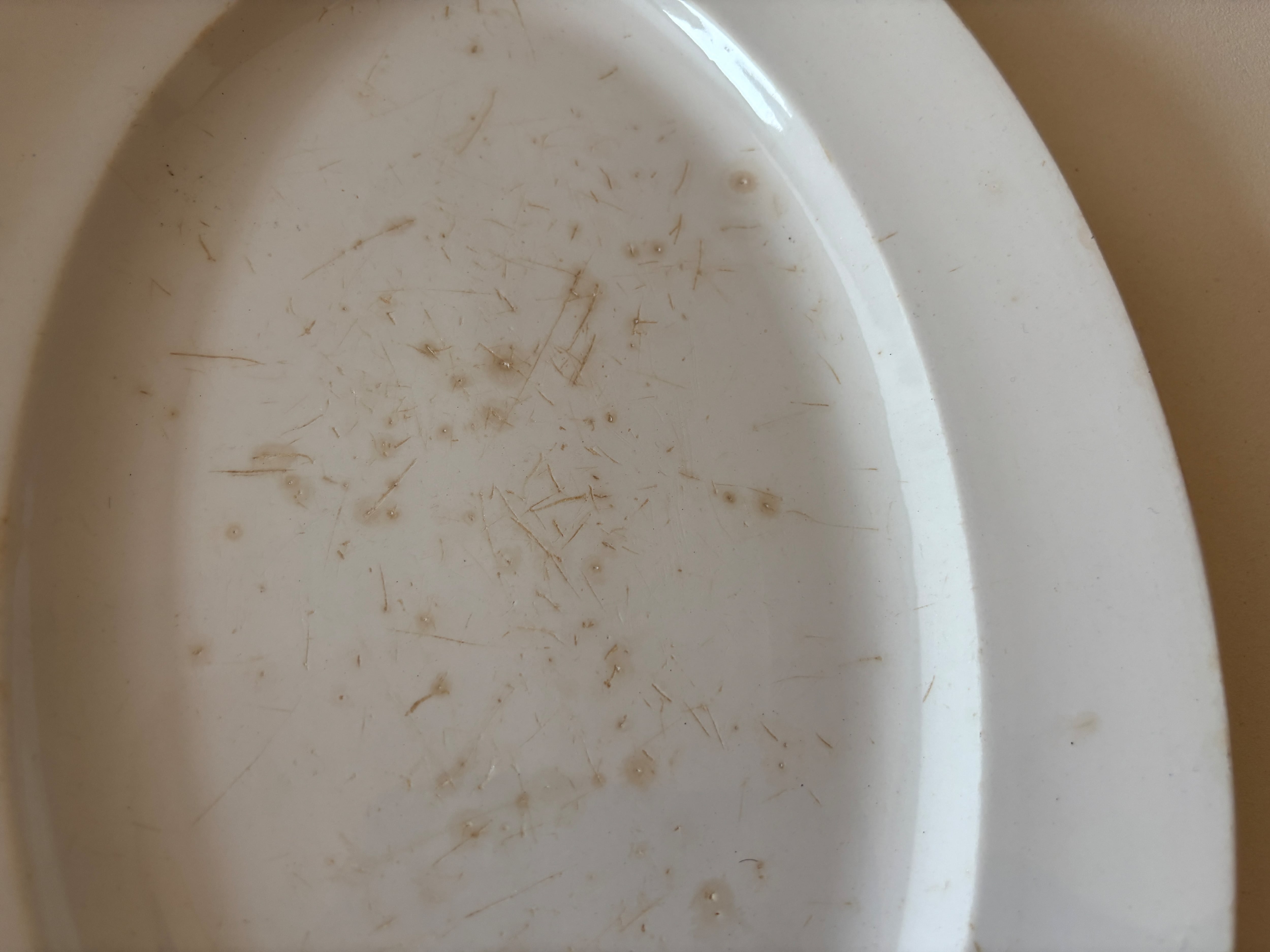 色づきの入ったカトラリー跡が魅力の1点もの。全体的に特筆すべきダメージもなくコンディション良好。