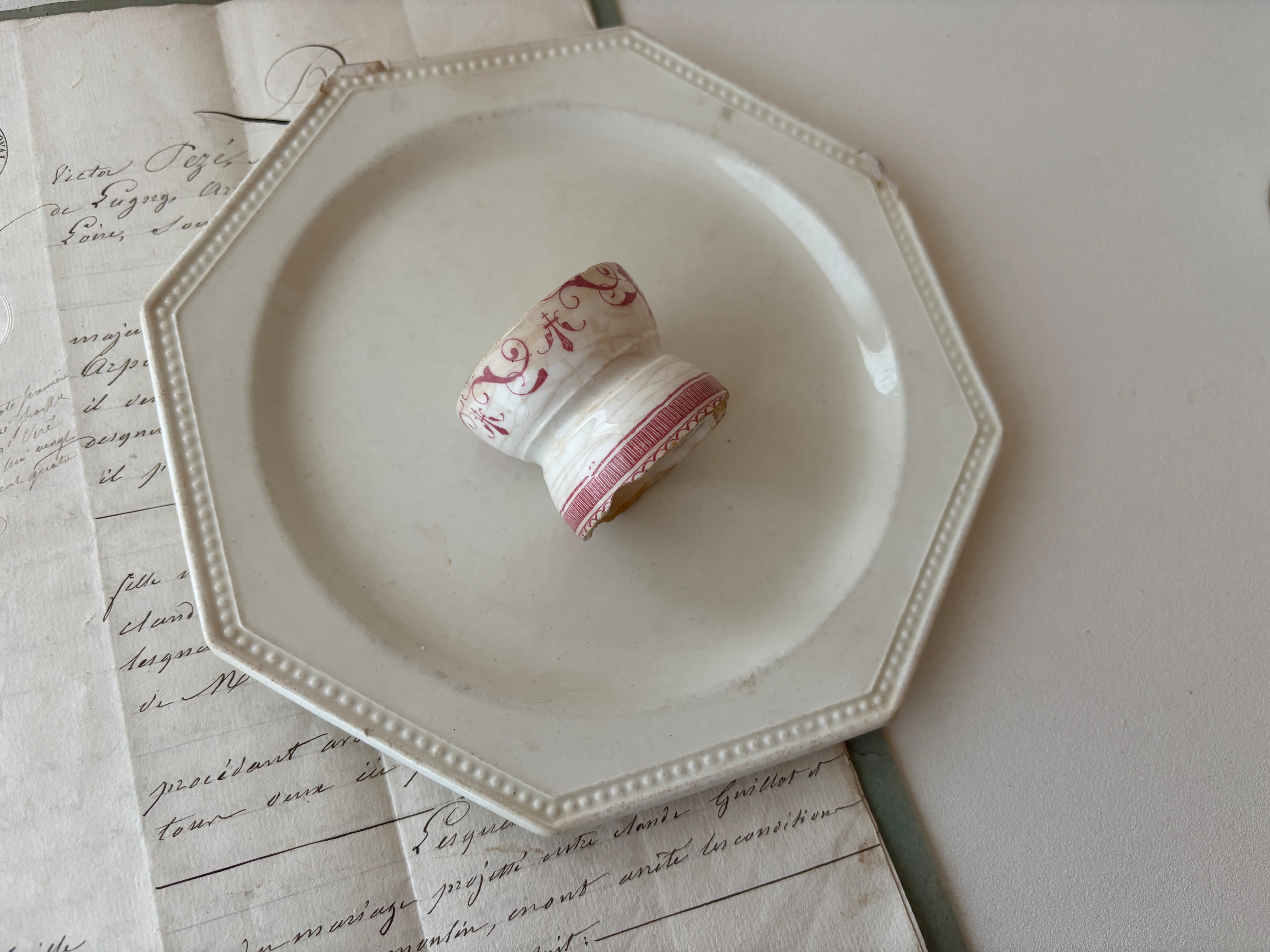 【D】フランスアンティーク コクティエ エッグカップ エッグスタンド 赤(桃色)