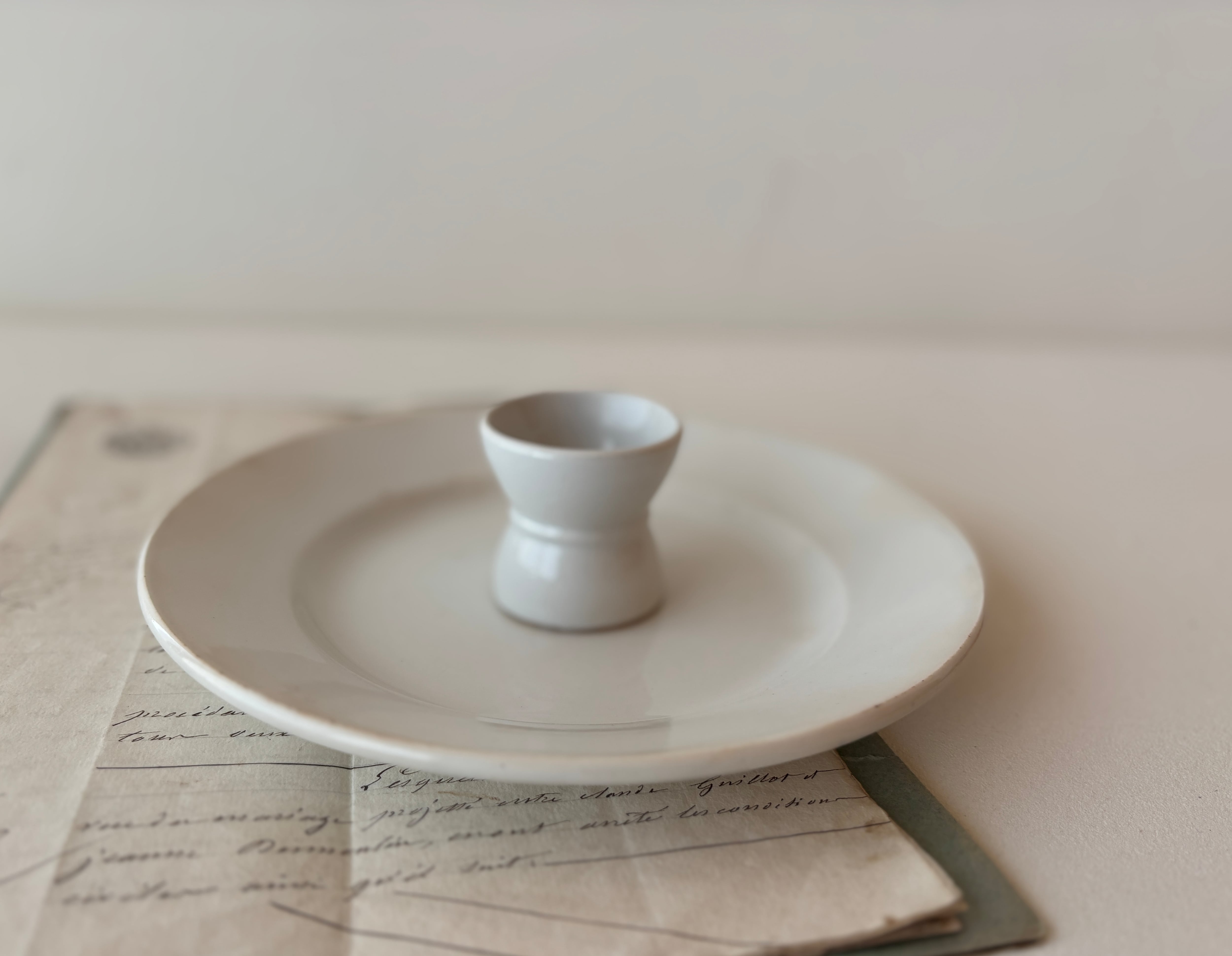 シンプルなフォルムの白のコクティエ(エッグスタンド)がフランスより届きました。