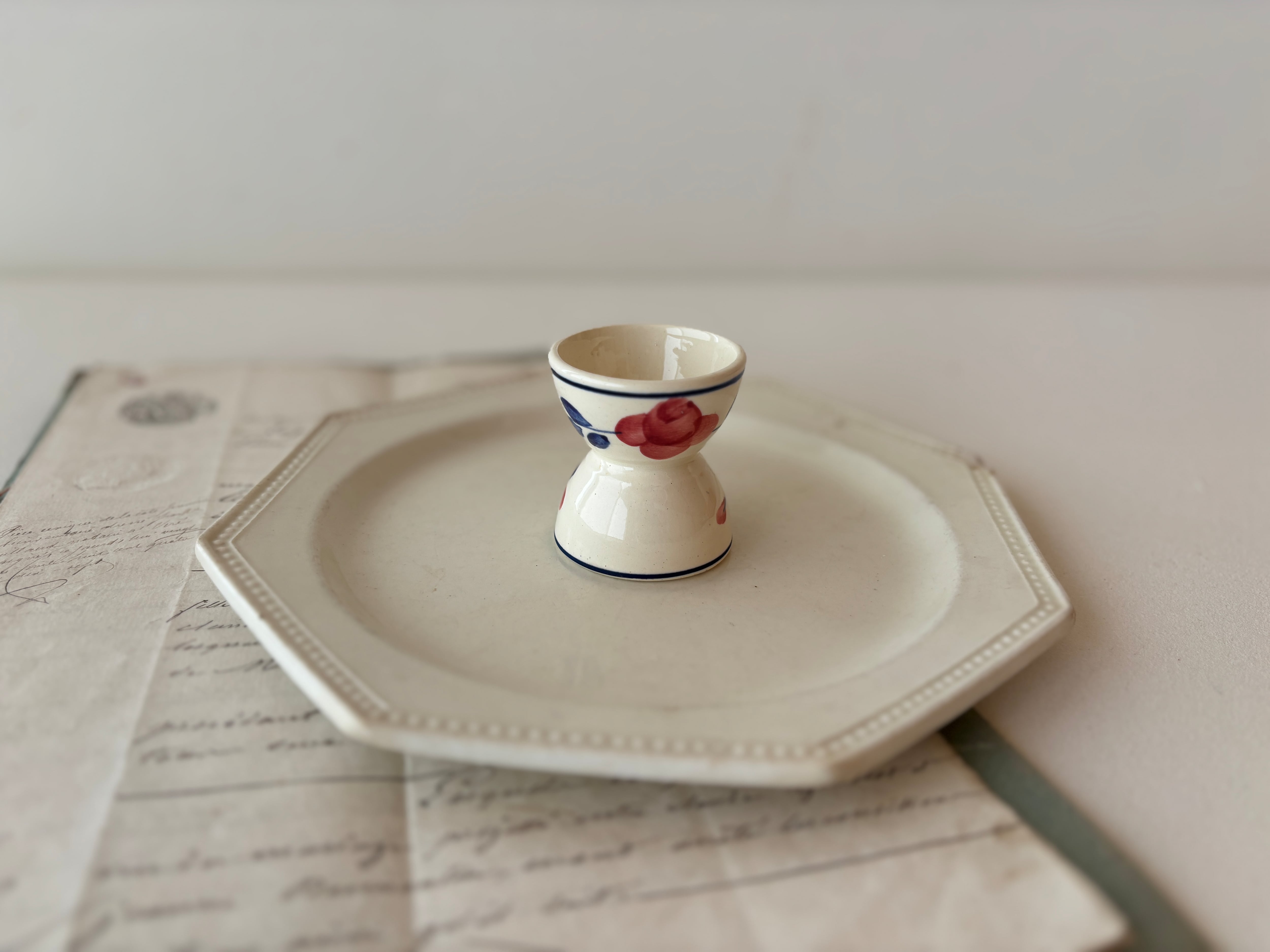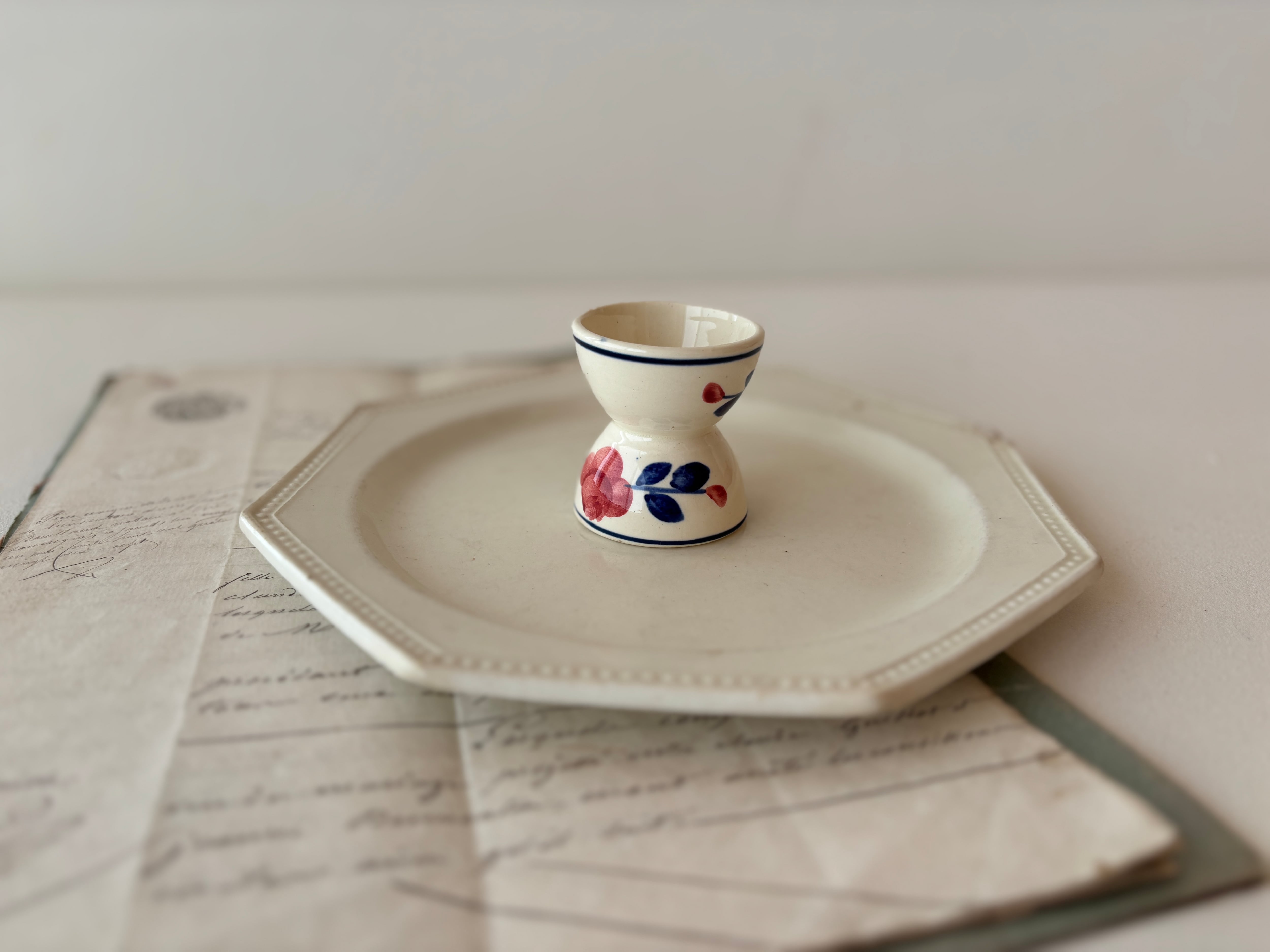 手彩色で描かれた薔薇柄が愛らしいコクティエ(エッグスタンド)がフランスより届きました。