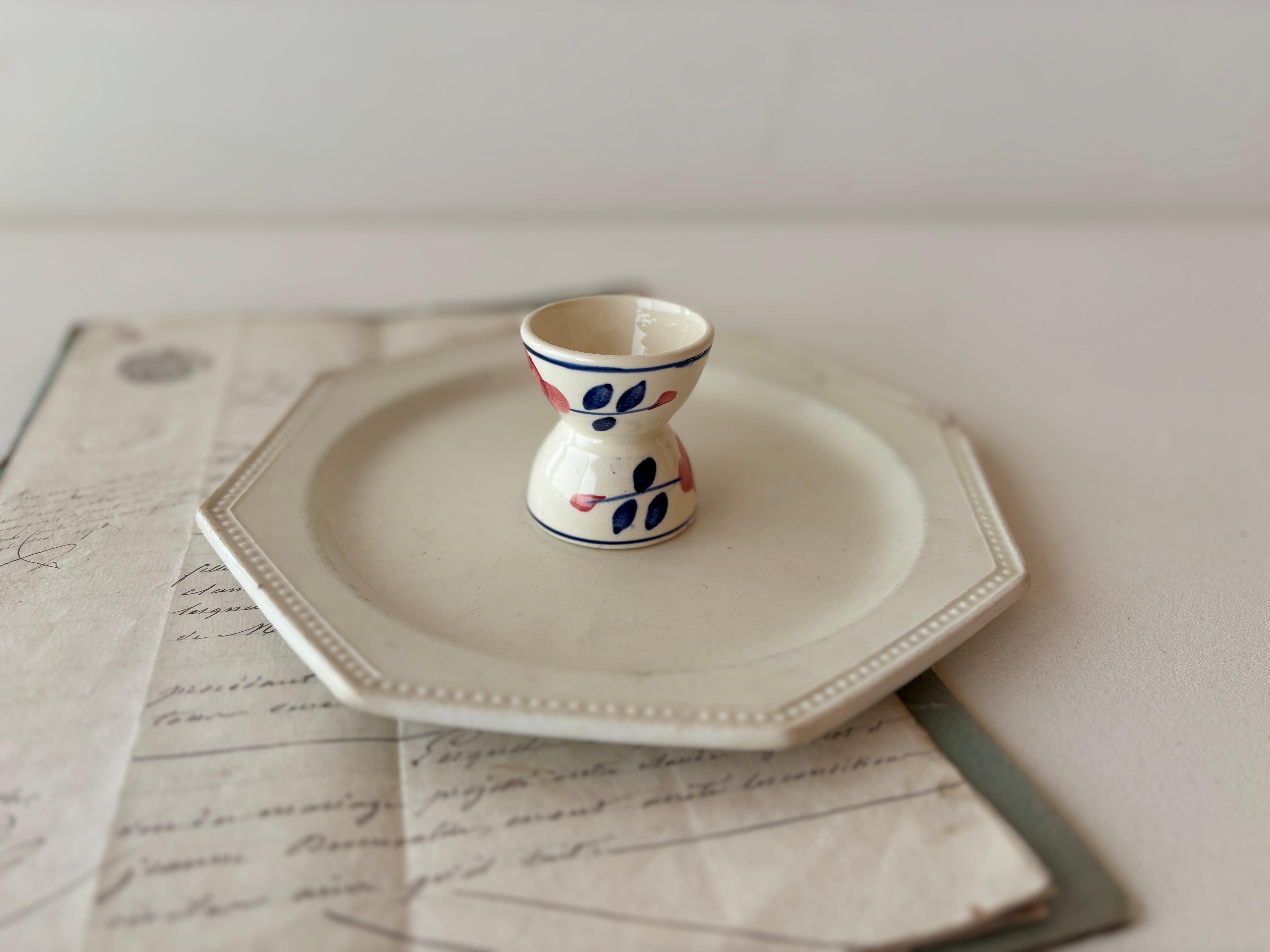 【O】フランスアンティーク コクティエ エッグカップ エッグスタンド 手彩色