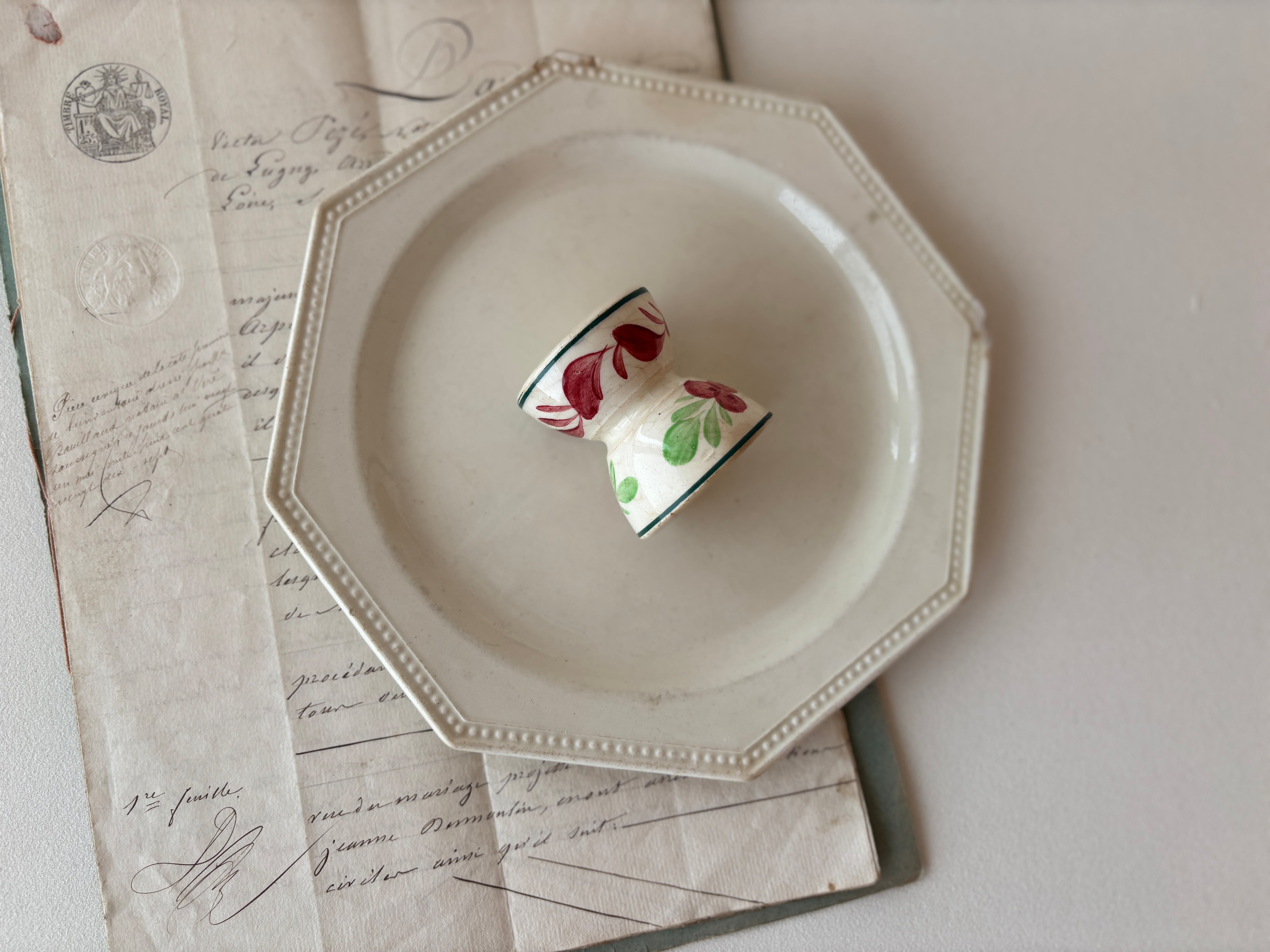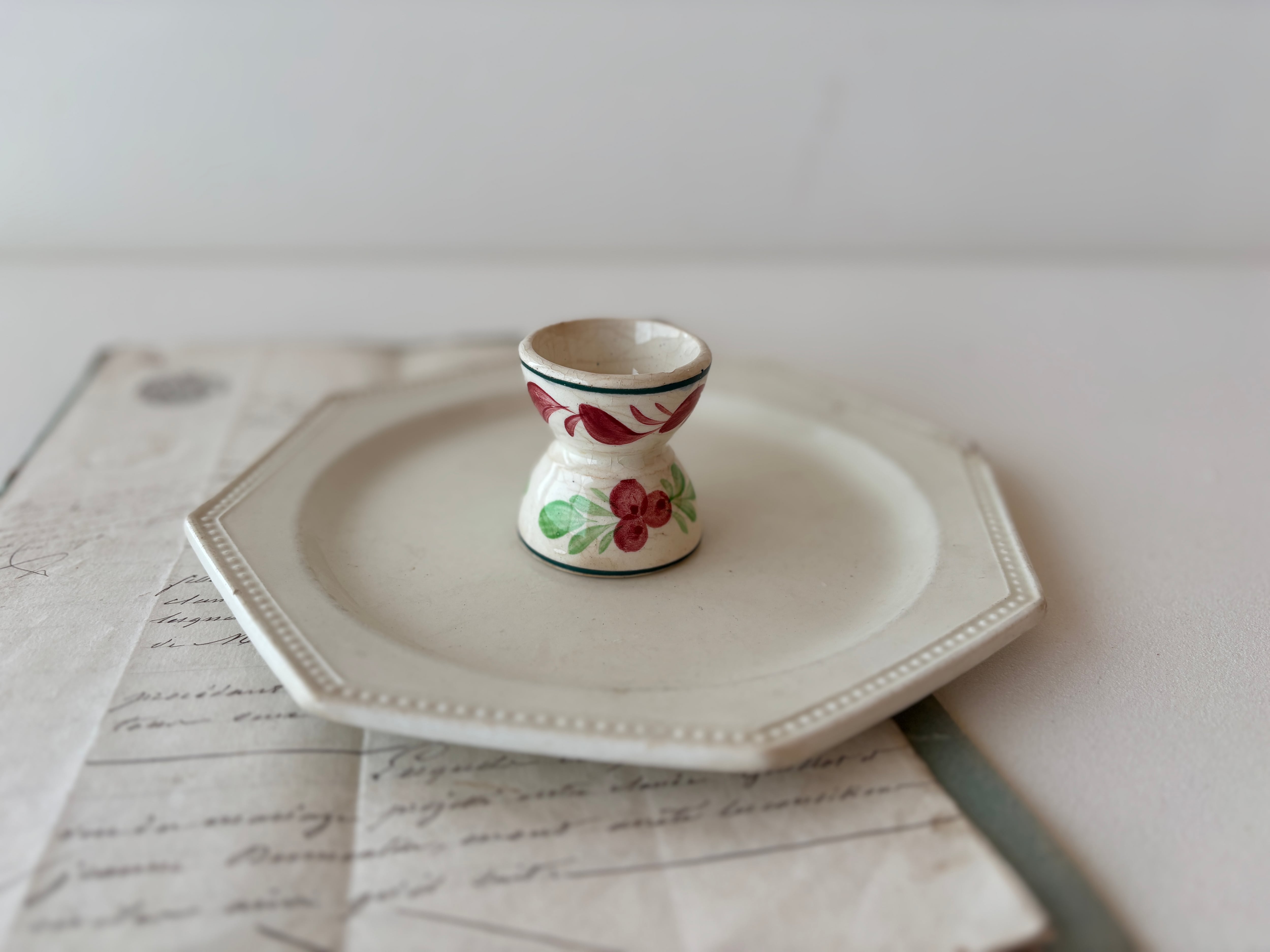 【P】フランスアンティーク コクティエ エッグカップ エッグスタンド 手彩色