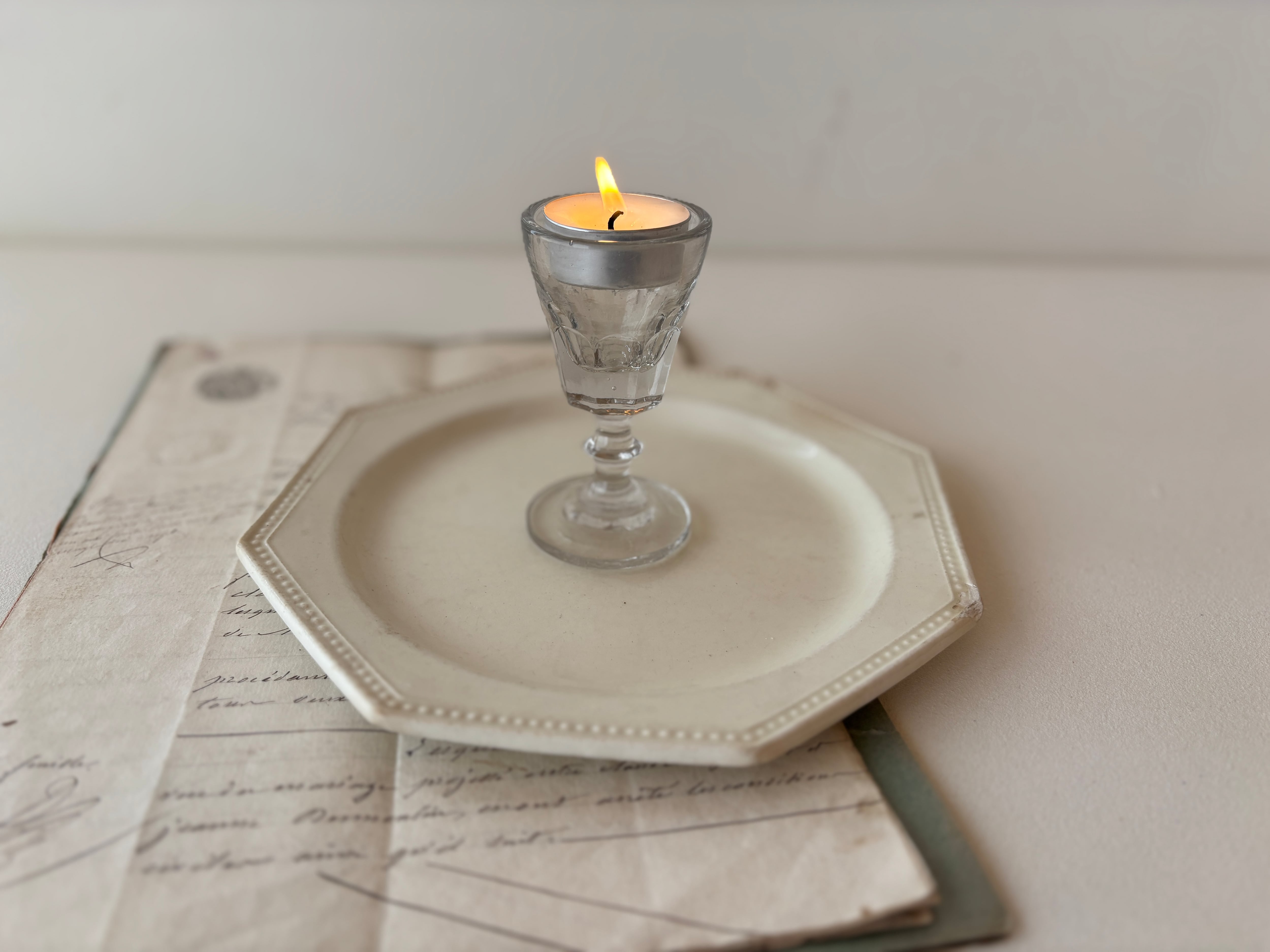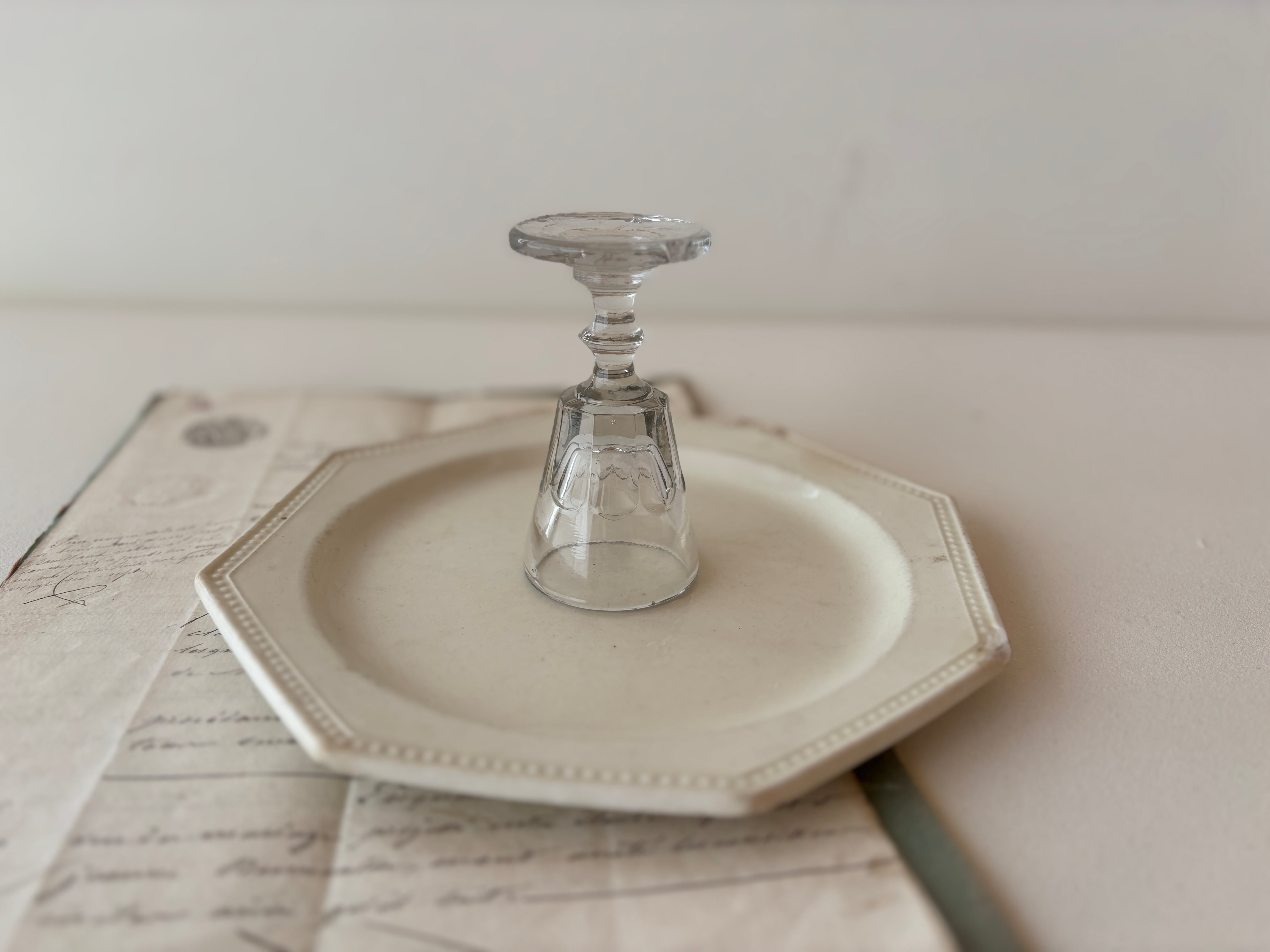 小さなサイズながら存在感があり、リキュールグラスとしてはもちろん、ディスプレイやコレクションにもおすすめです。アンティークならではのガラスの揺らぎや風合いが、テーブルや空間にさりげない特別感を添えてくれます。