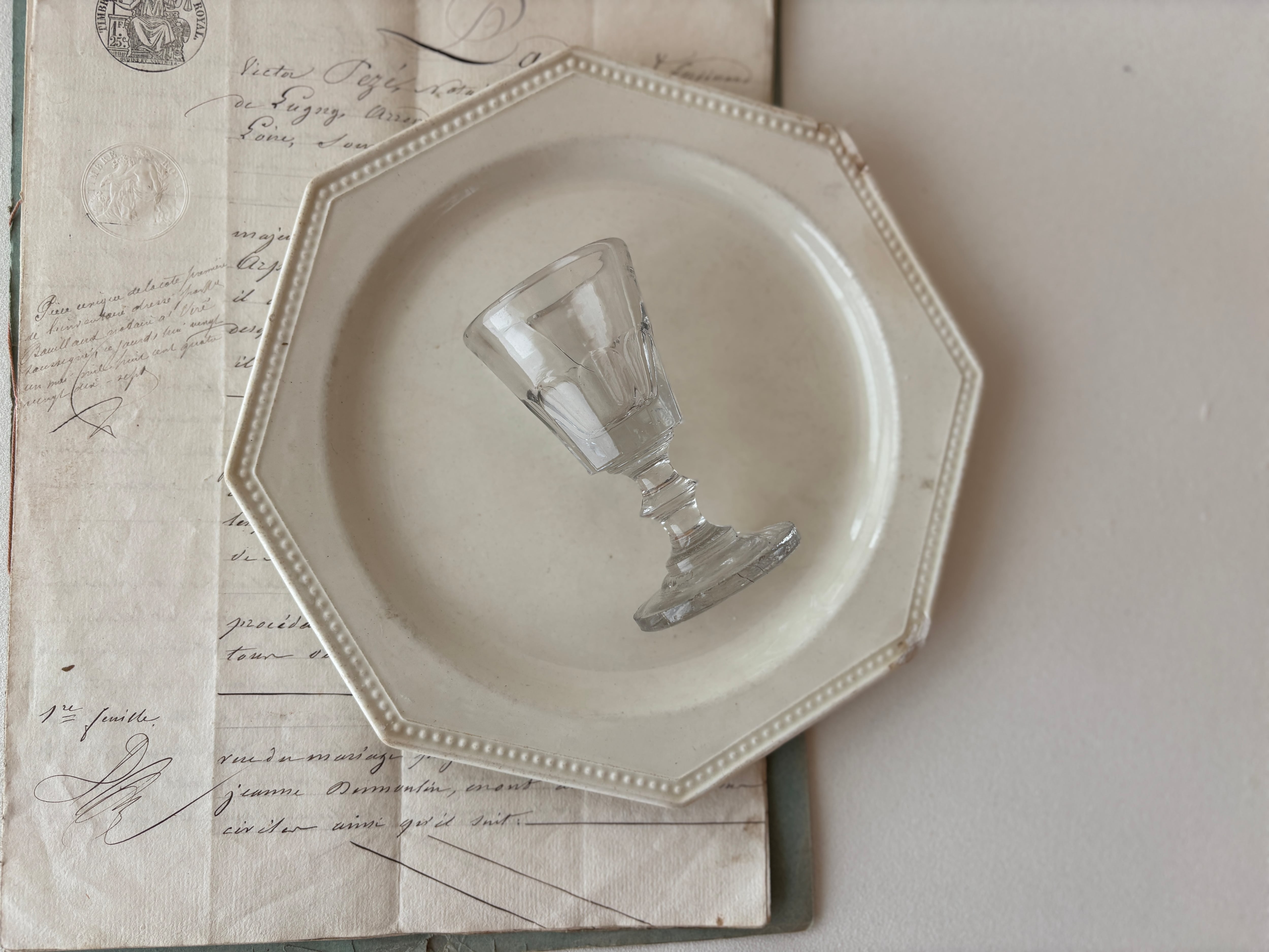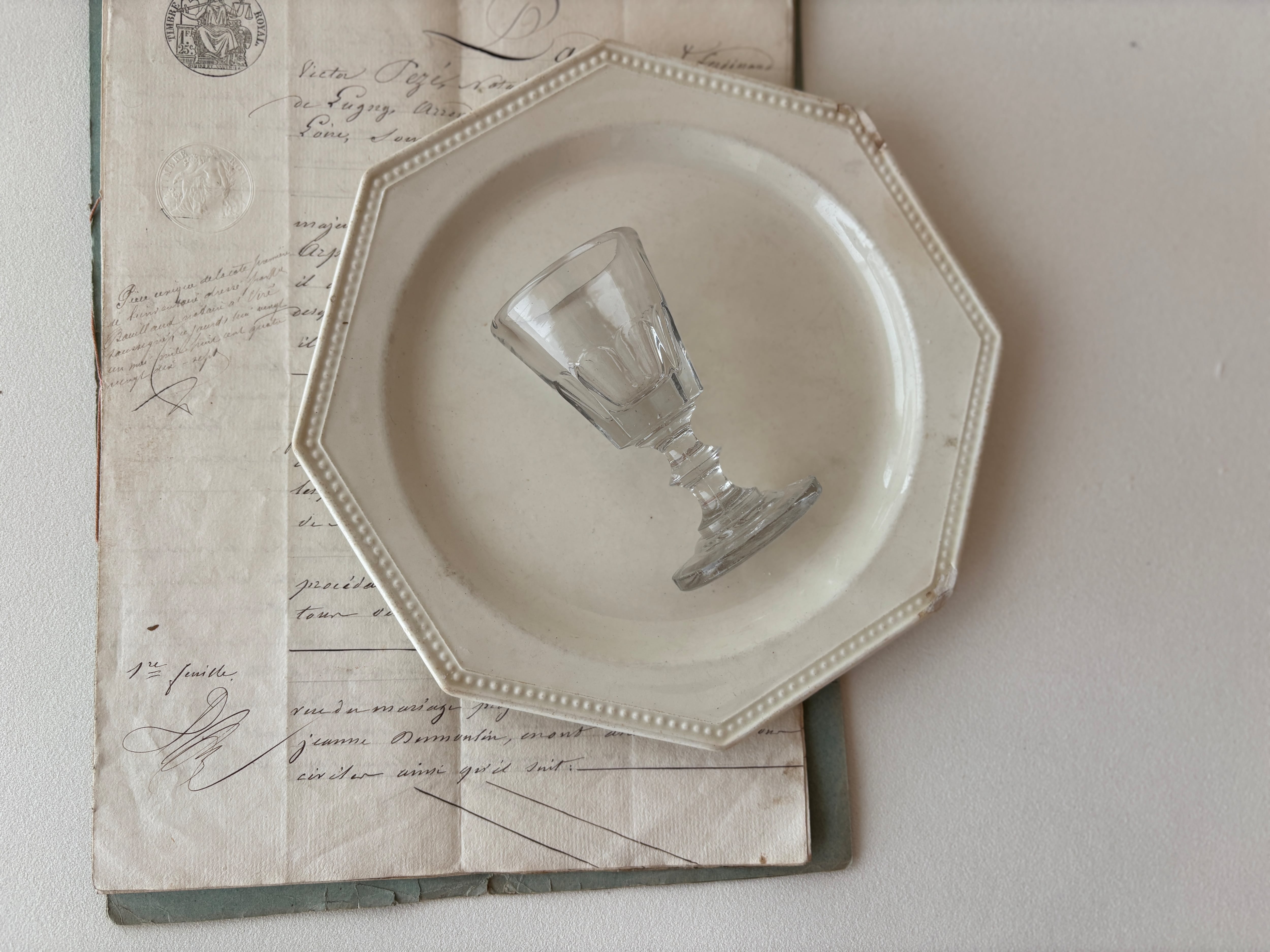 小さなサイズながら存在感があり、リキュールグラスとしてはもちろん、ディスプレイやコレクションにもおすすめです。アンティークならではのガラスの揺らぎや風合いが、テーブルや空間にさりげない特別感を添えてくれます。
